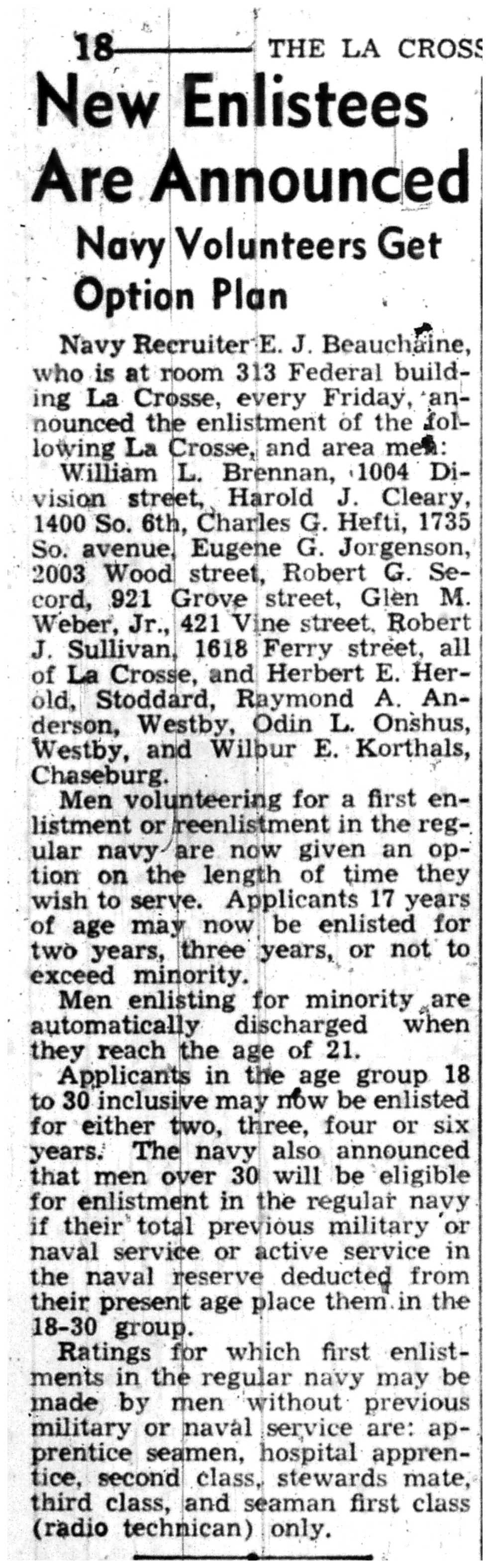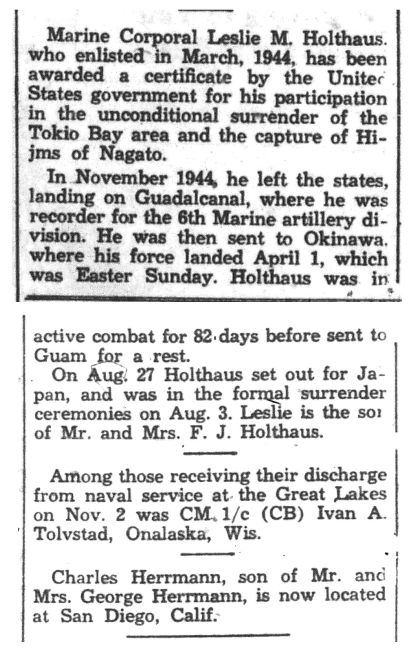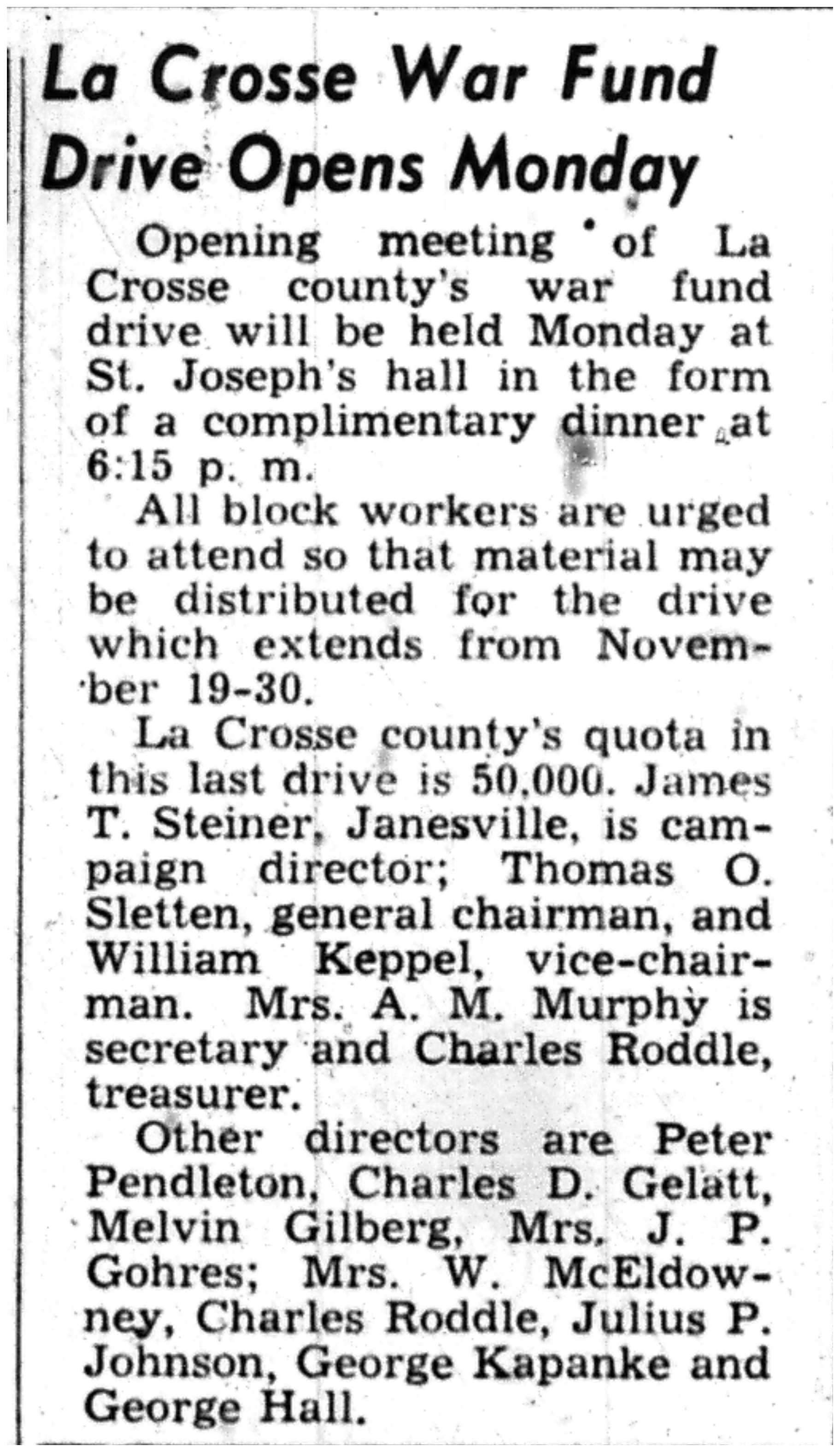 | 1945-11-30 | La Crosse Tribune p9 |
