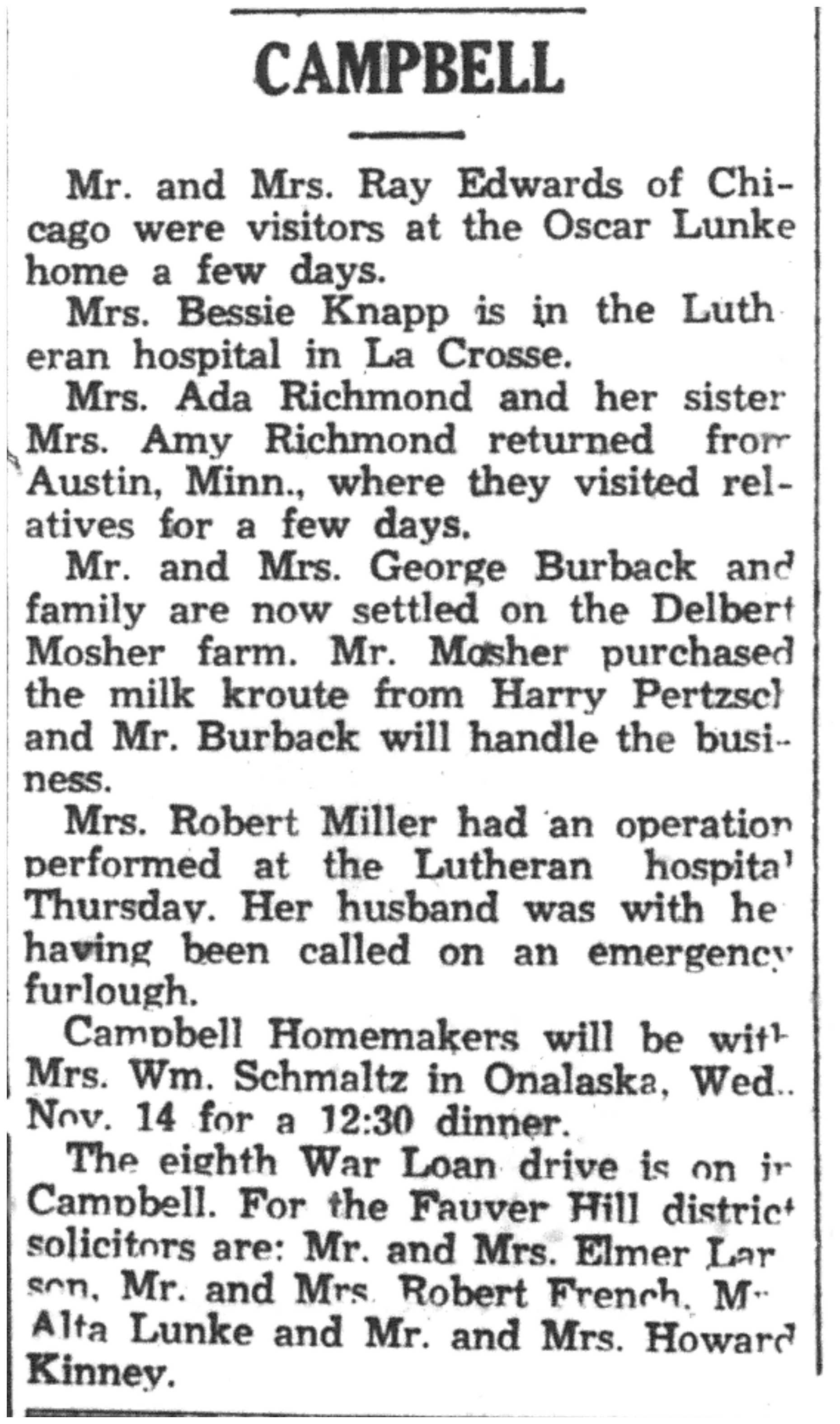 | 1945-11-8 | La Crosse County Record p5 | |