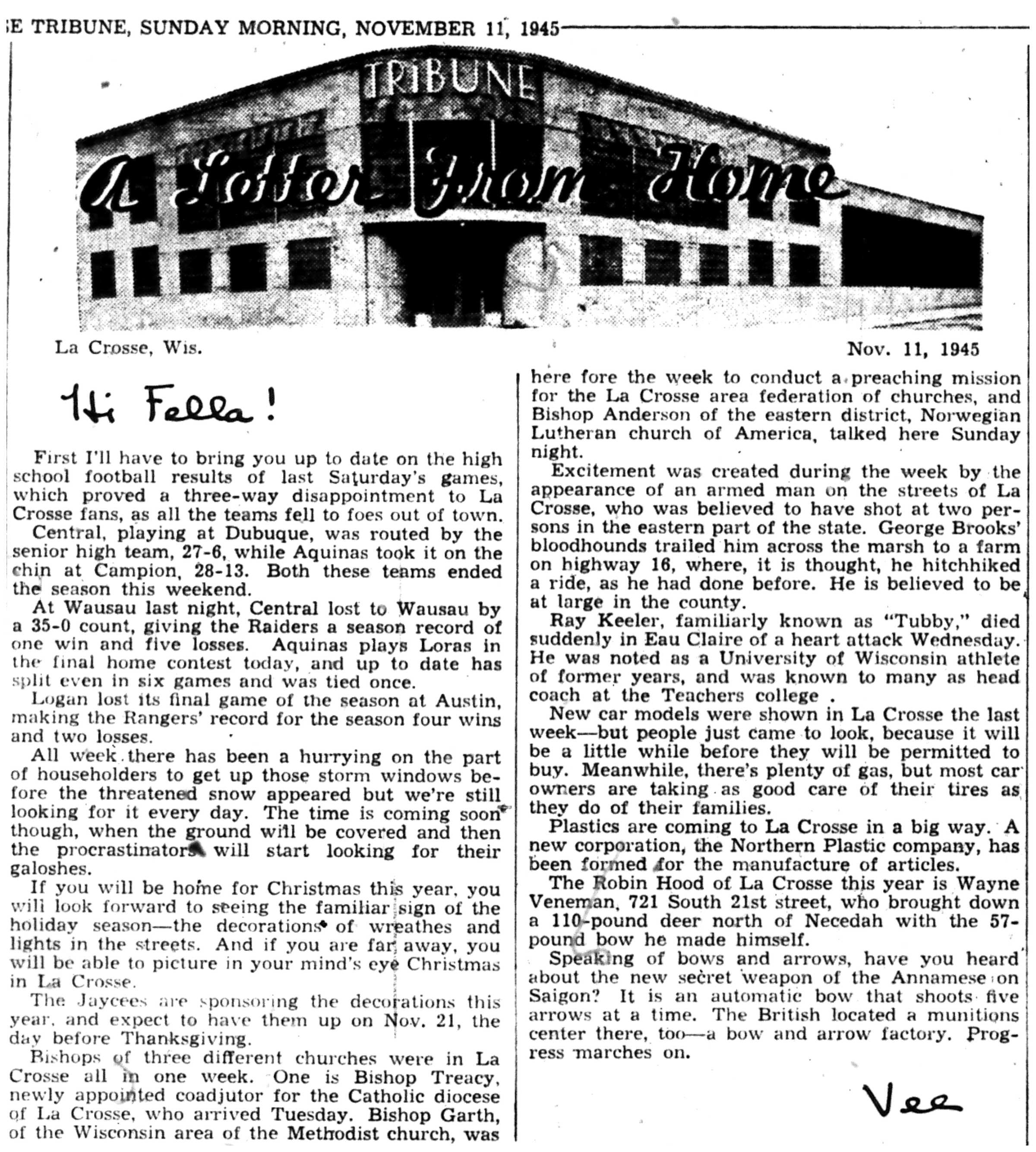 | 1945-11-11 | La Crosse Tribune p1 | |