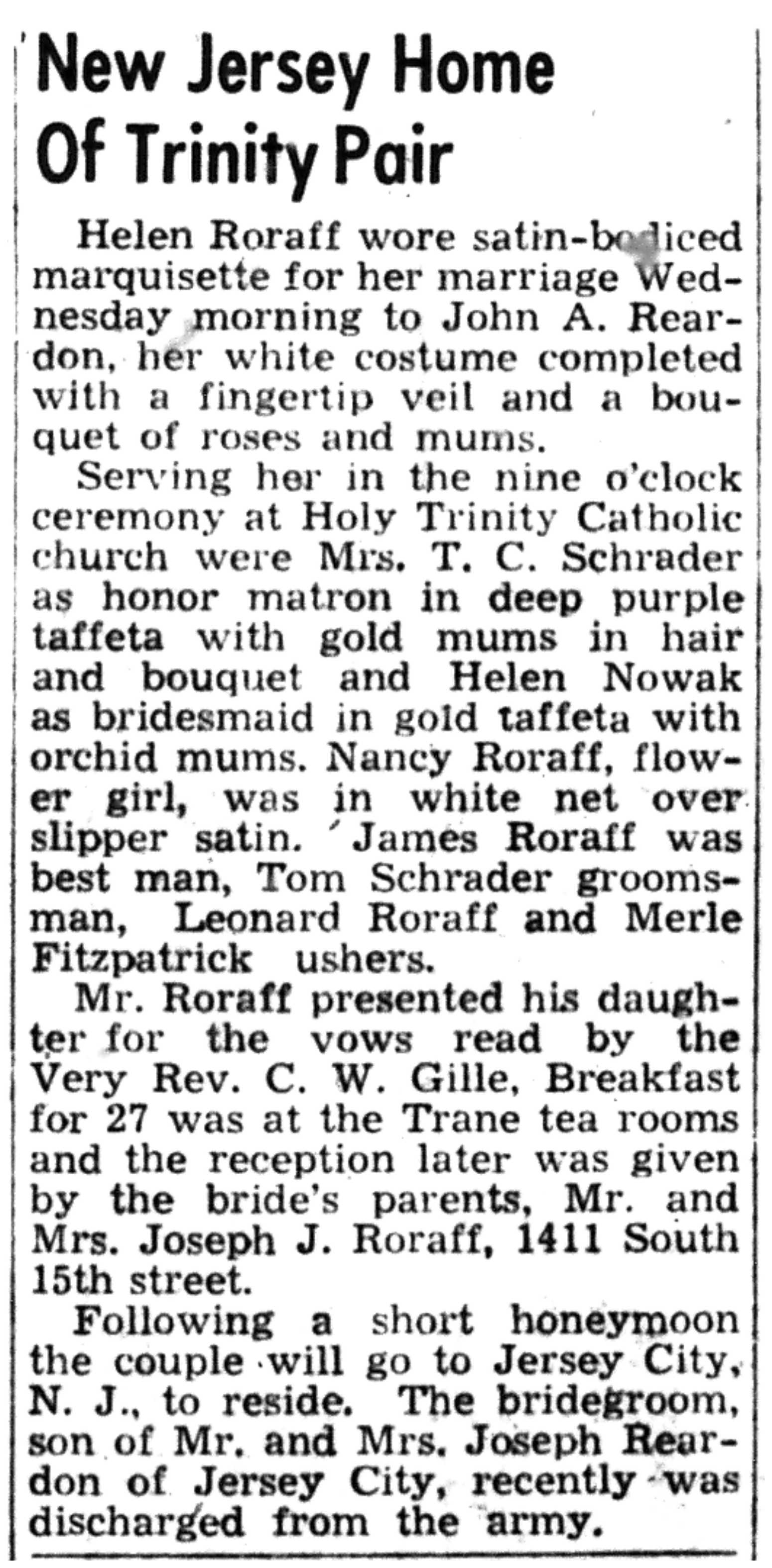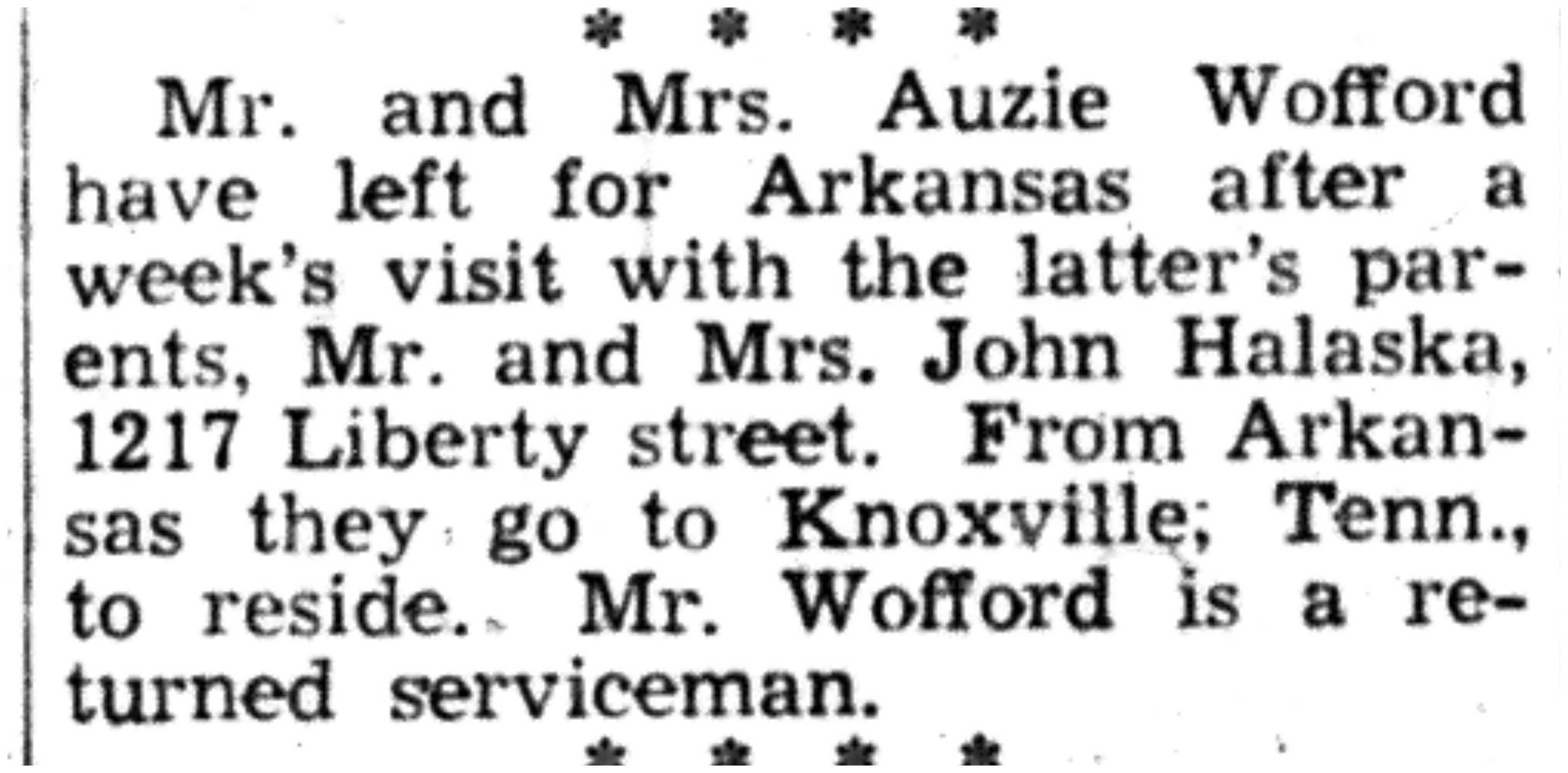 | 1945-11-8 | Non-Pareil Journal p8 | |