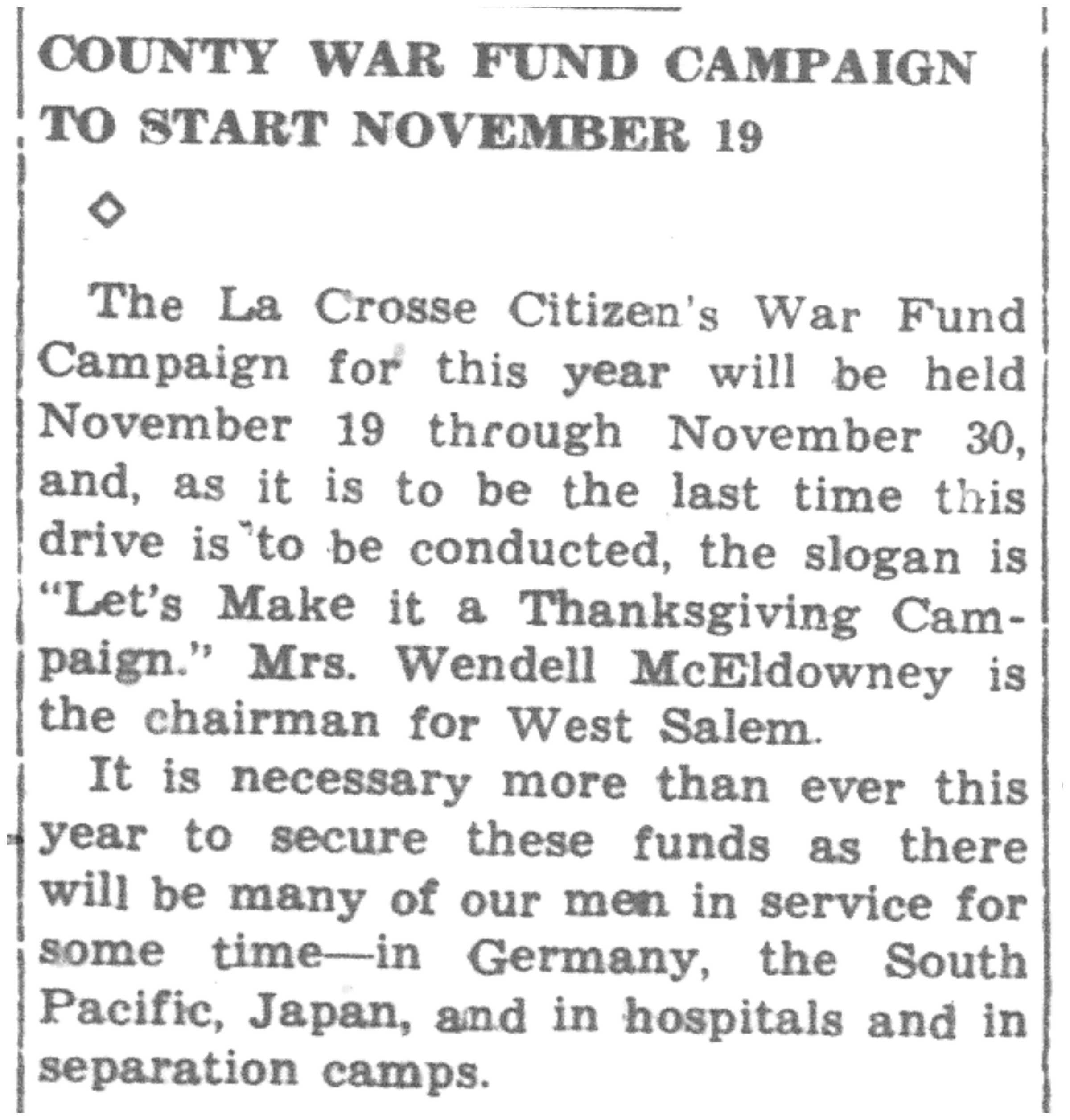 | 1945-11-11 | La Crosse Tribune p5 | |