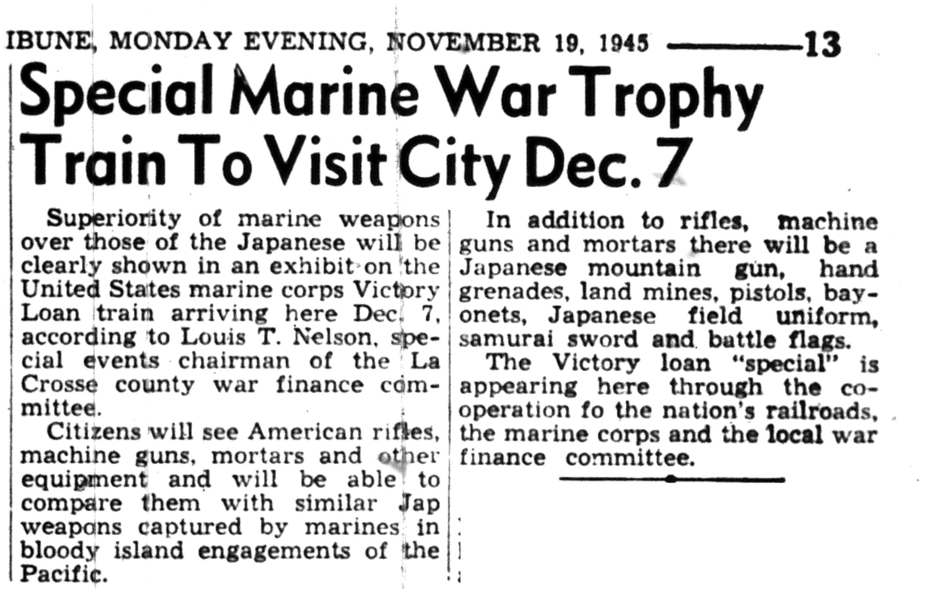 | 1945-11-13 | La Crosse Tribune p4 | |