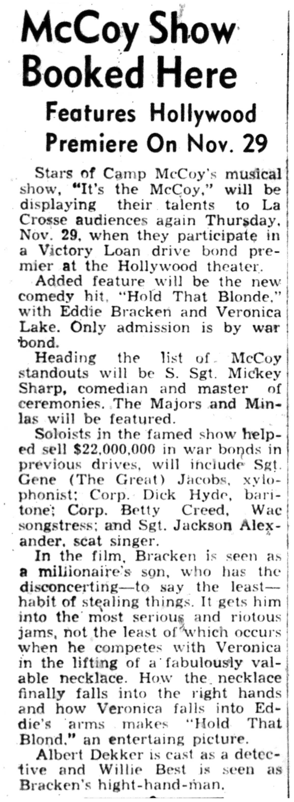 | 1945-11-22 | La Crosse Tribune p11 | |