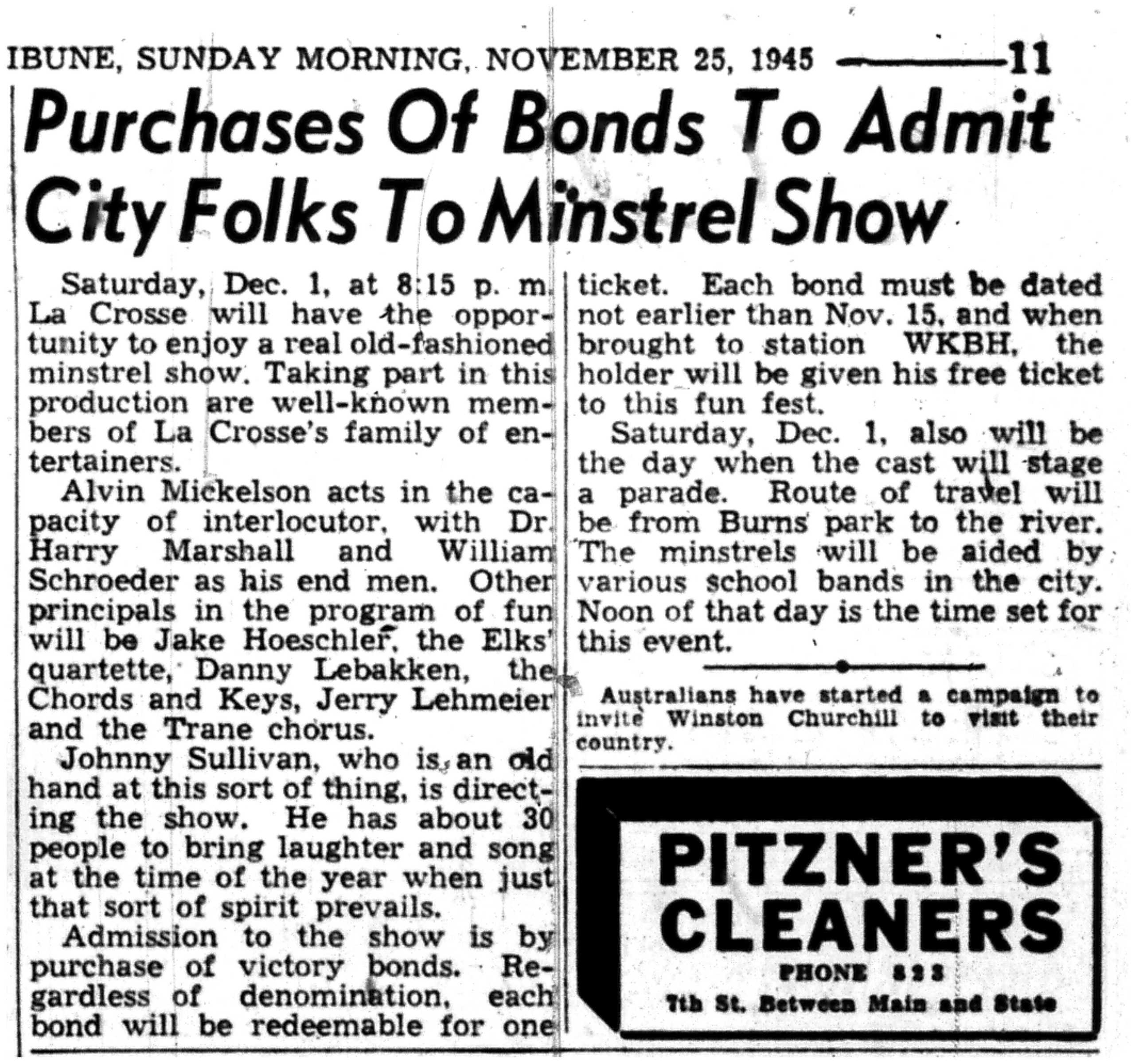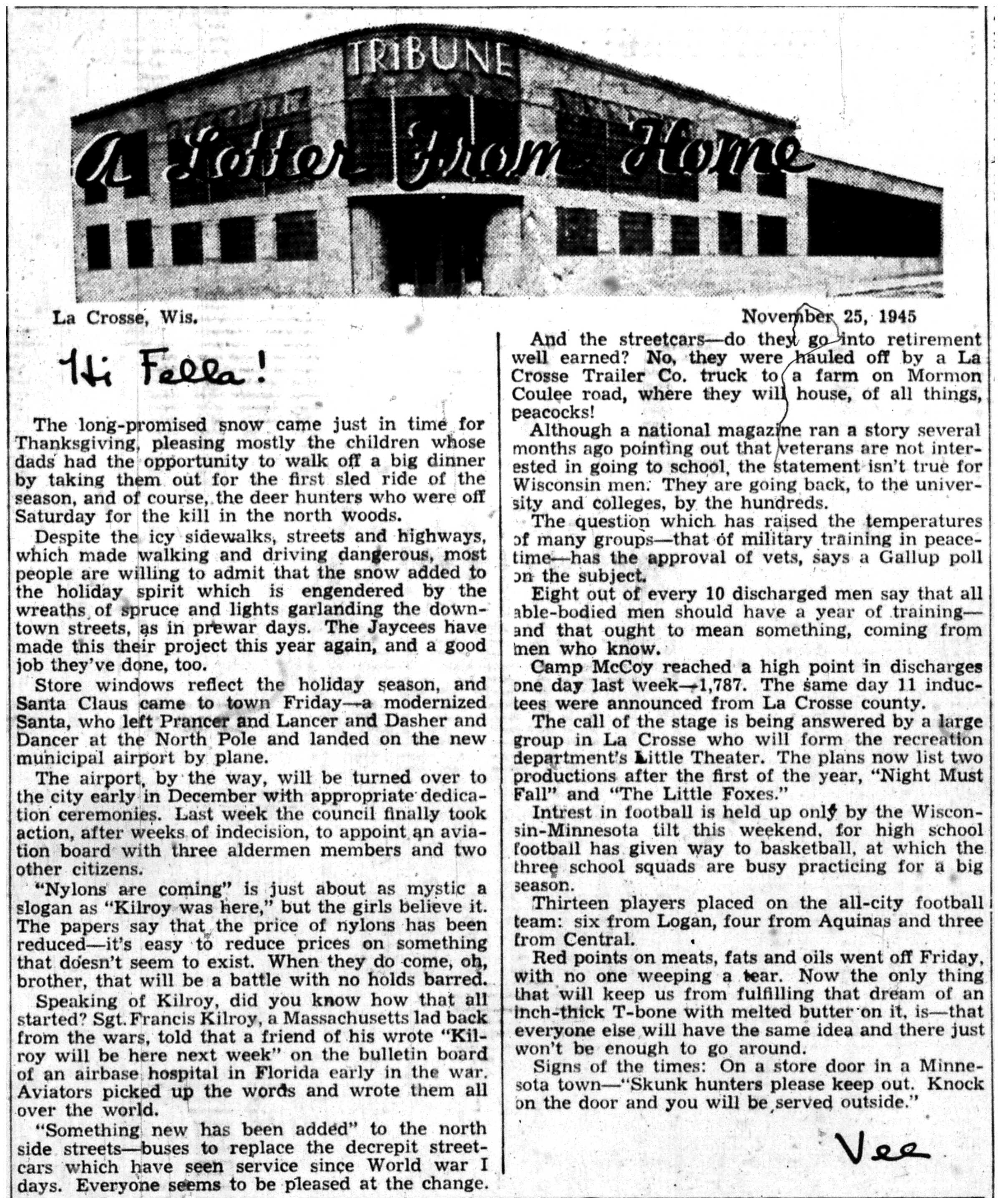 | 1945-11-25 | La Crosse Tribune p11 | |