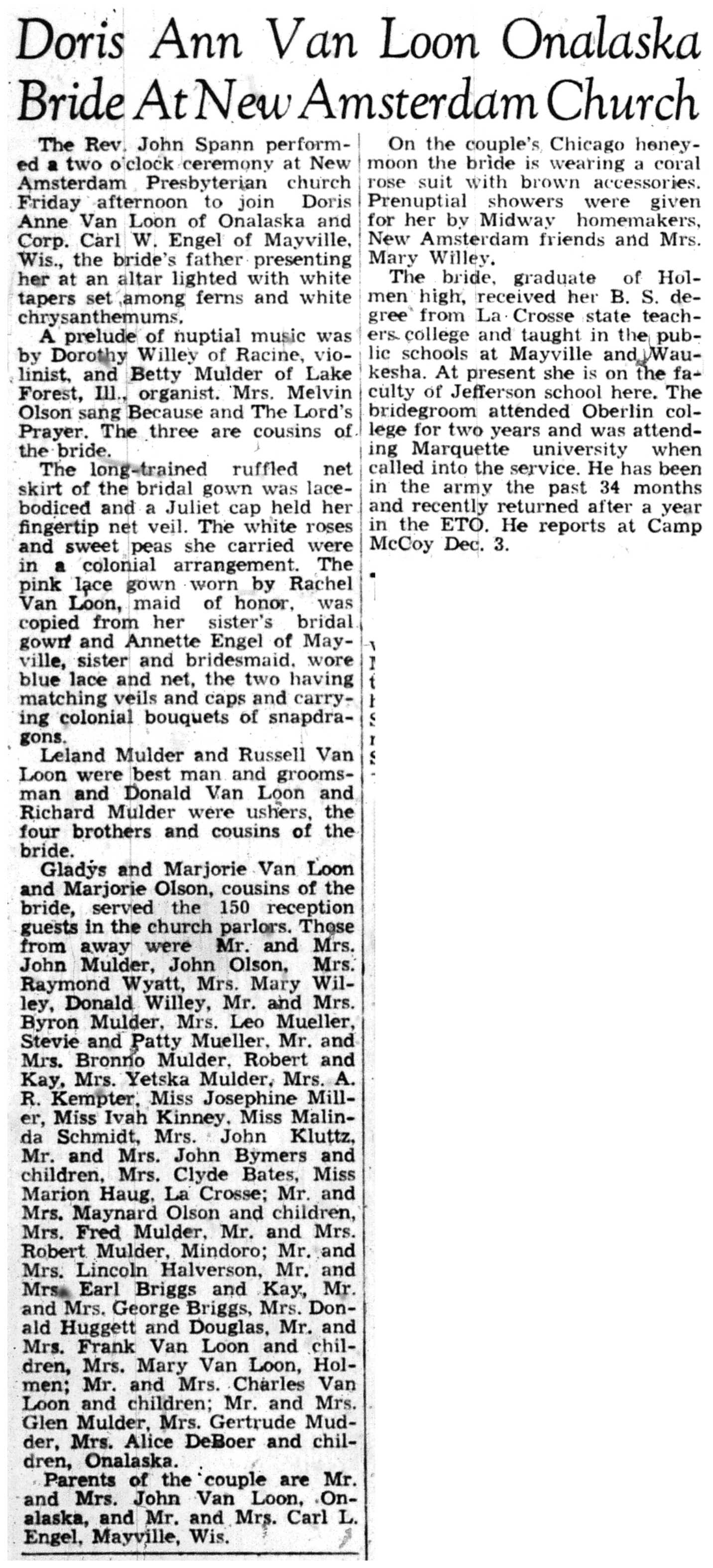 | 1945-11-15 | La Crosse County Record p4 | |