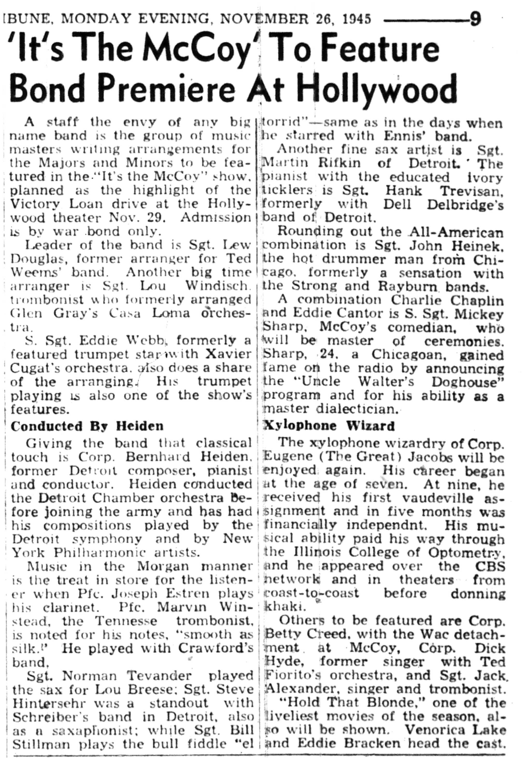 | 1945-11-26 | La Crosse Tribune p9 | |