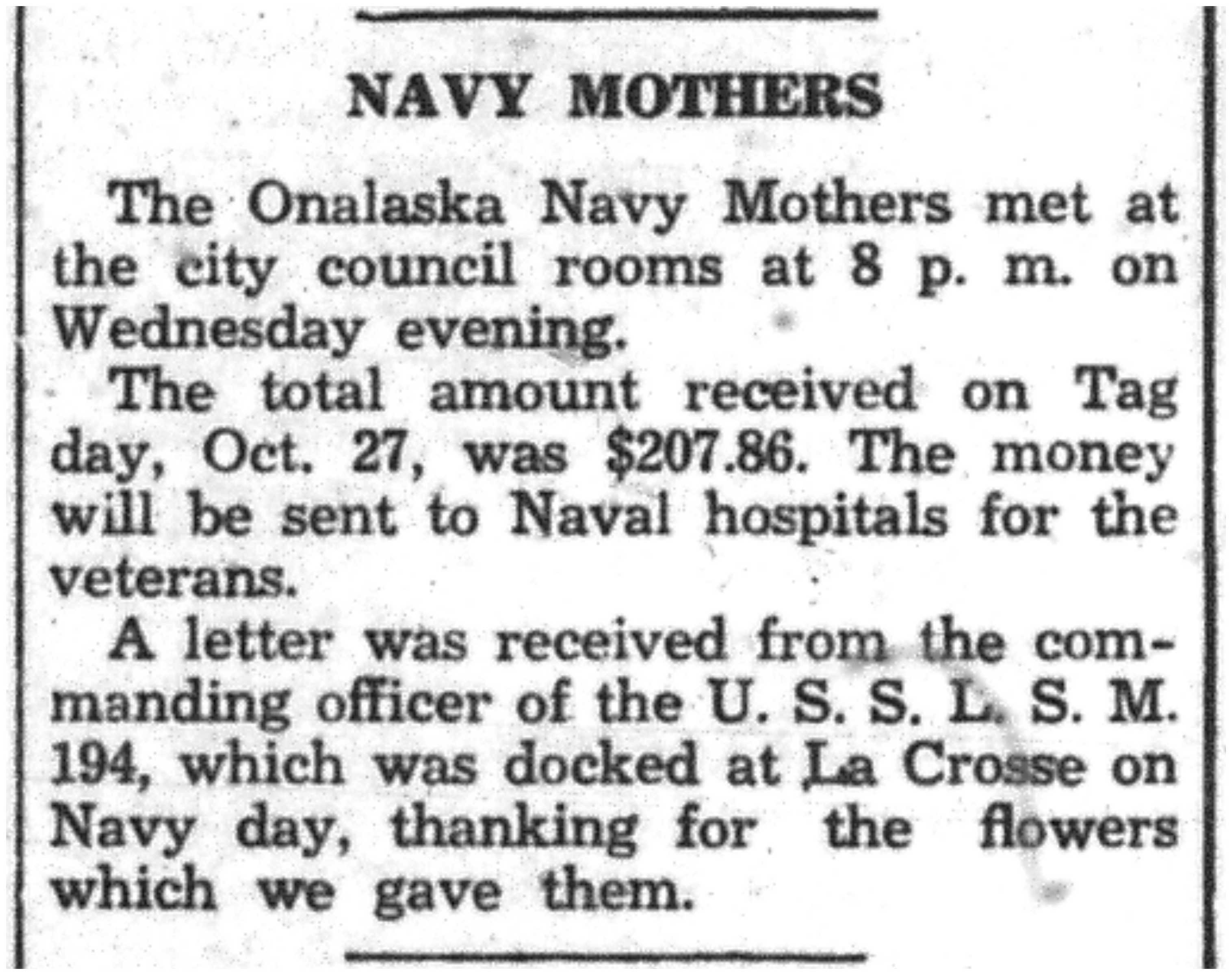 | 1945-11-27 | La Crosse Tribune p9 | |