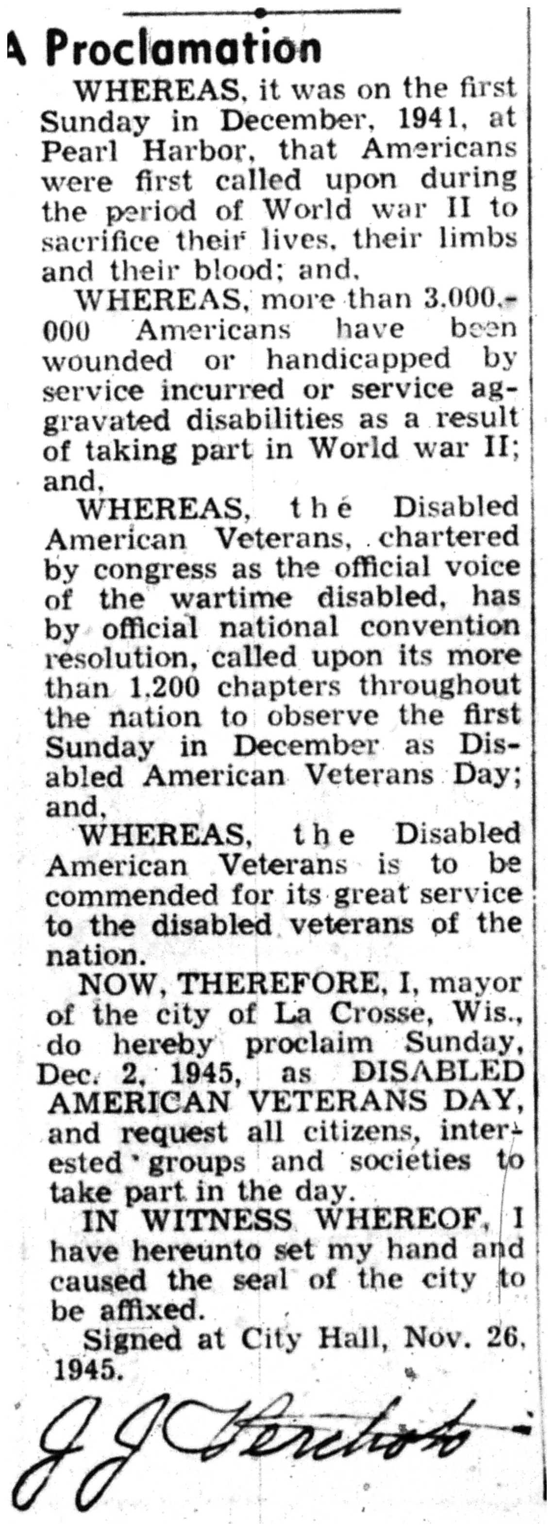 | 1945-11-26 | La Crosse Tribune p1 | |
