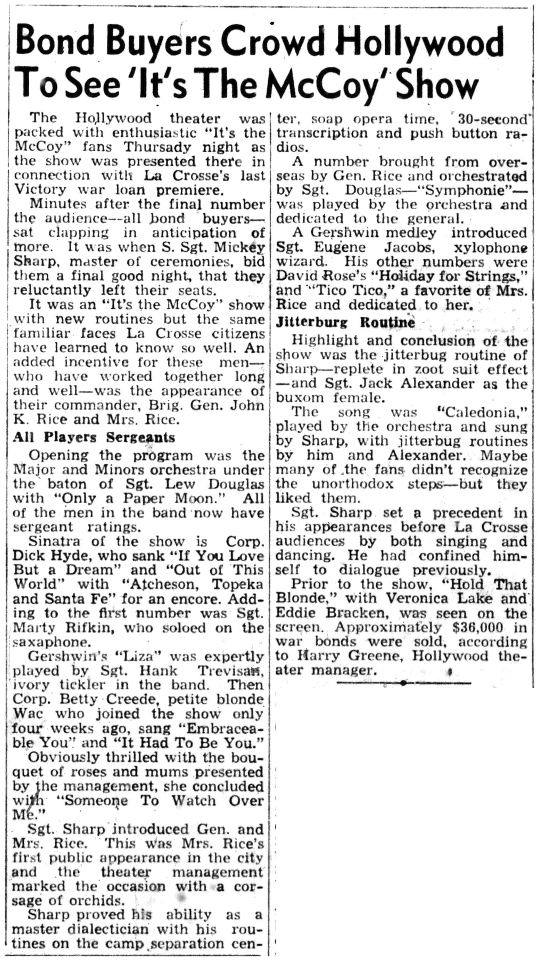| 1945-11-15 | La Crosse Tribune p18 | |