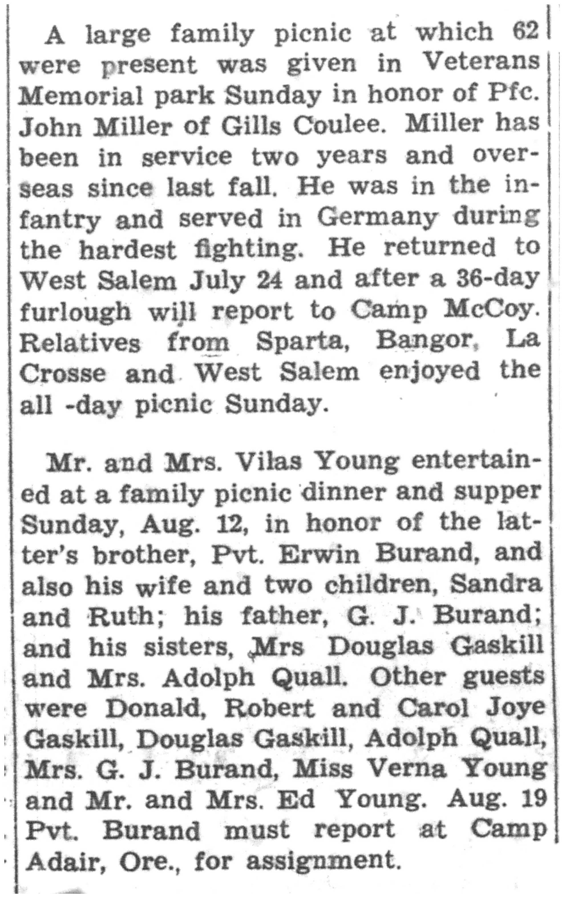 | 1945-8-2 | La Crosse County Record p5 | |