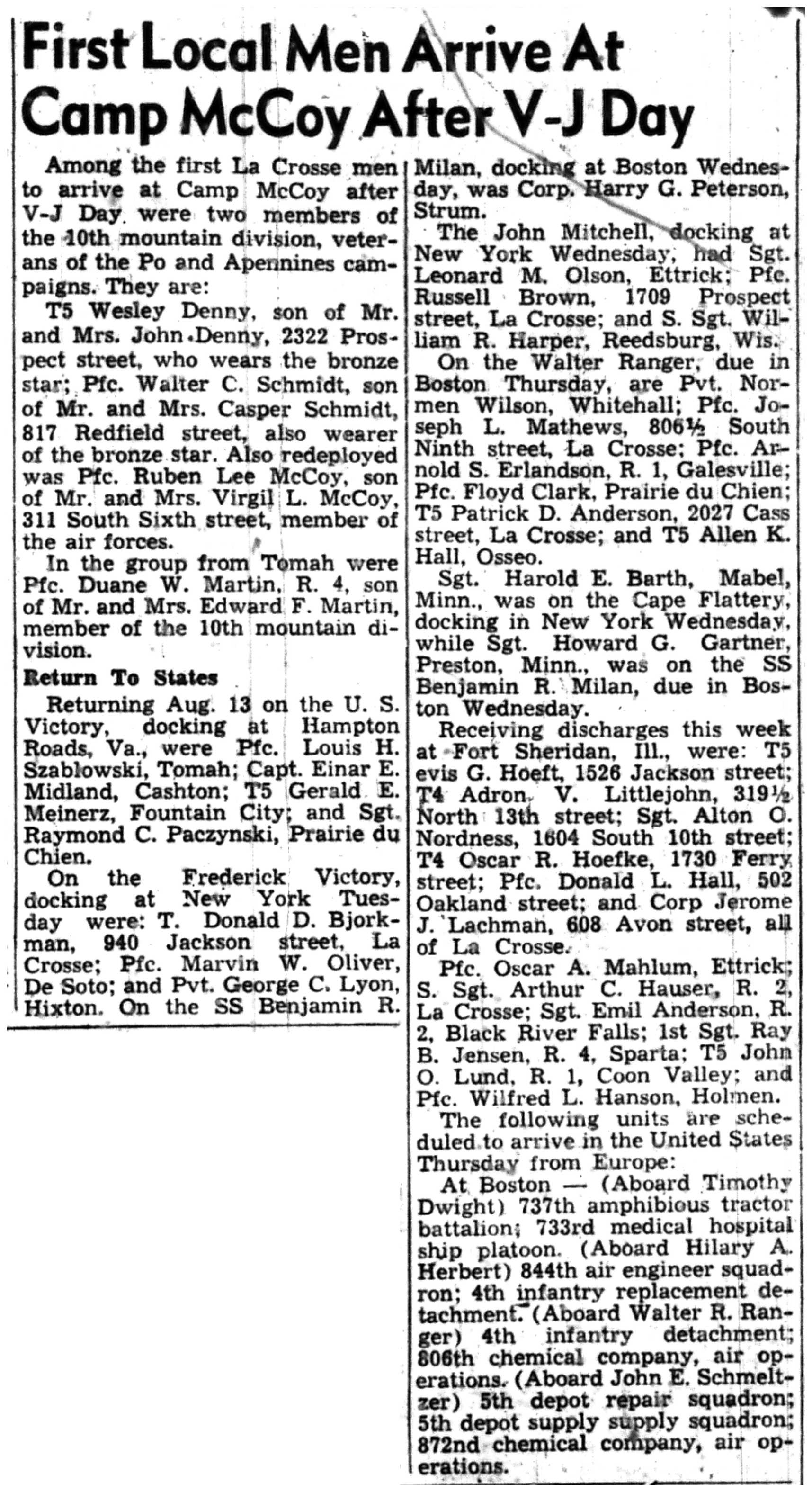 | 1945-8-1 | La Crosse Tribune p7 | |