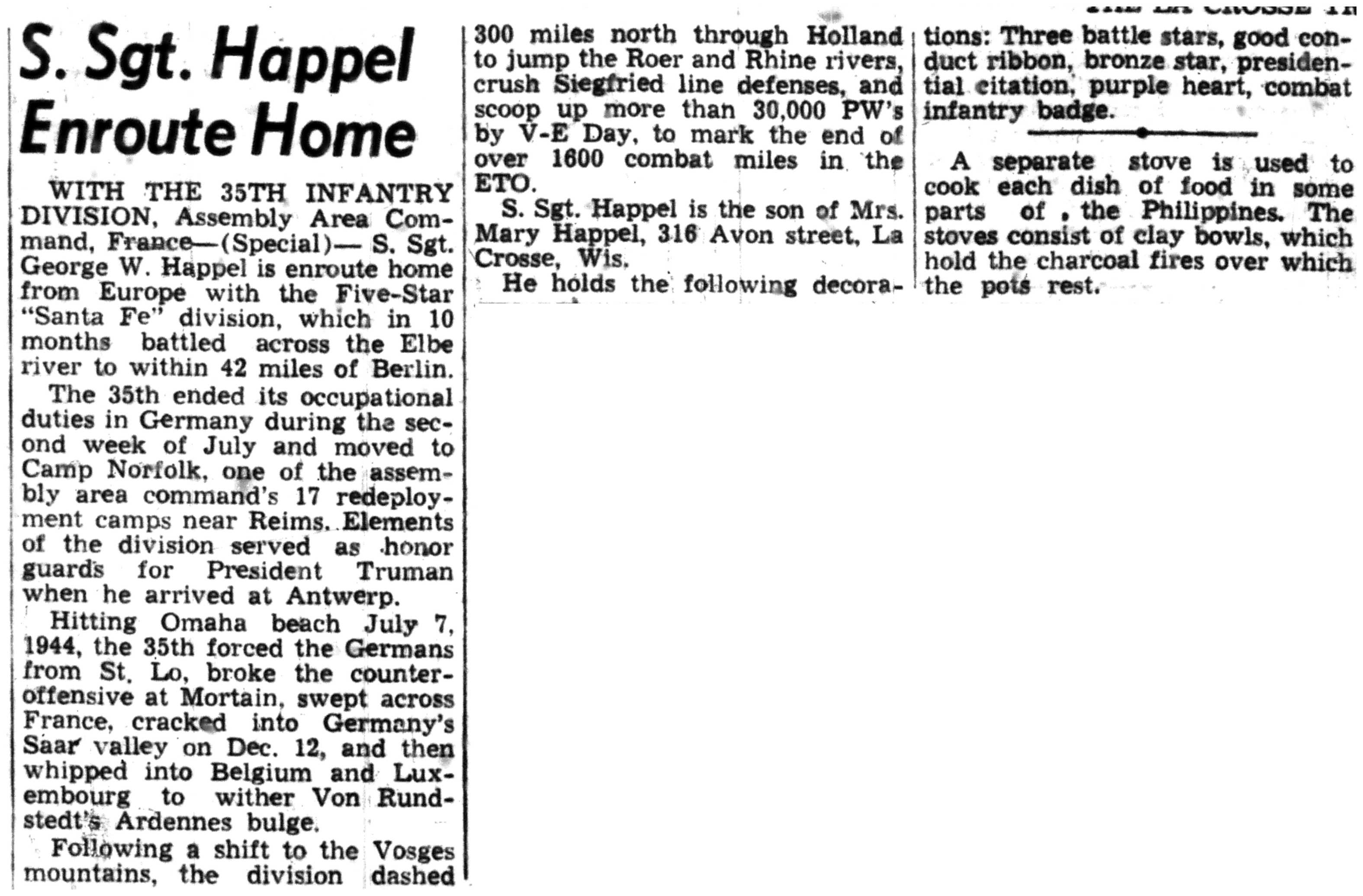 | 1945-8-2 | La Crosse Tribune p4 | |