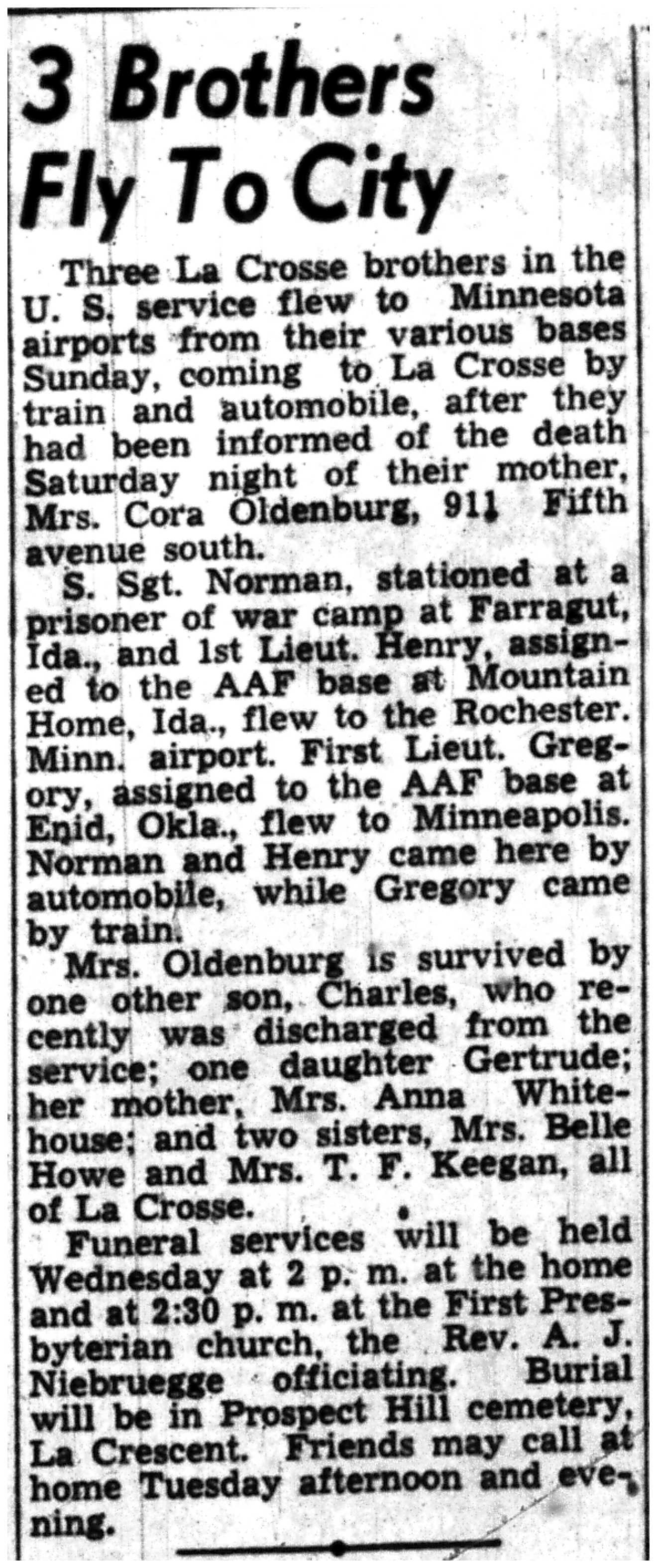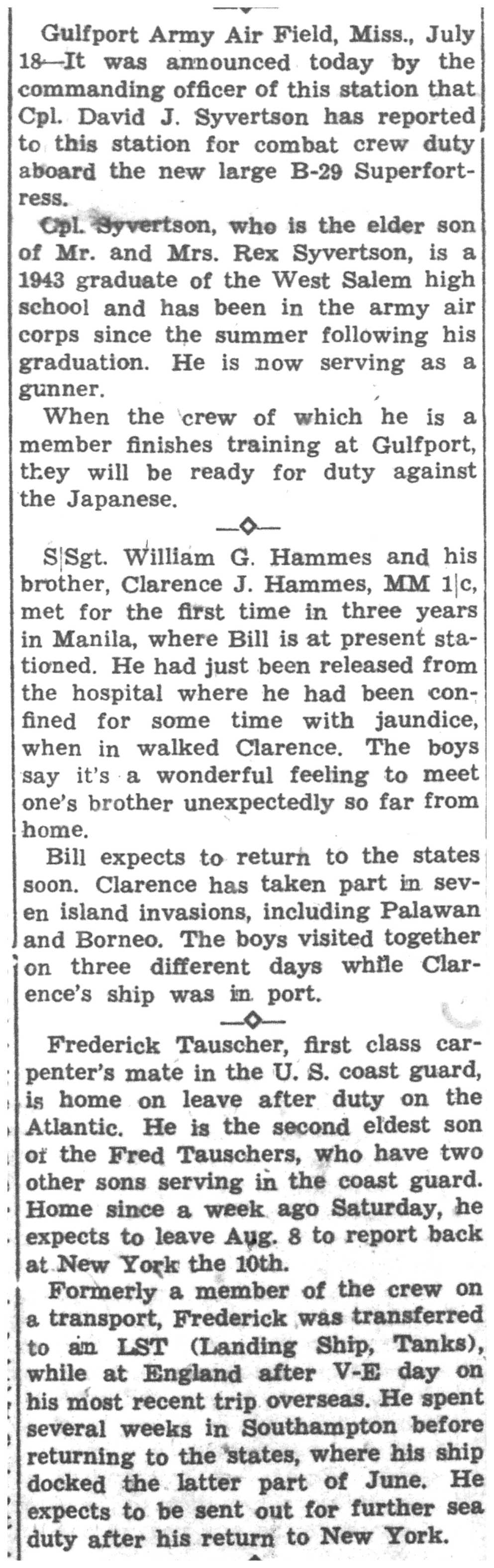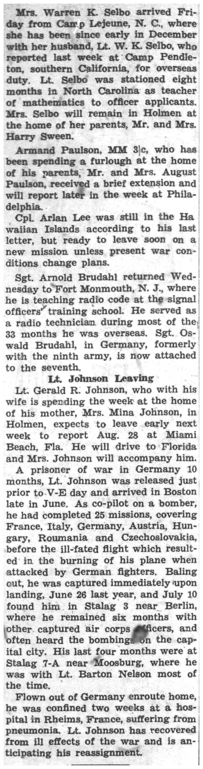 | 1945-8-3 | La Crosse Tribune p7 | |