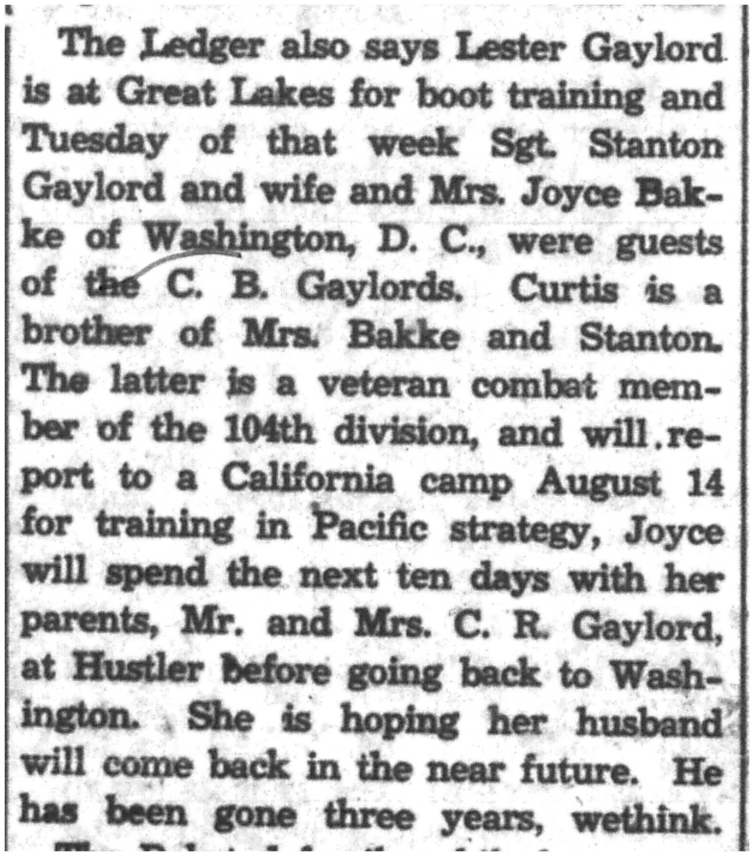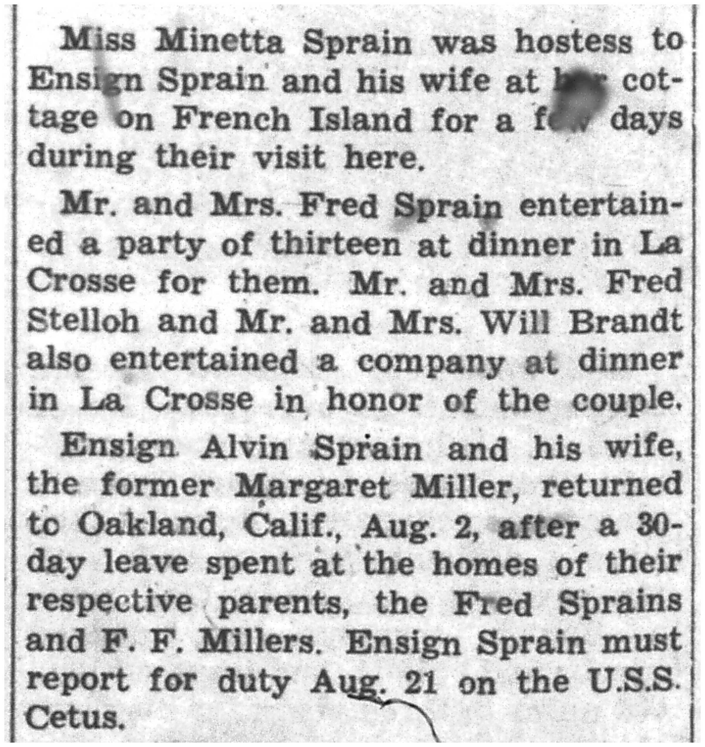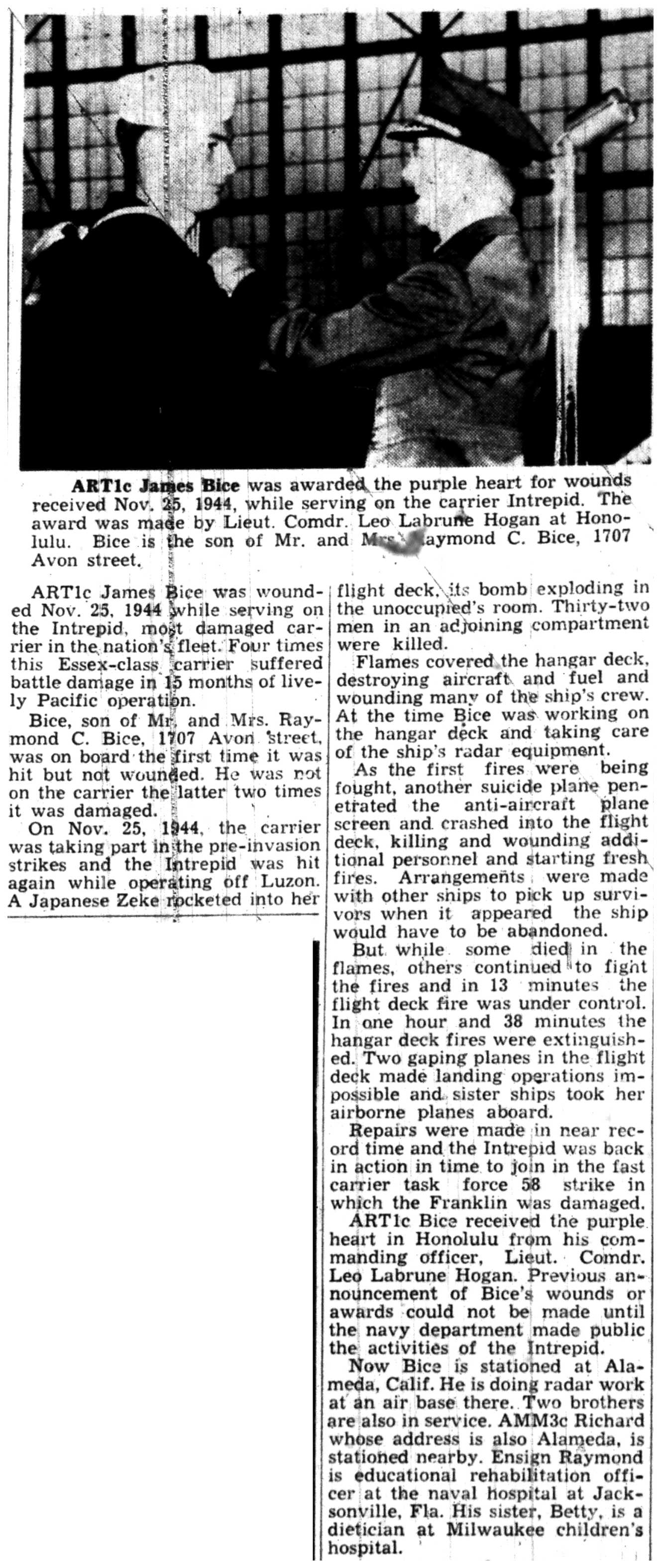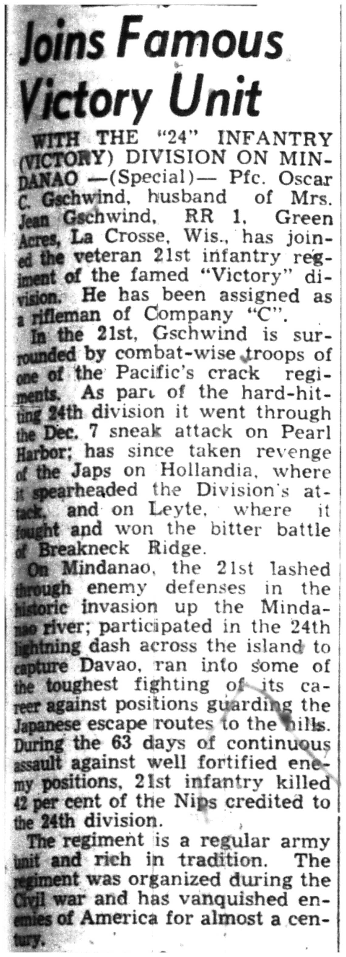 | 1945-8-3 | La Crosse Tribune p7 | |