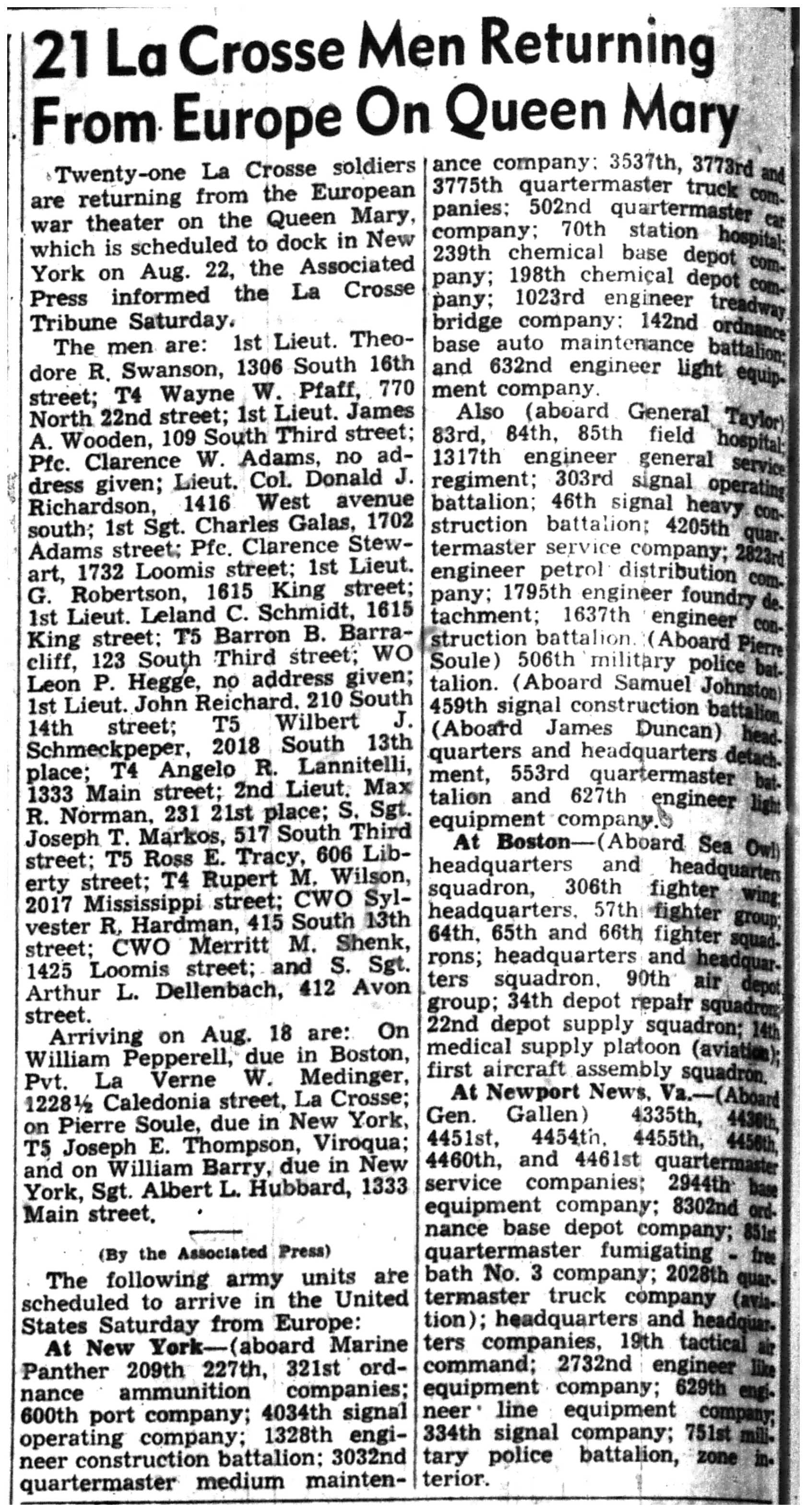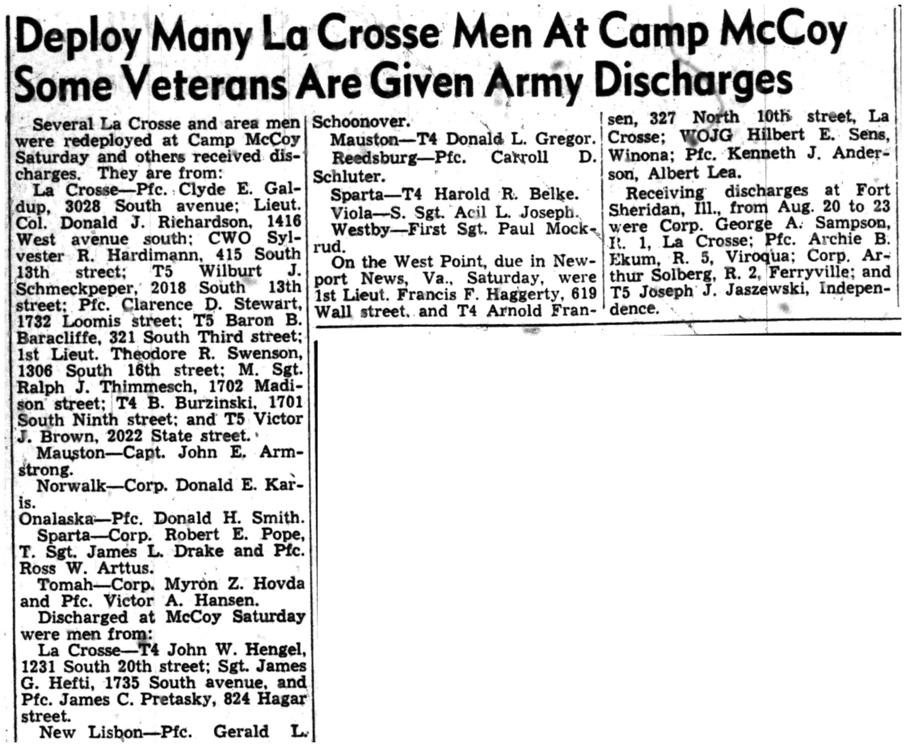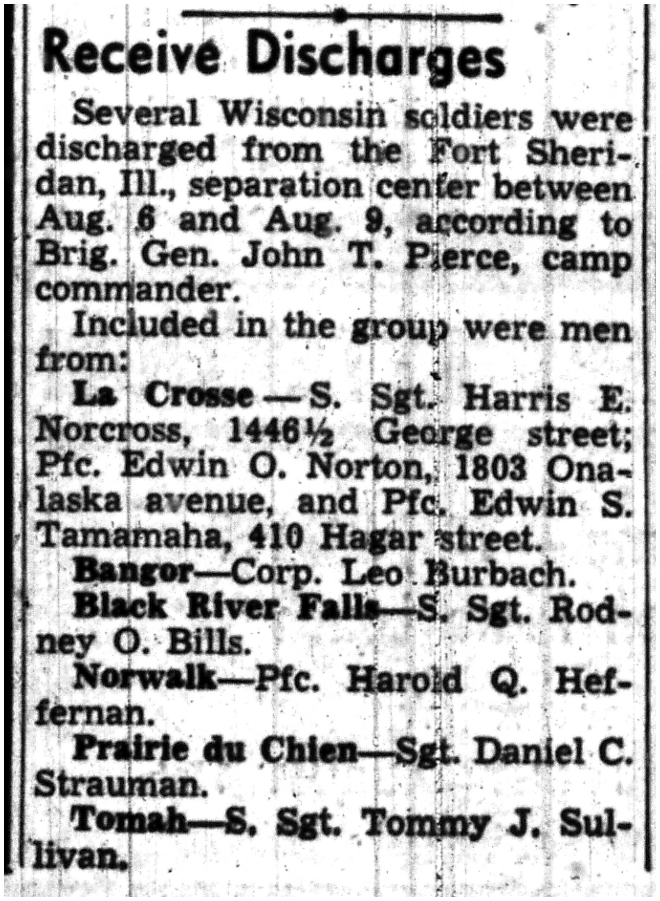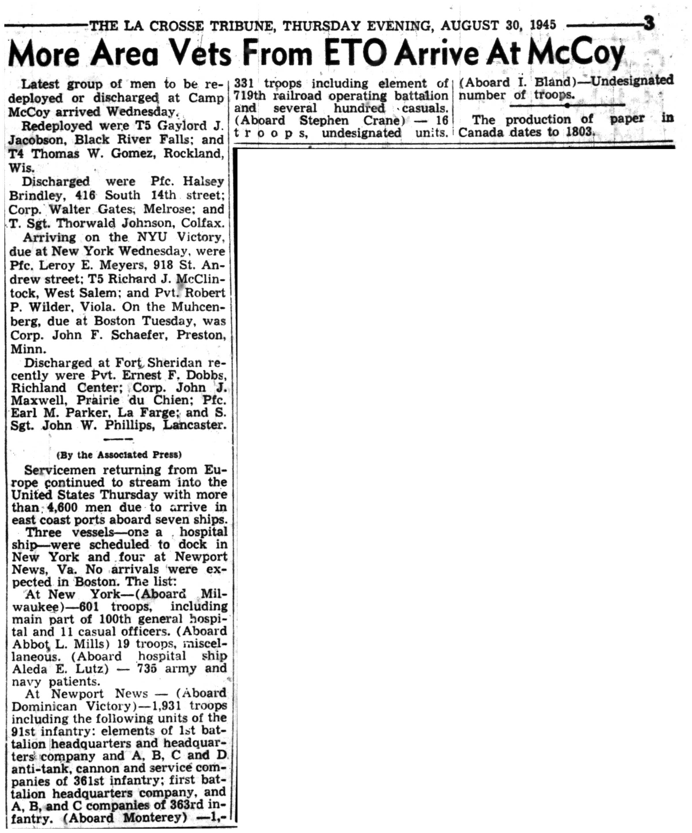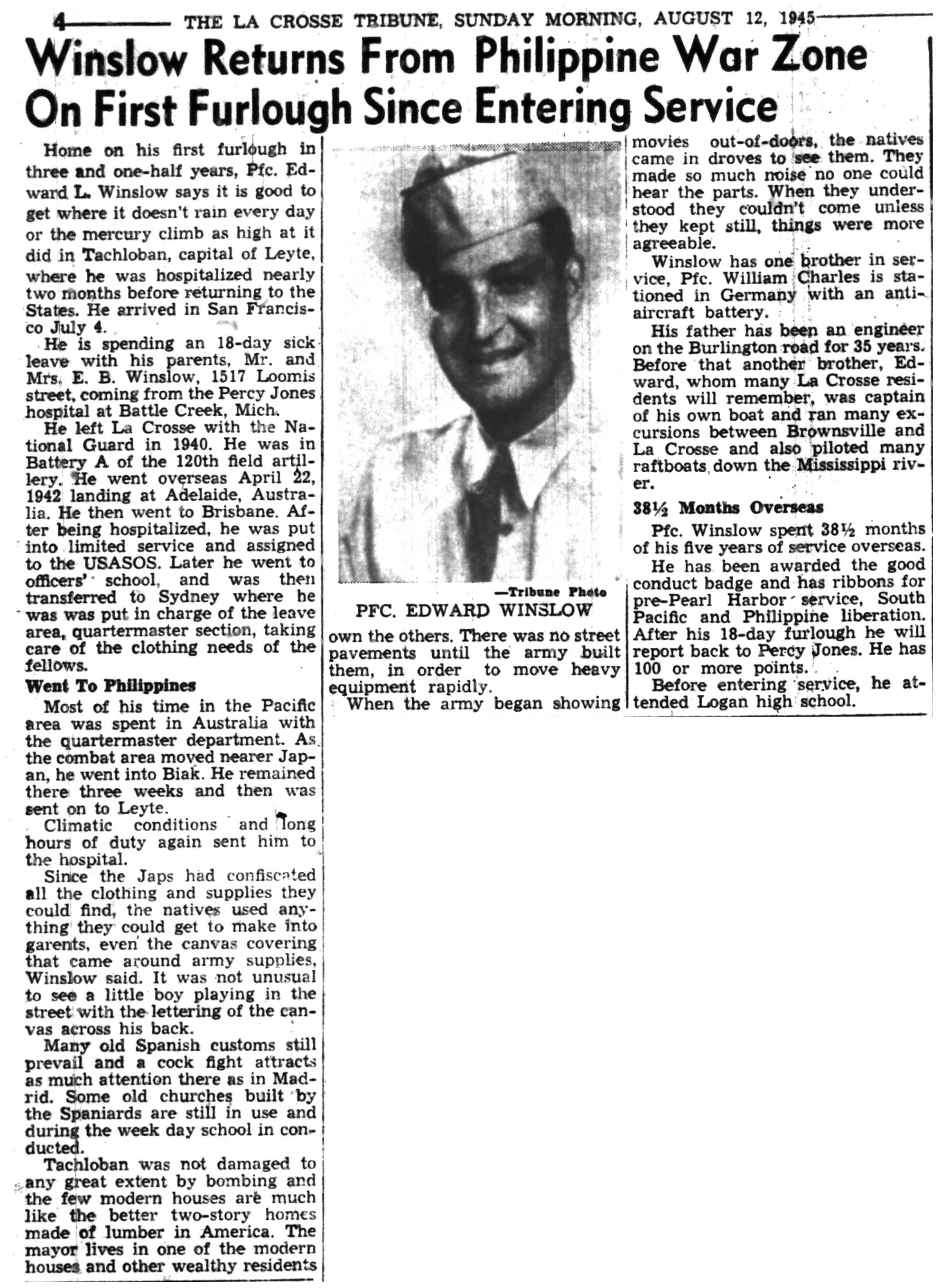 | 1945-8-2 | La Crosse Tribune p4 | |