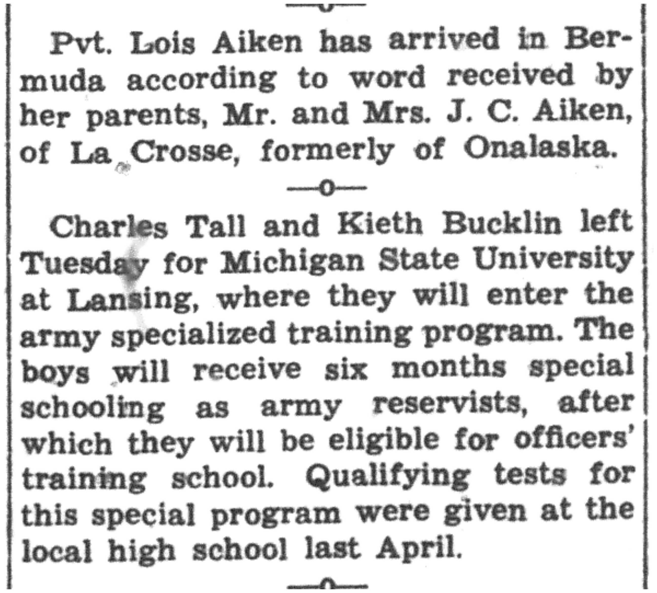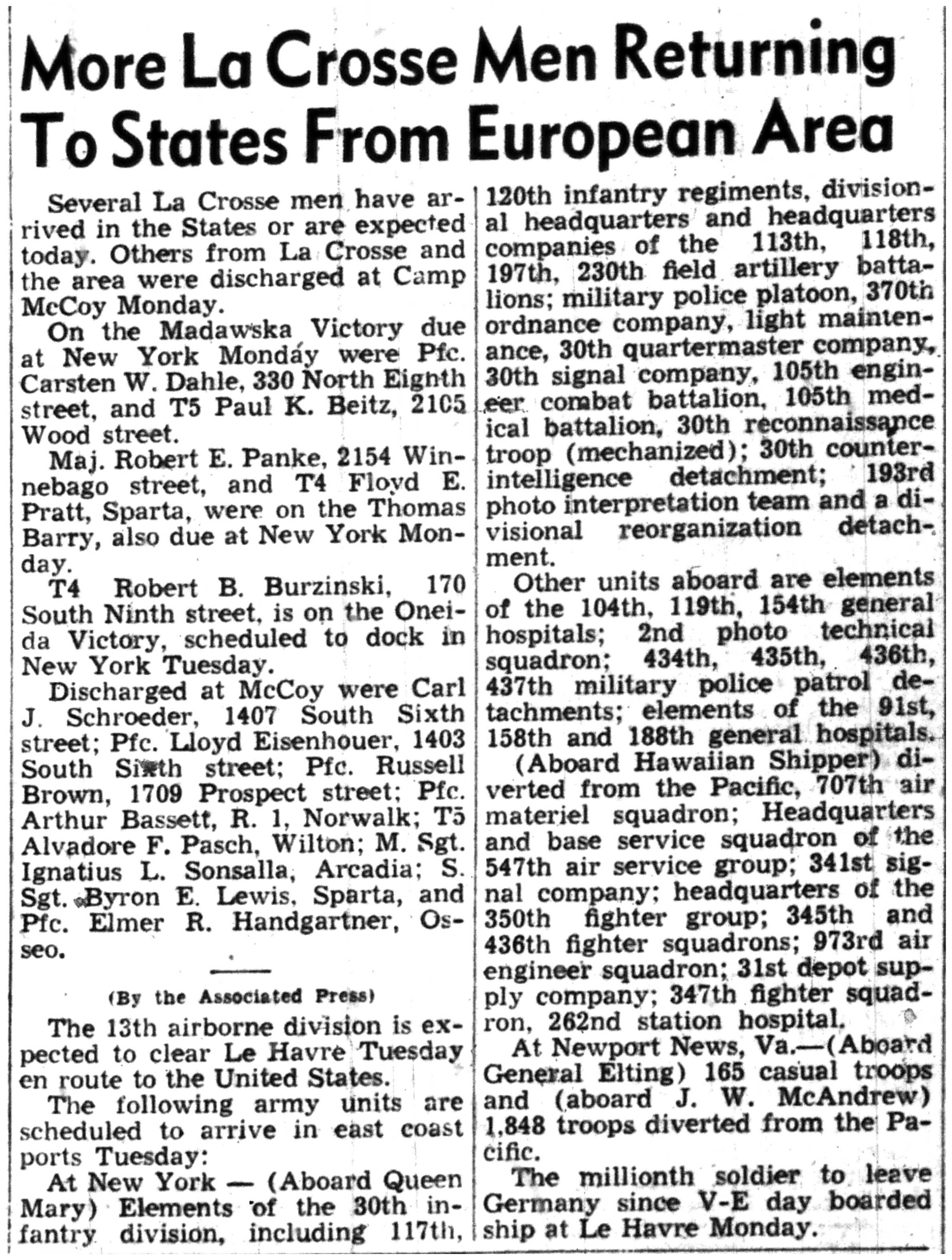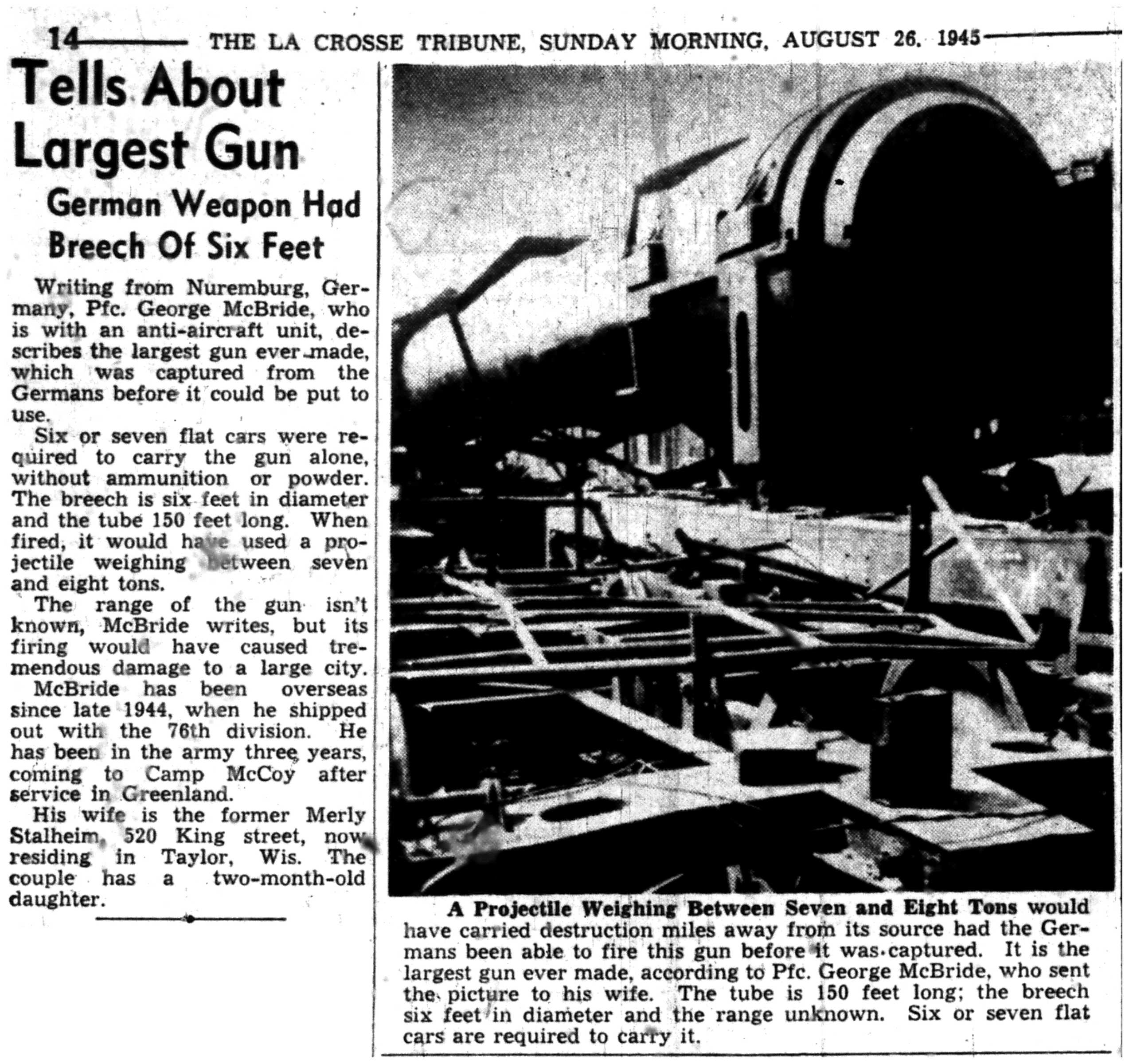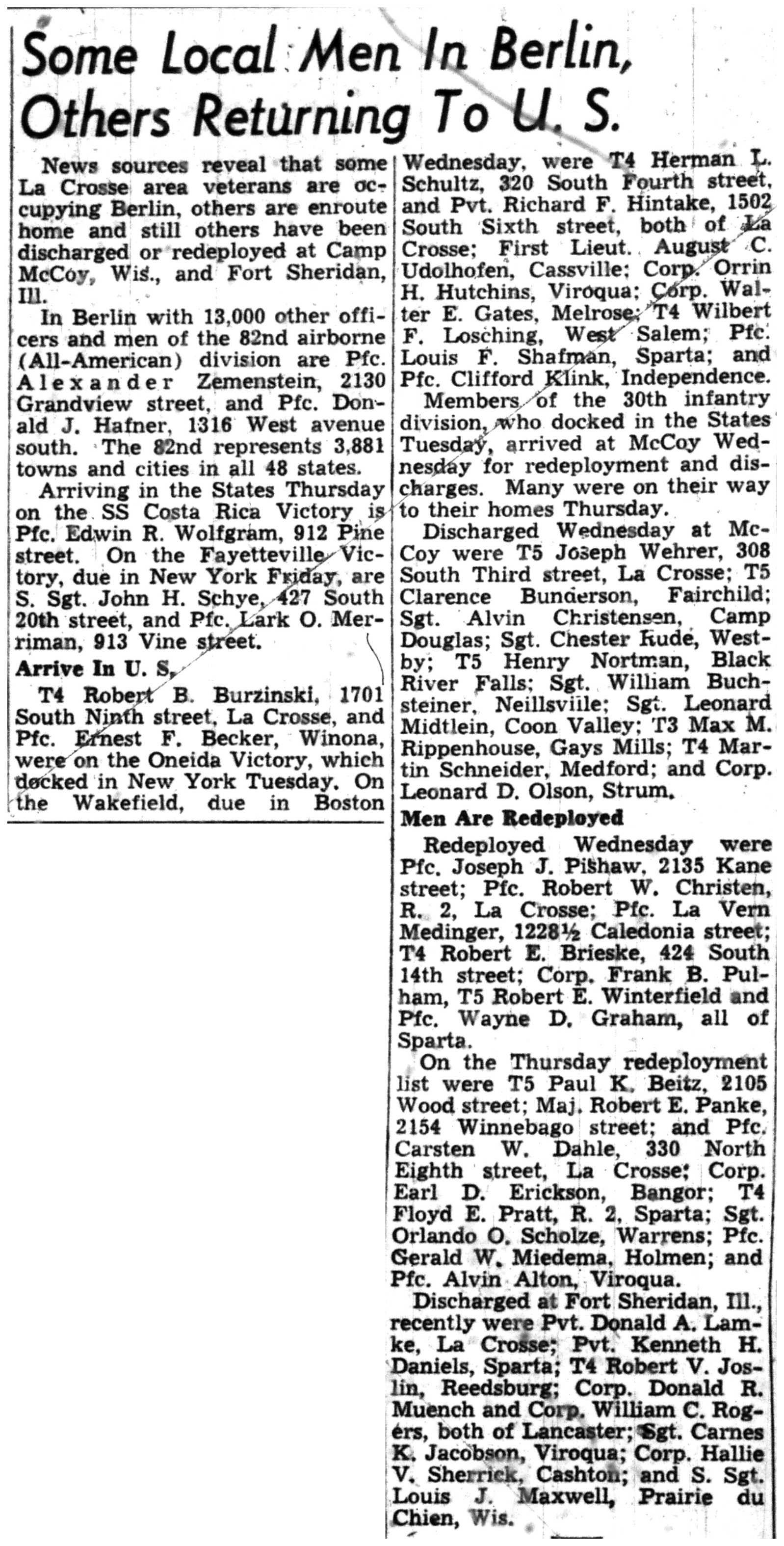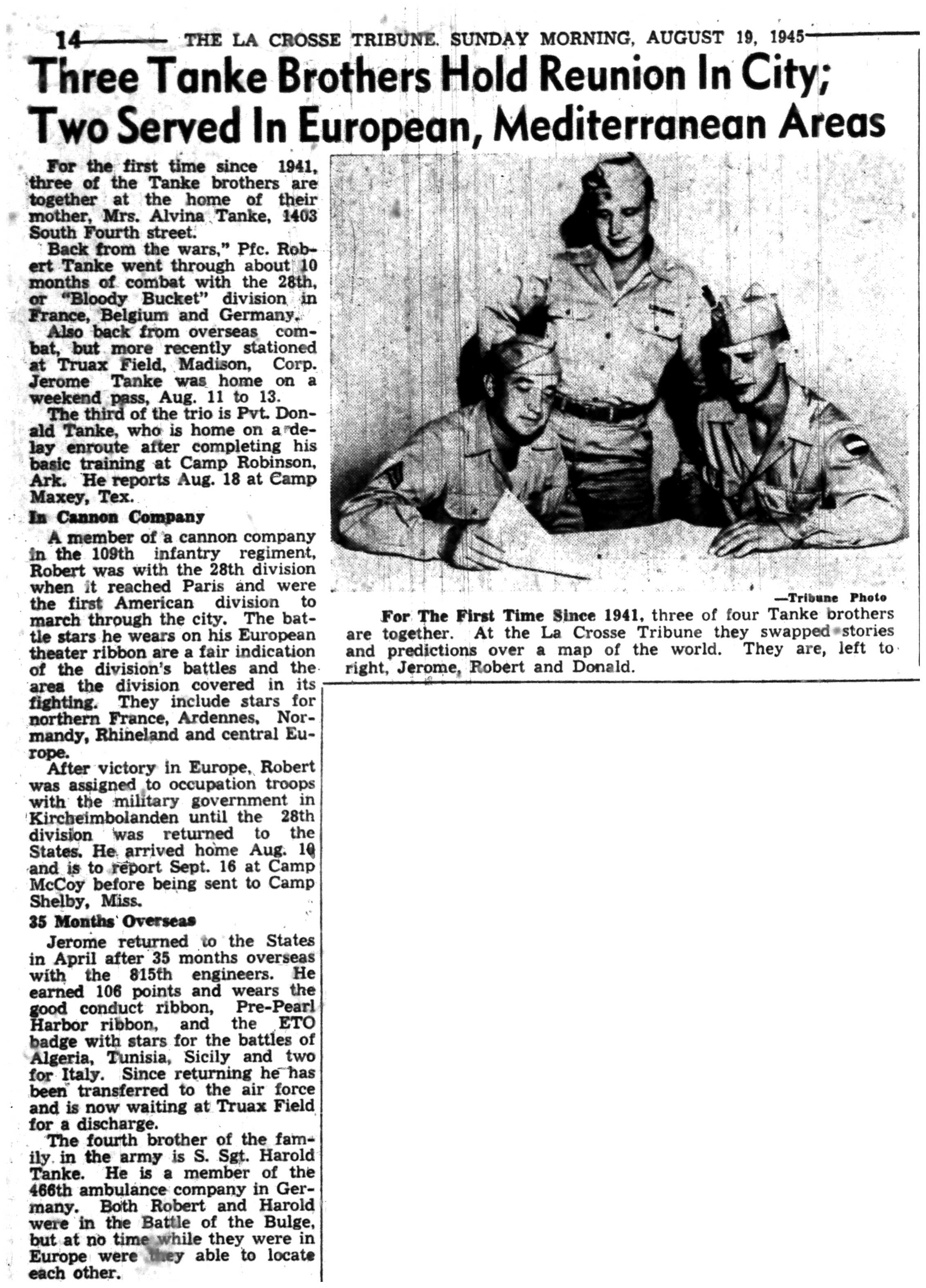 | 1945-8-2 | La Crosse Tribune p4 | |