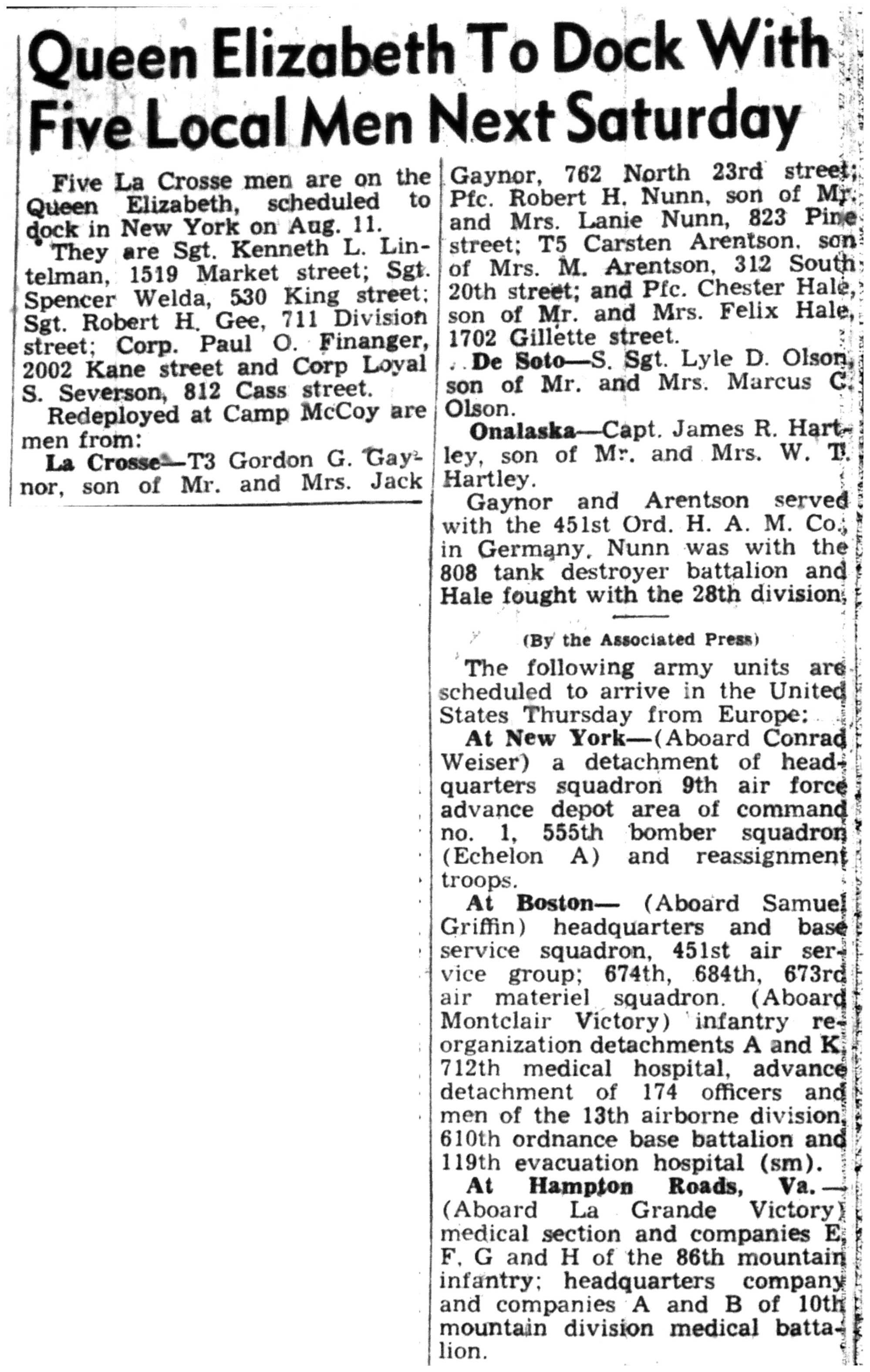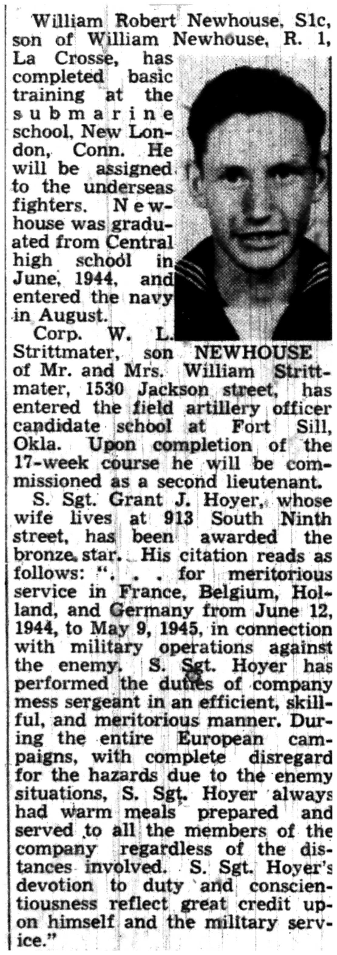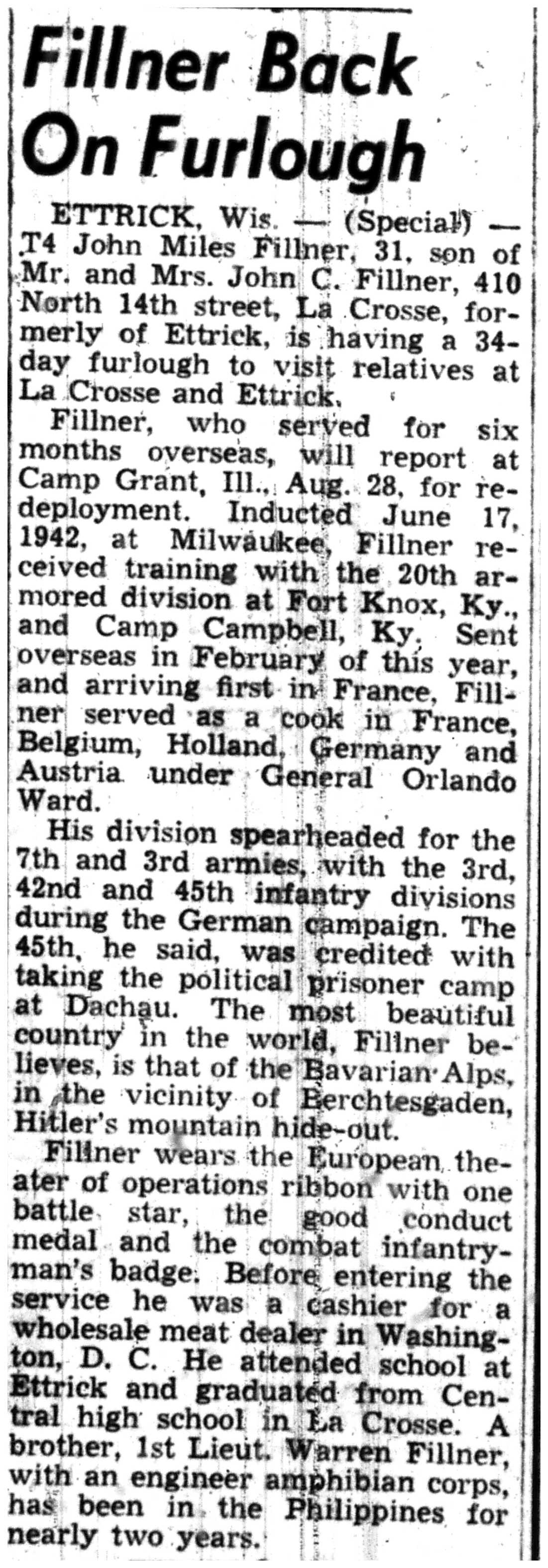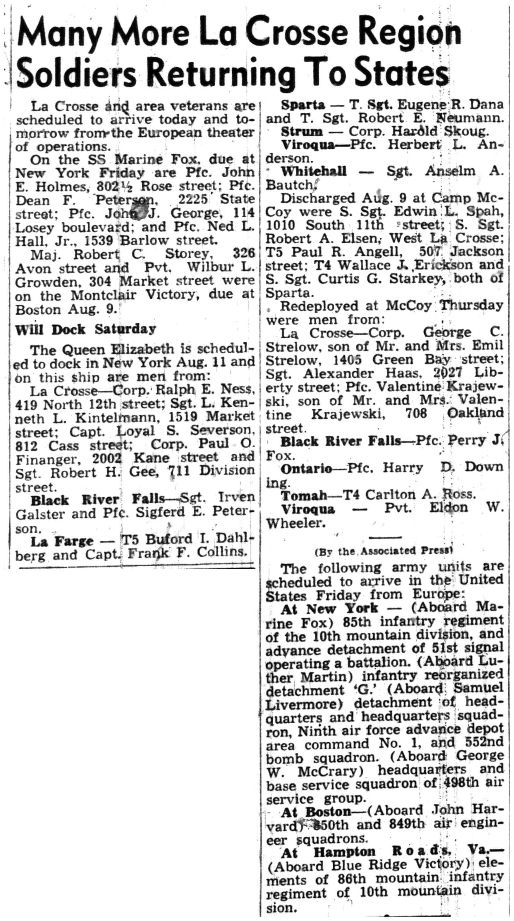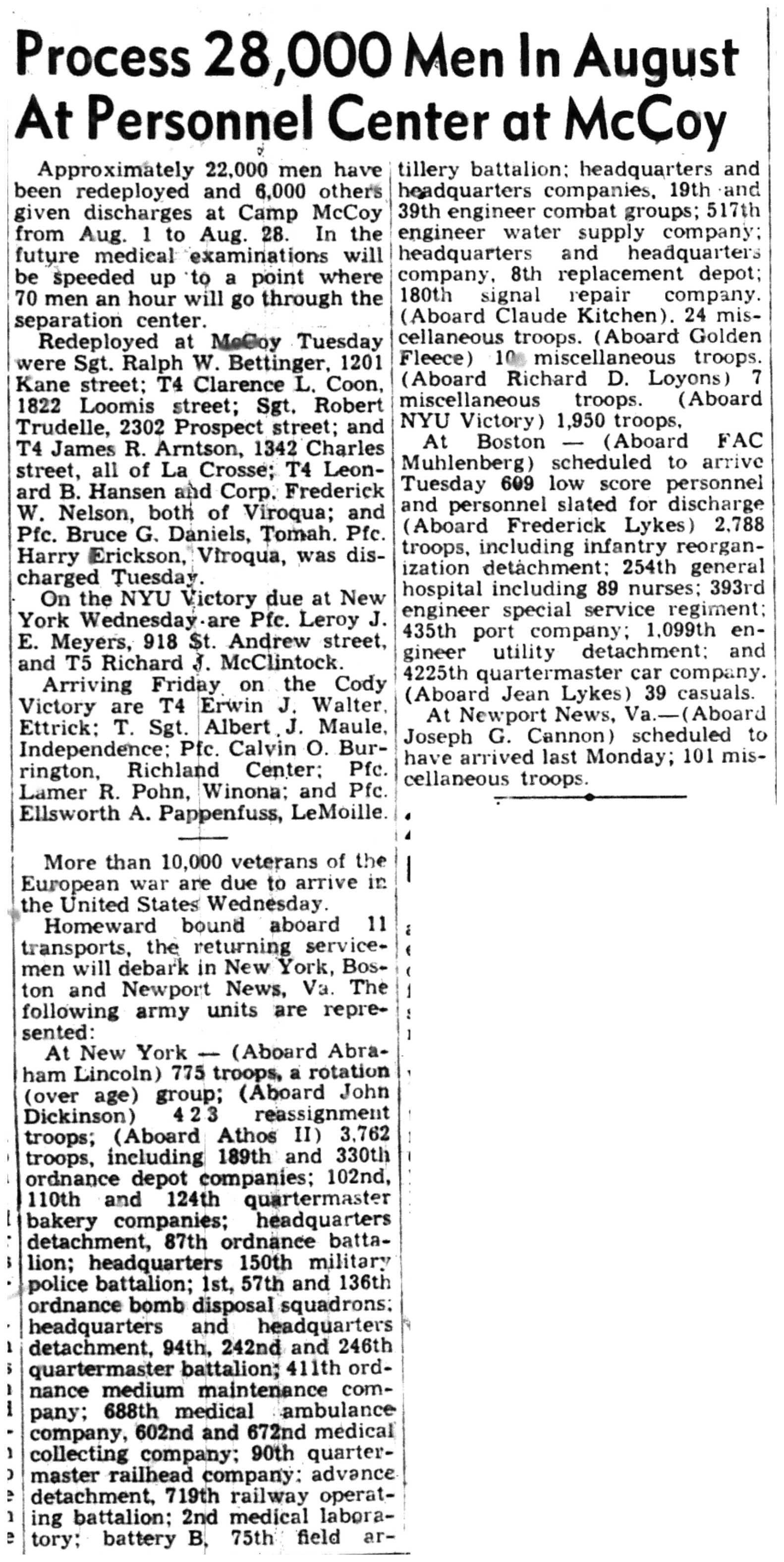 | 1945-8-2 | La Crosse Tribune p4 | |