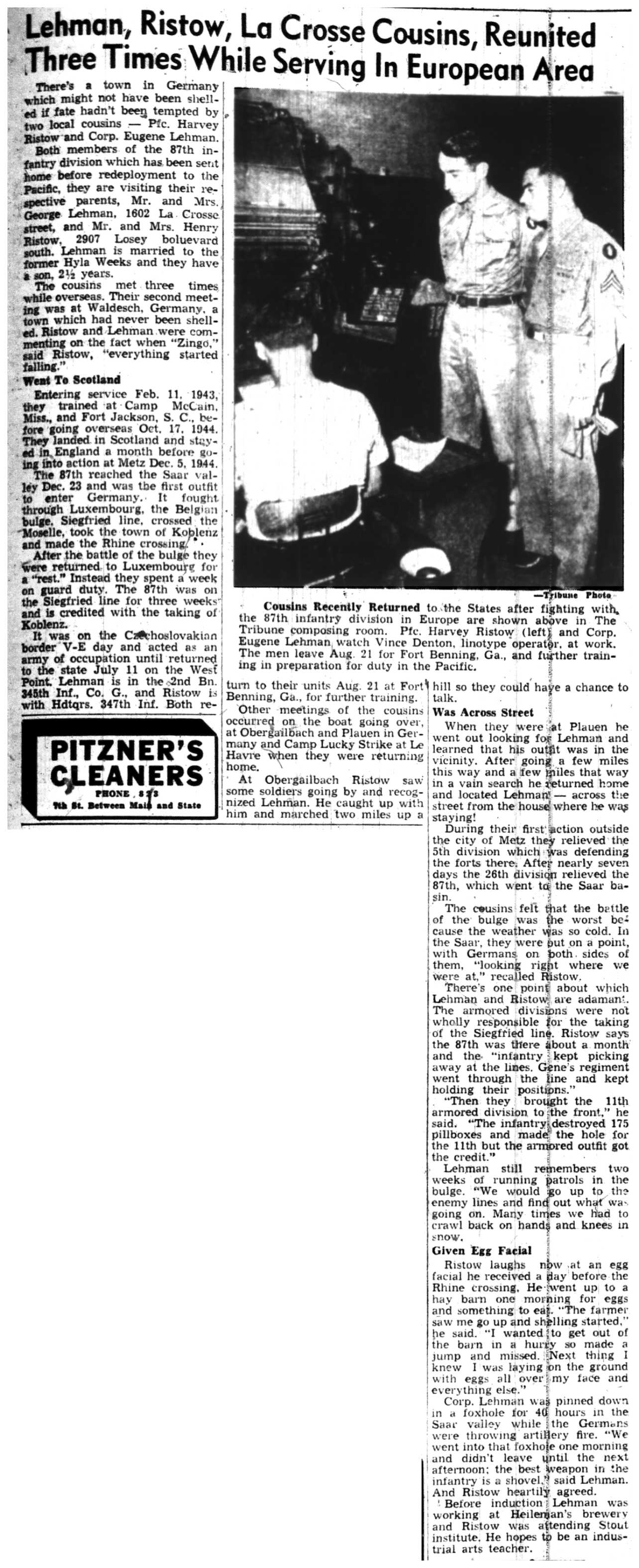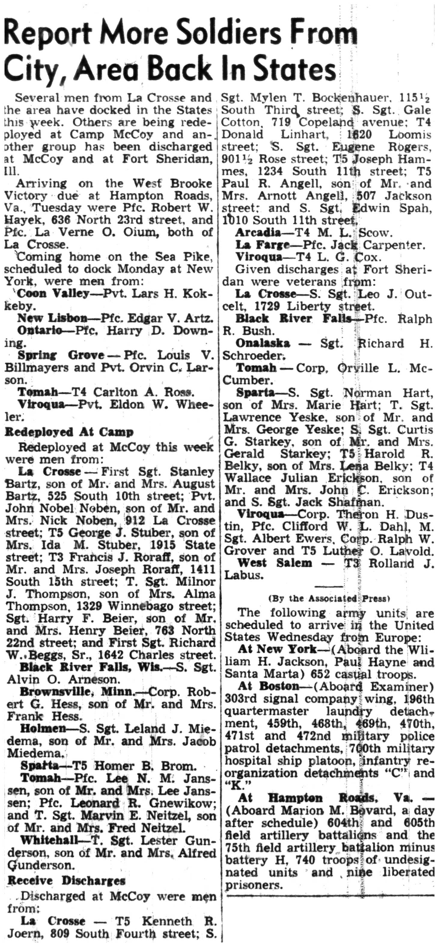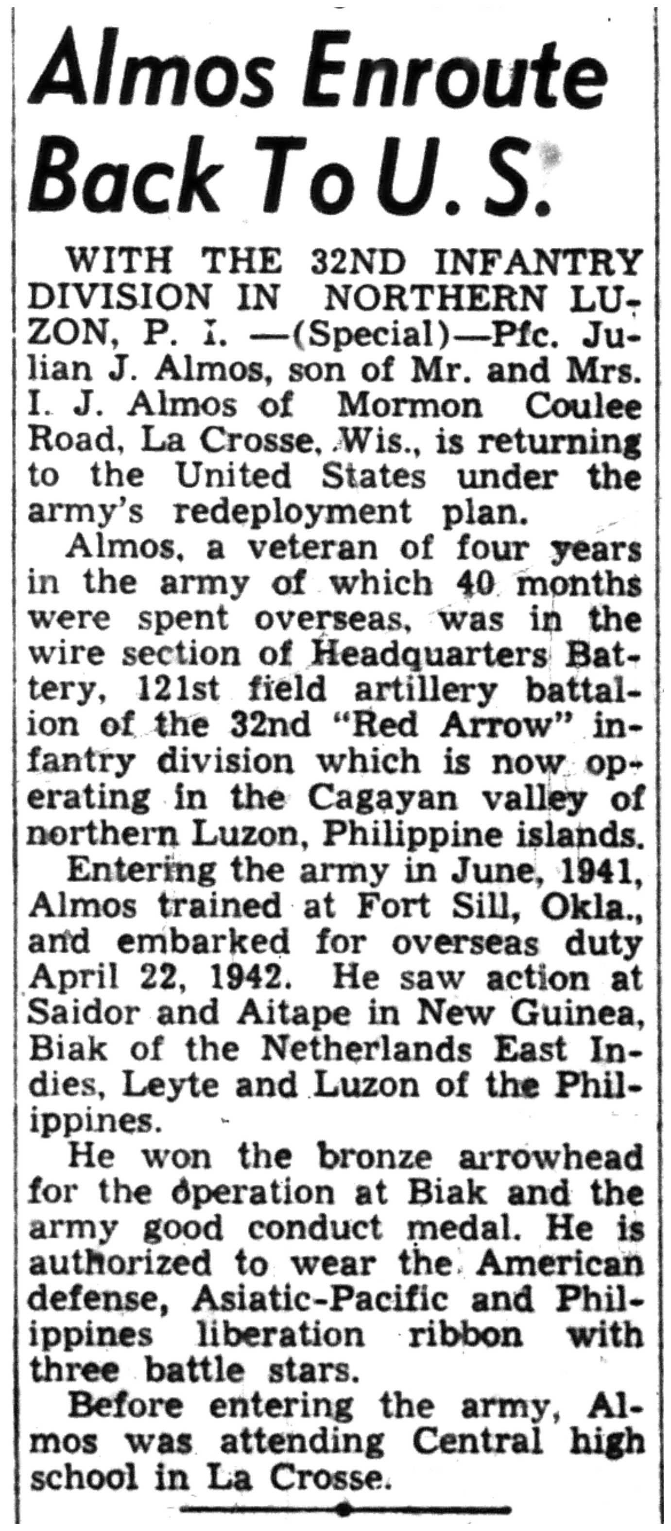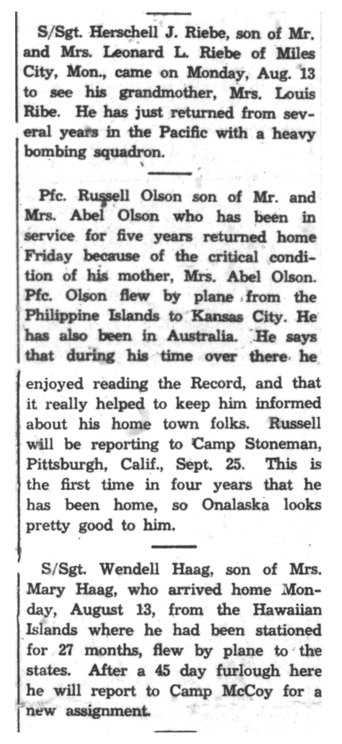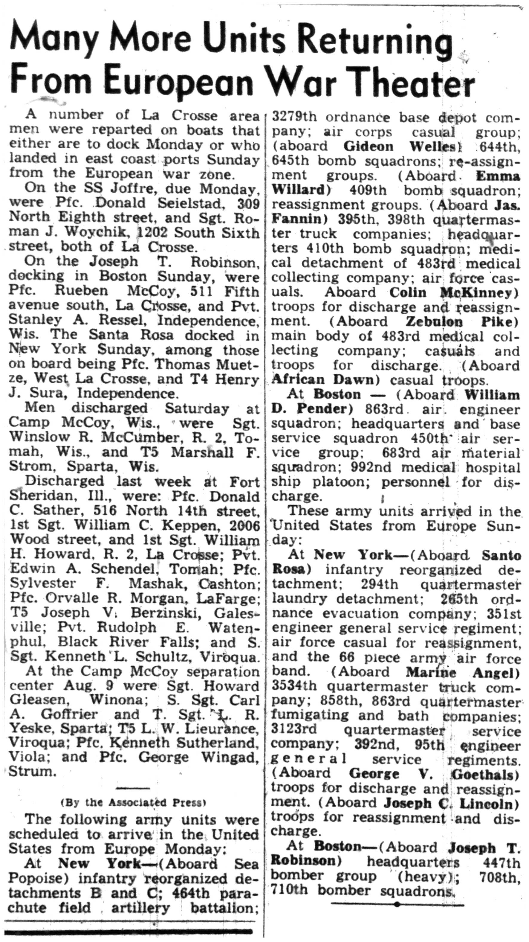 | 1945-8-2 | La Crosse Tribune p4 | |