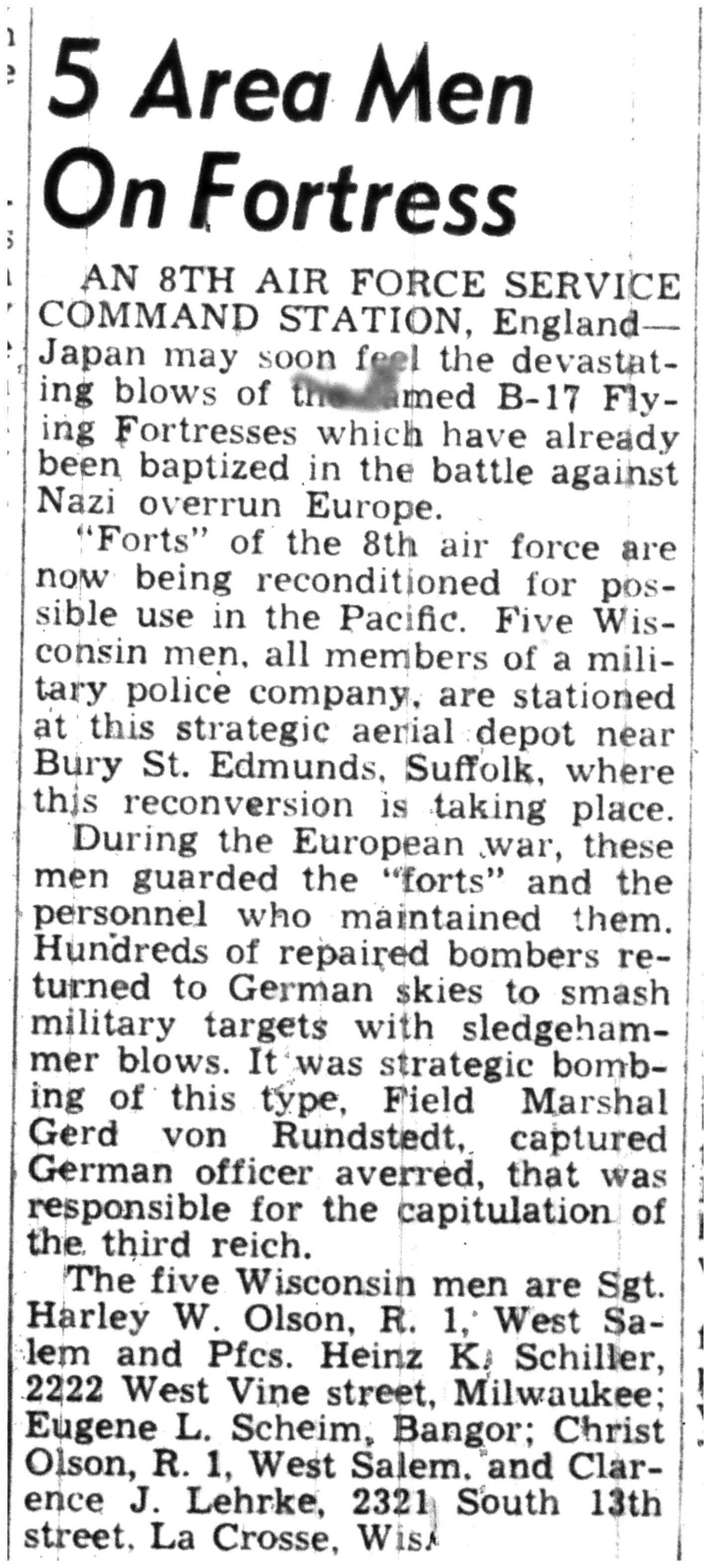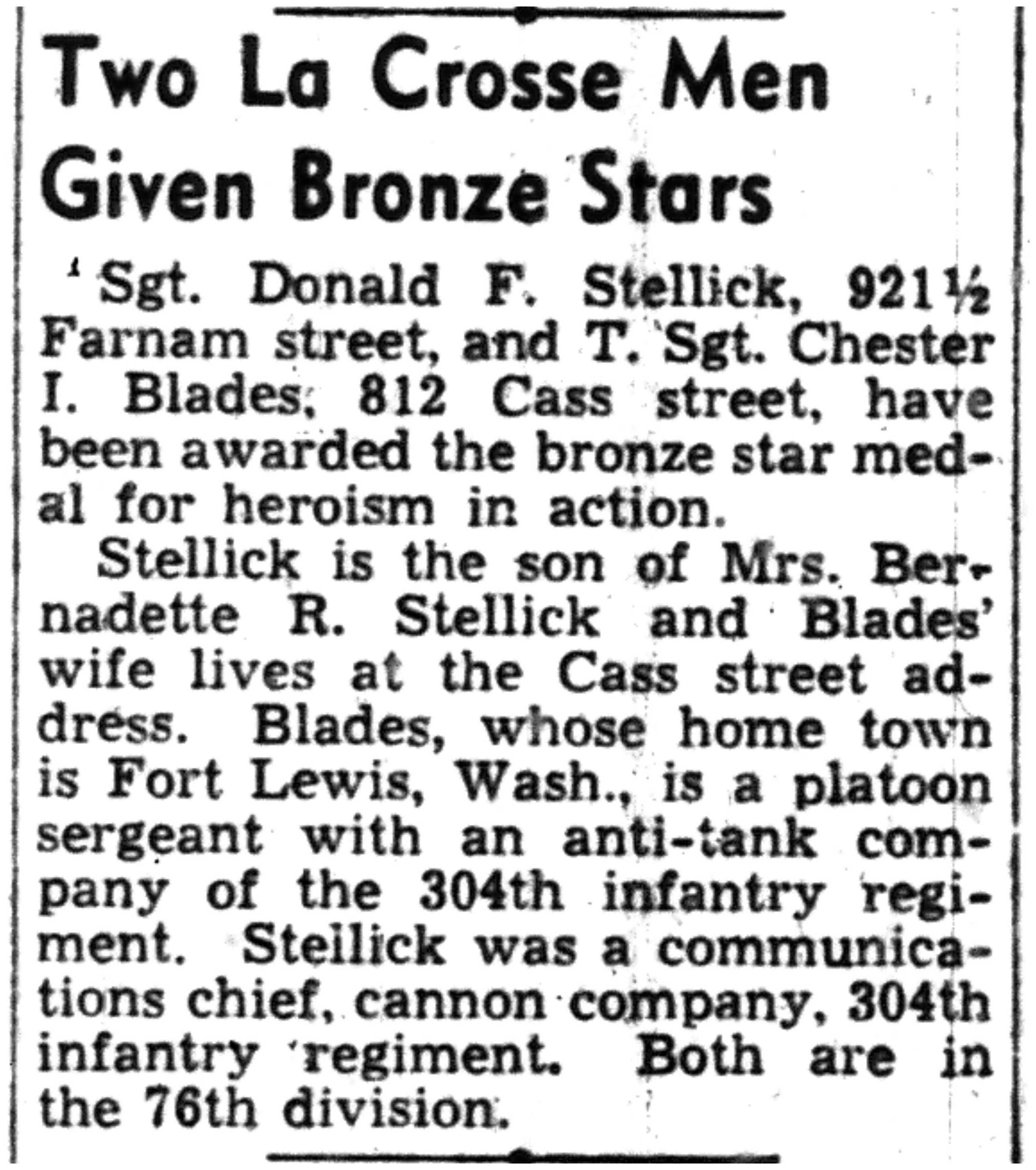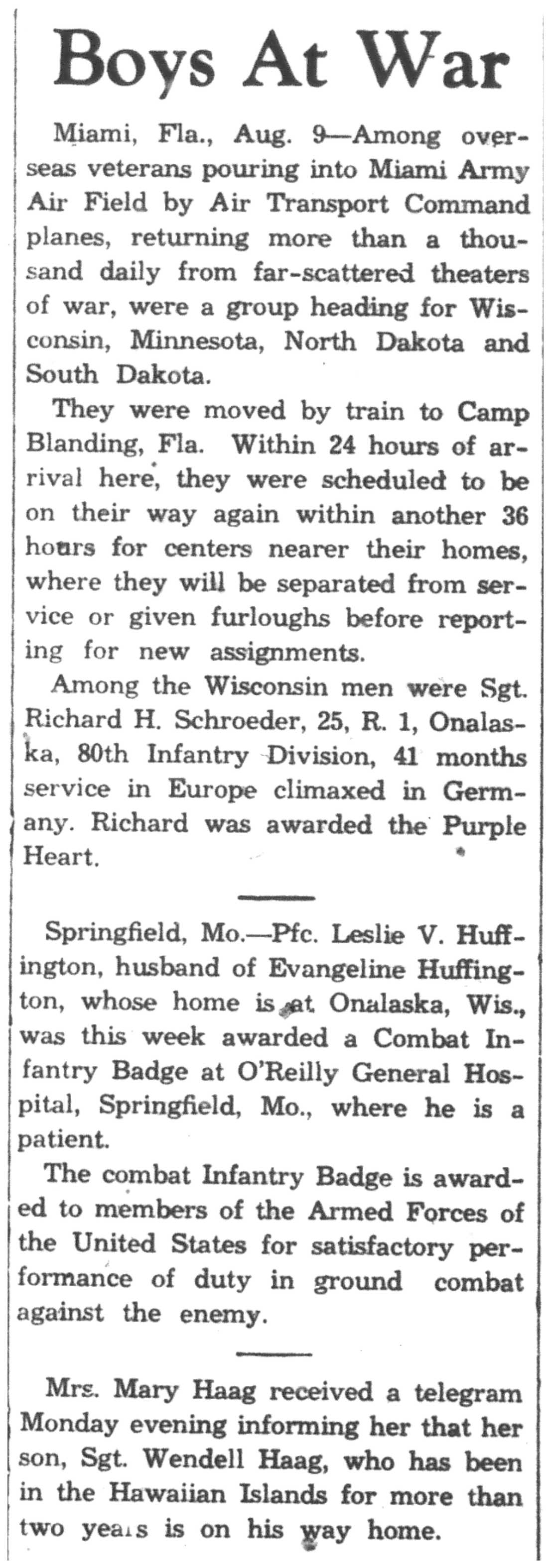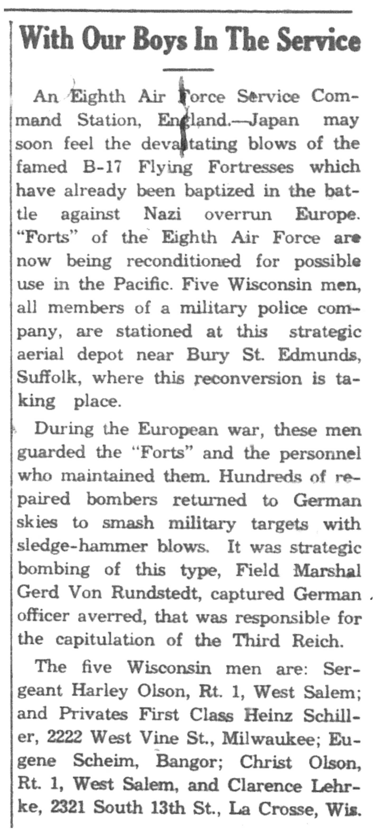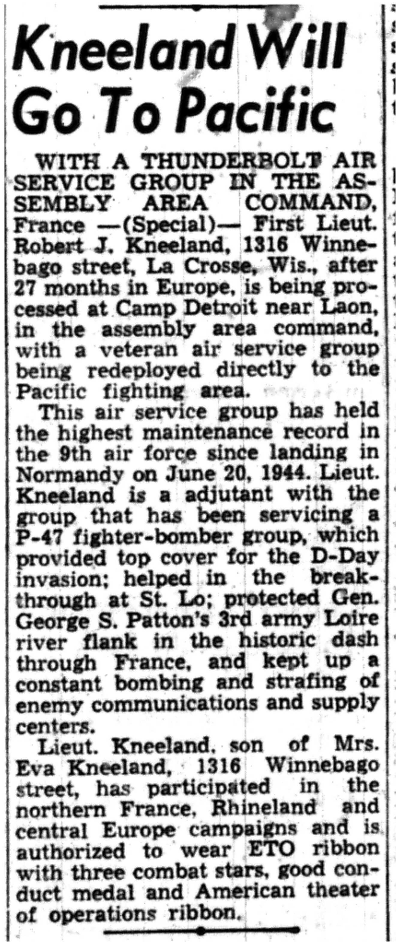| 1945-8-2 | La Crosse Tribune p4 | |