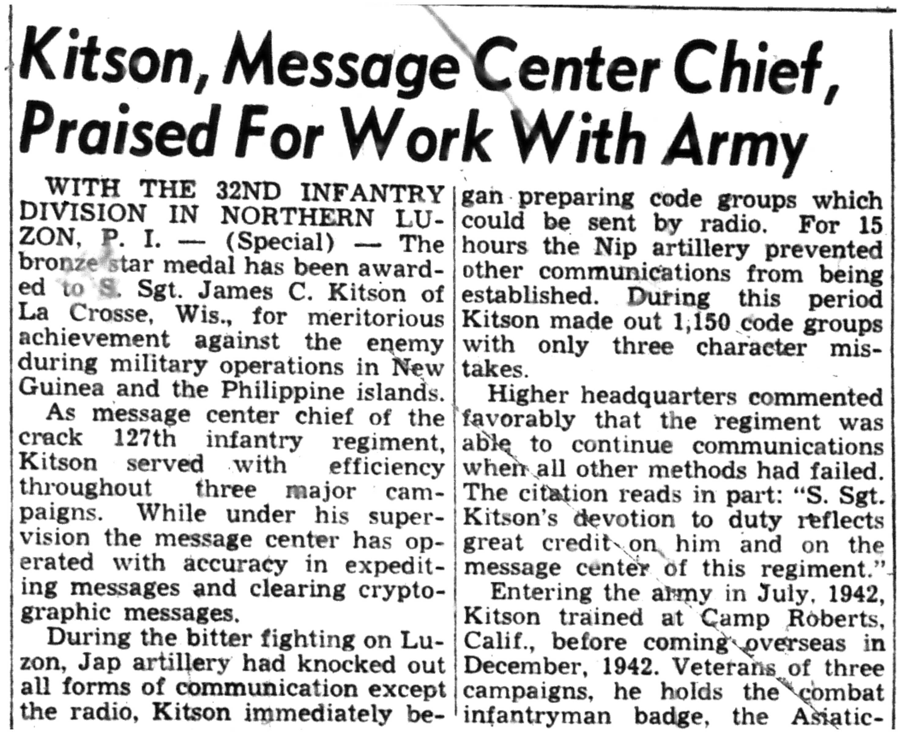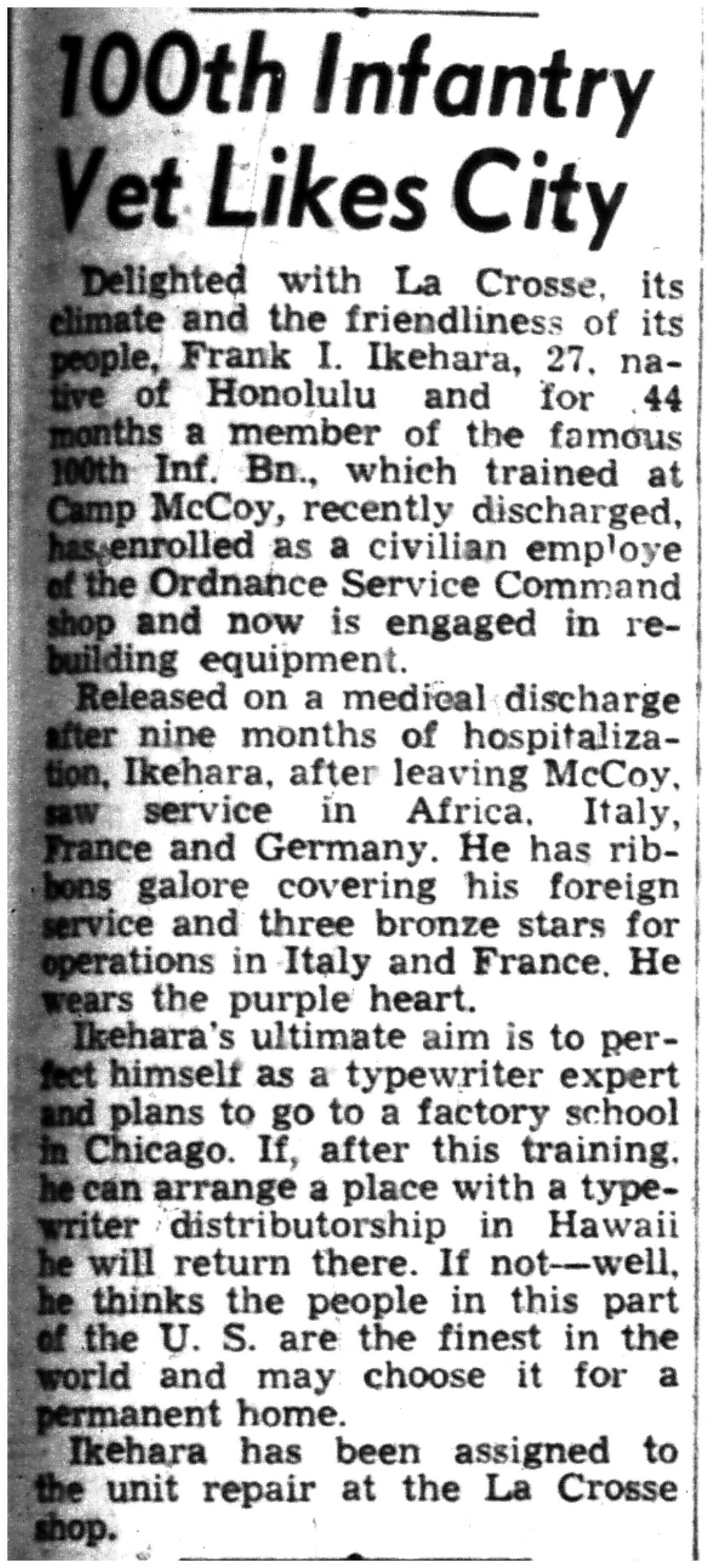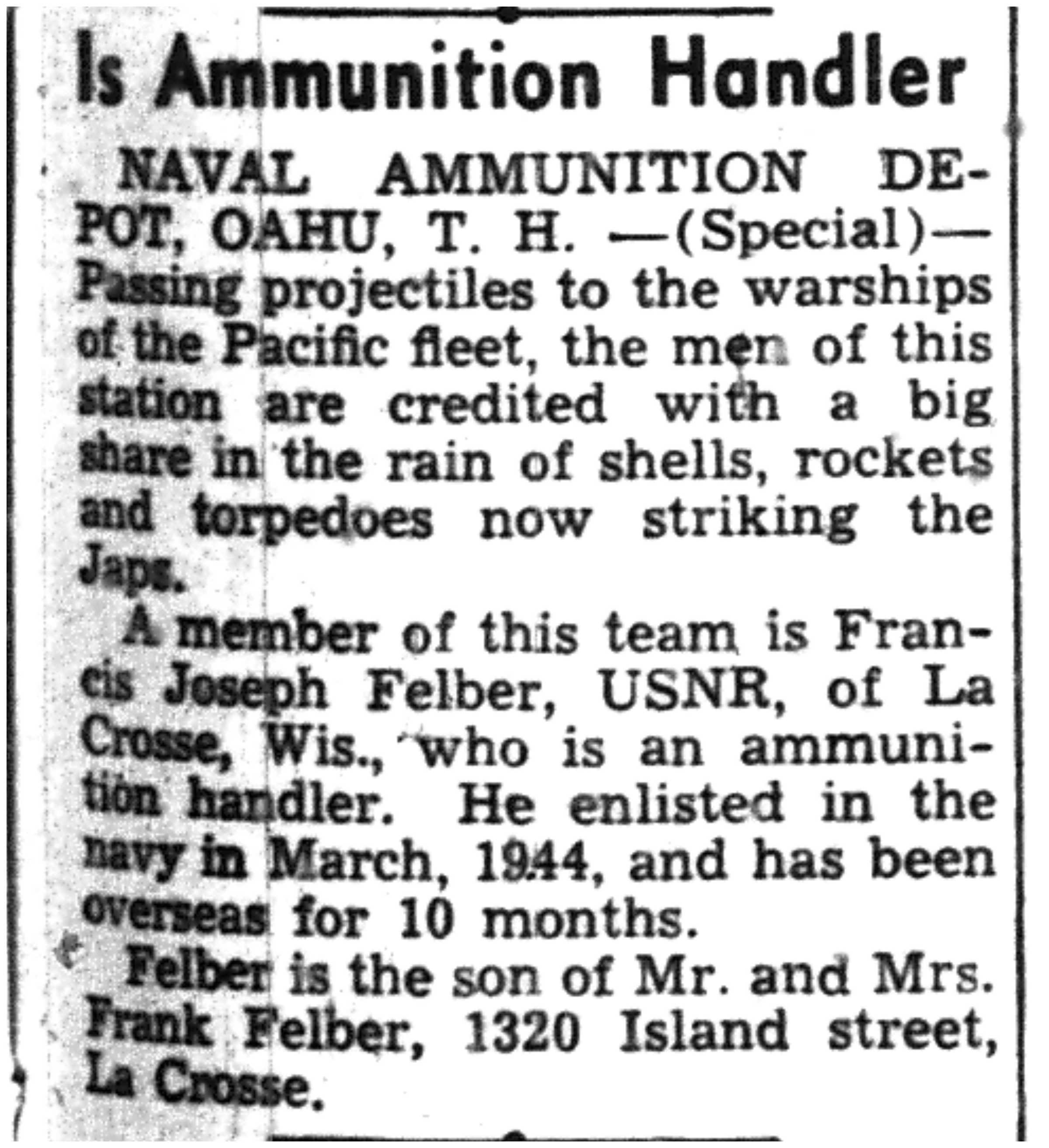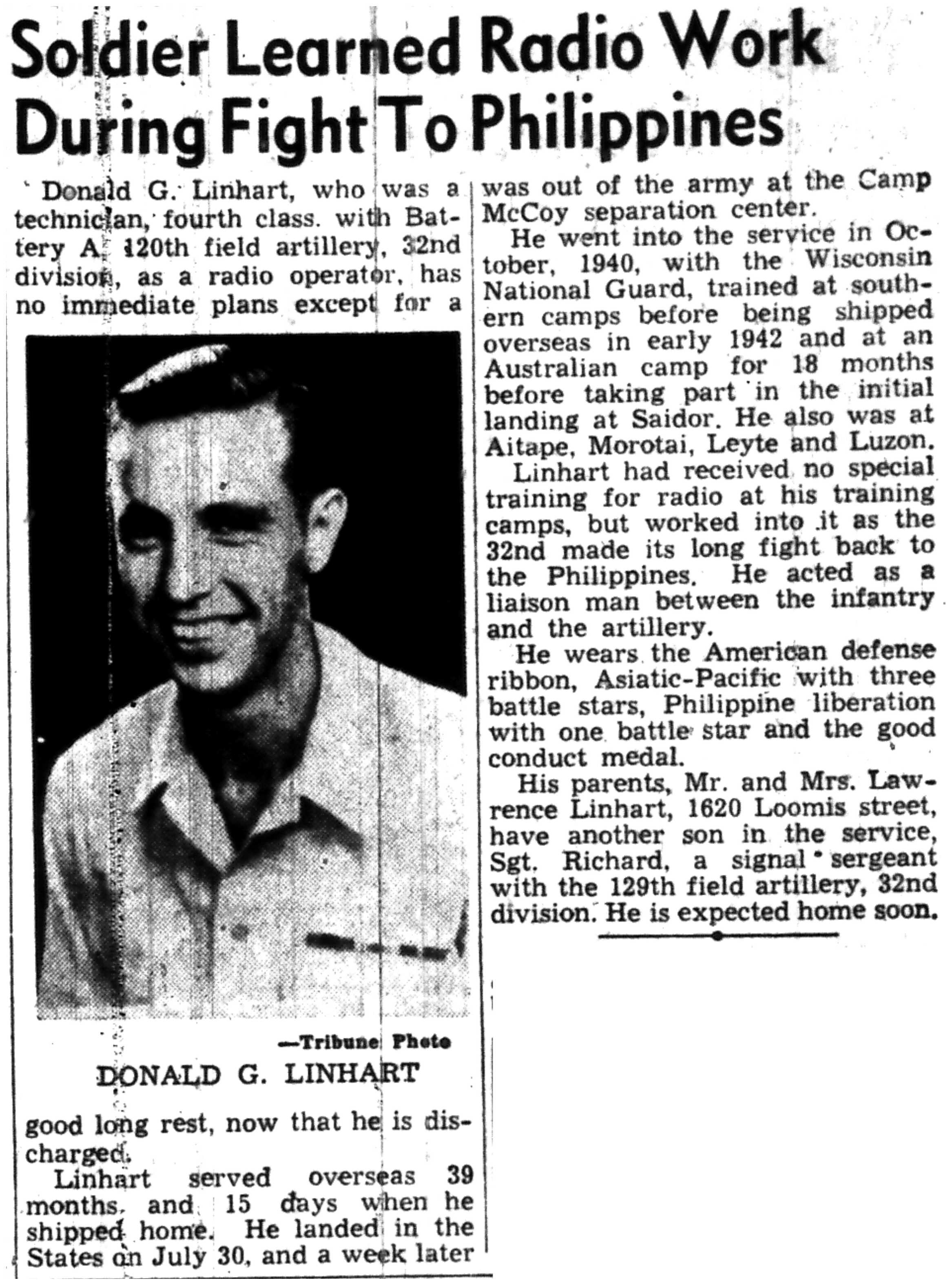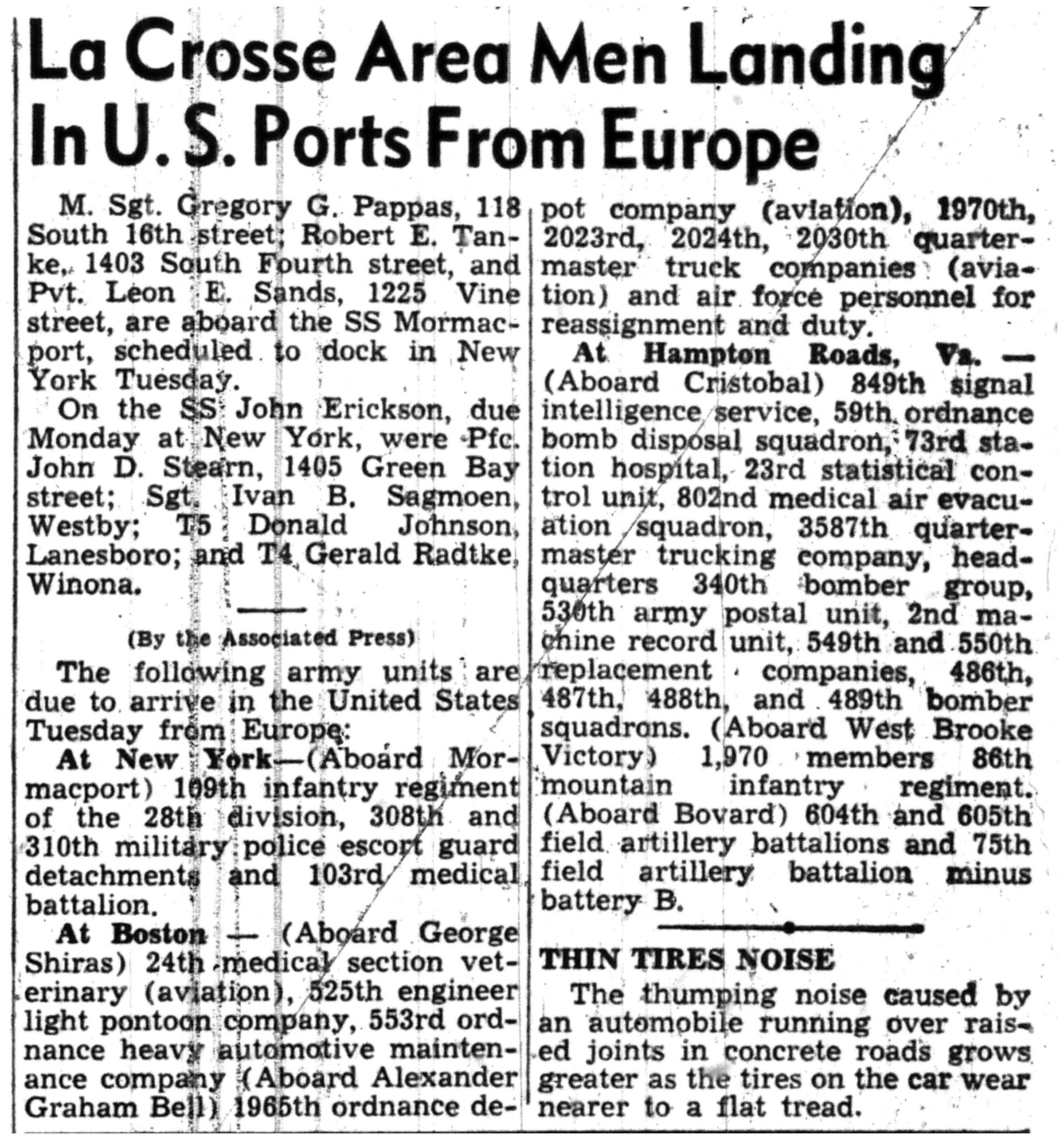 | 1945-8-2 | La Crosse Tribune p4 | |