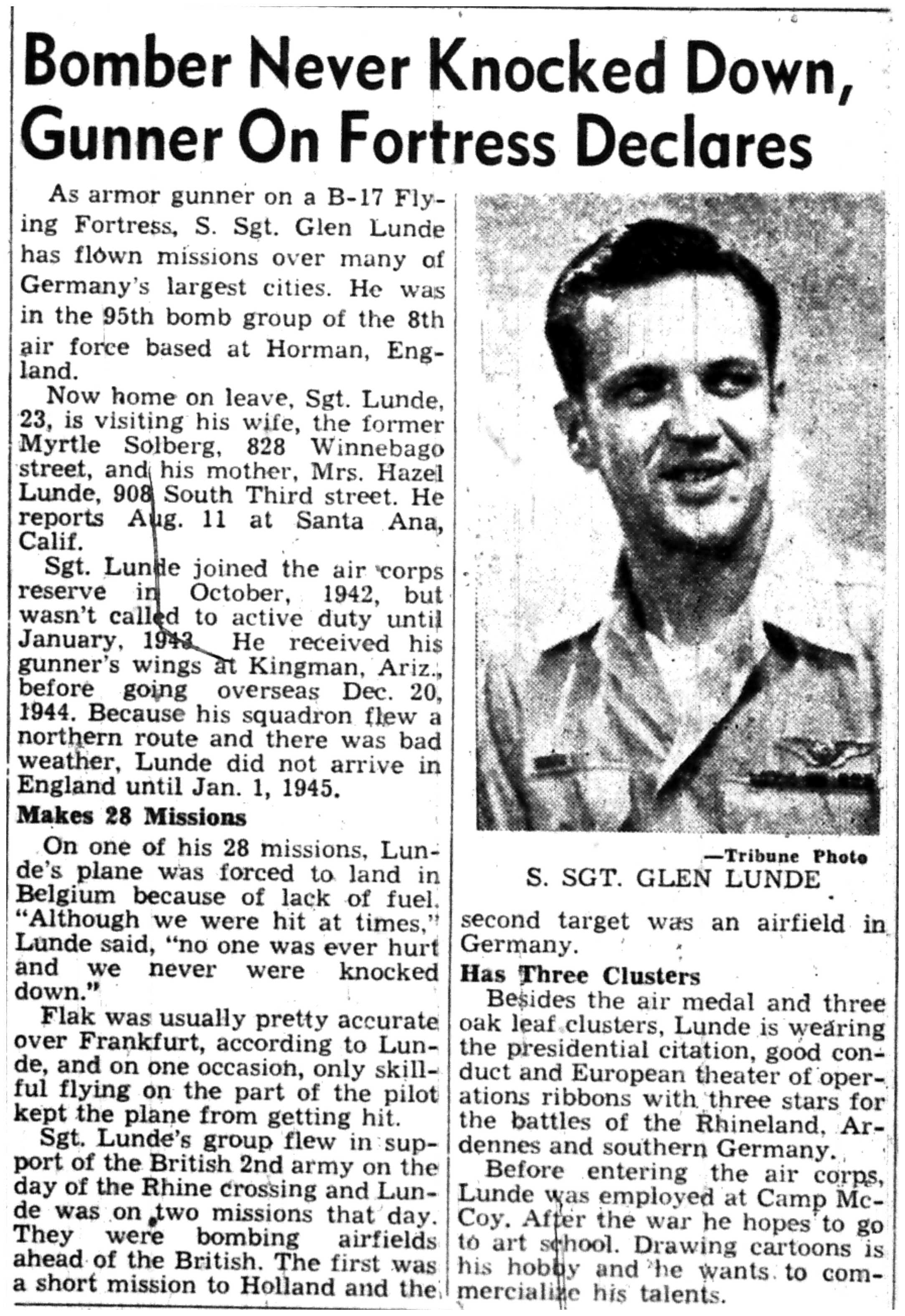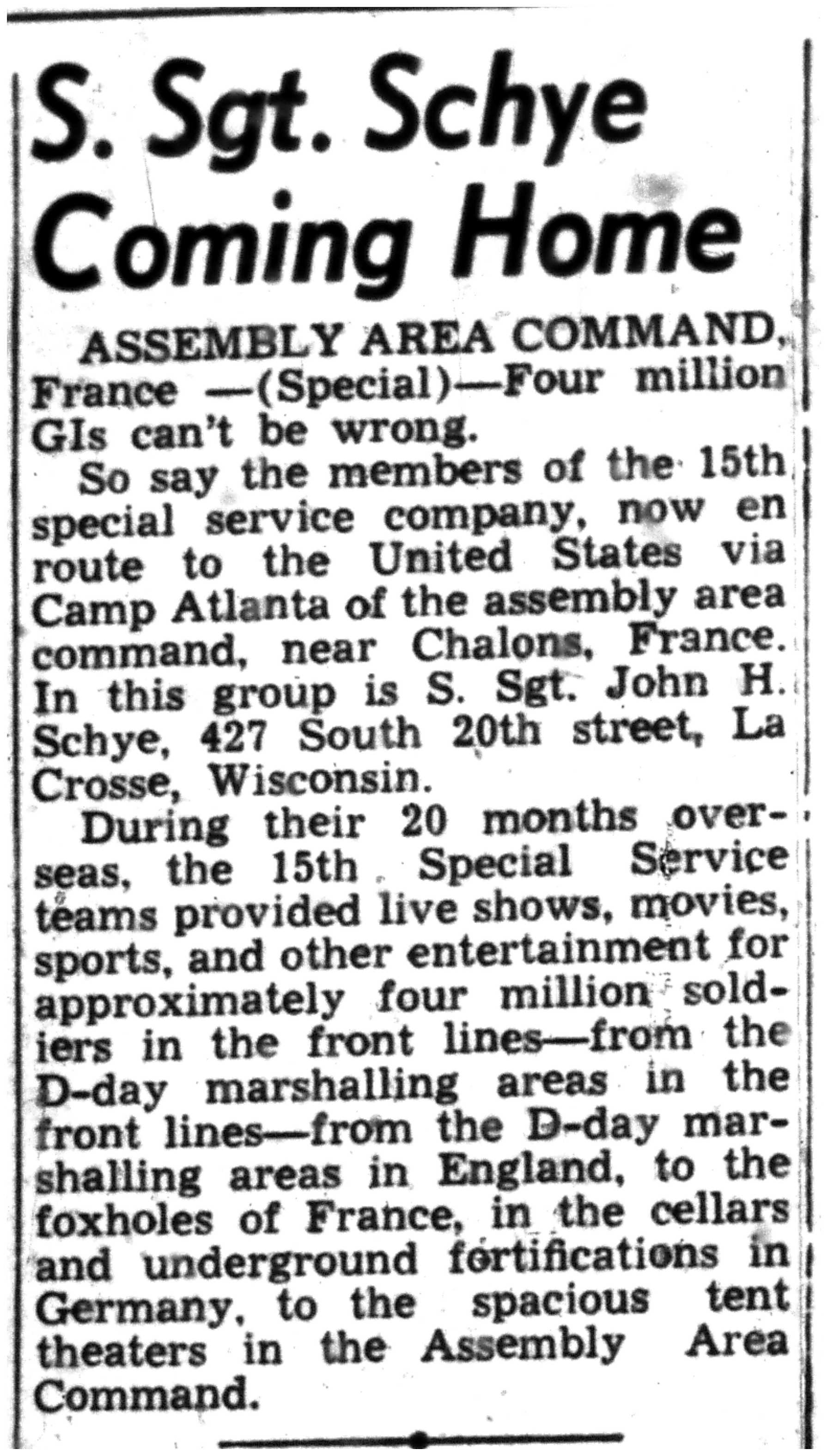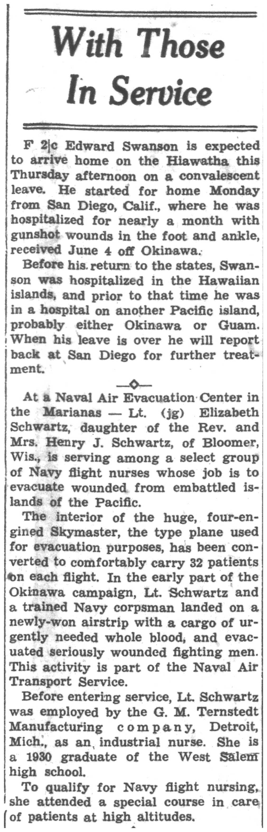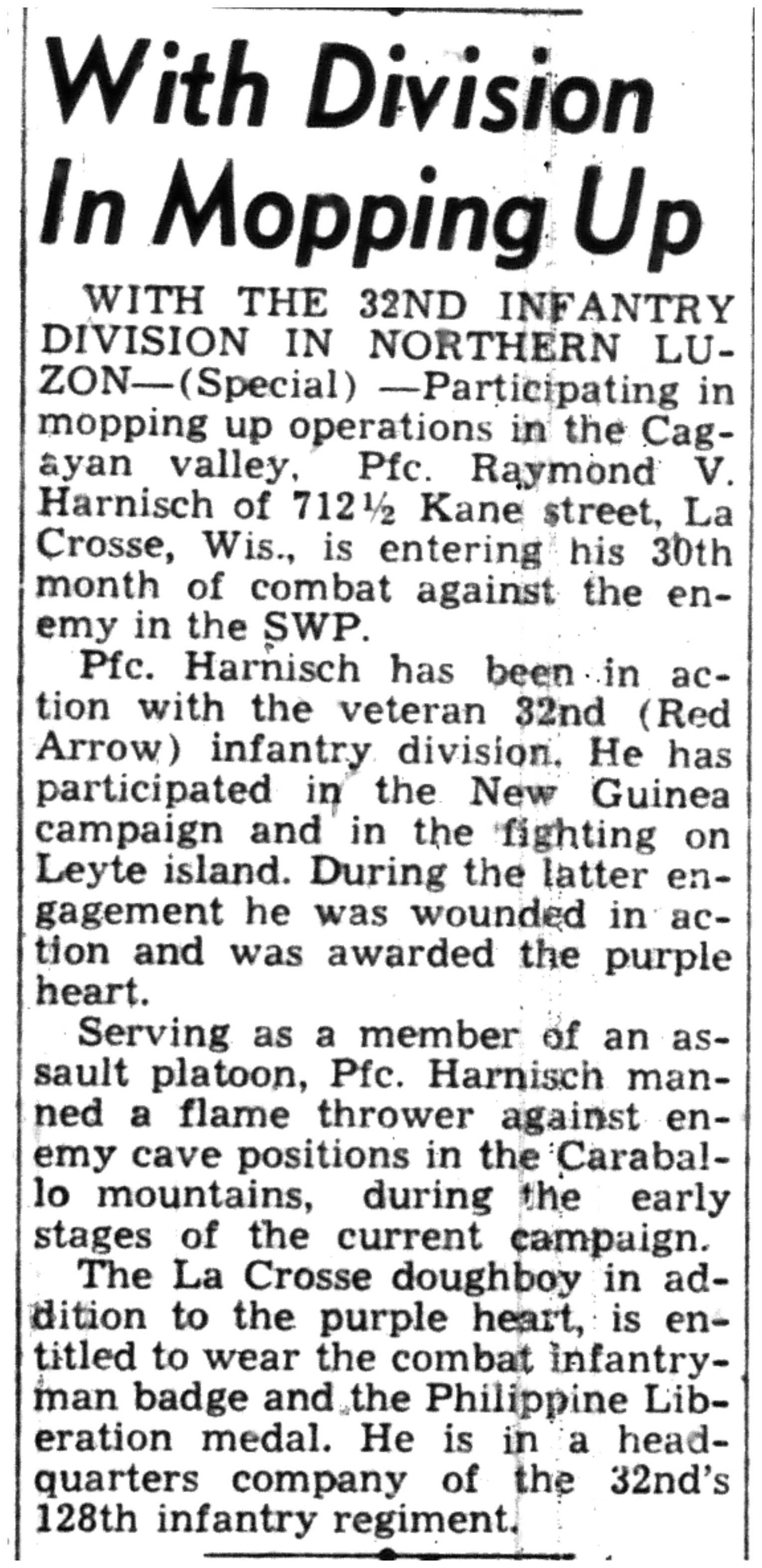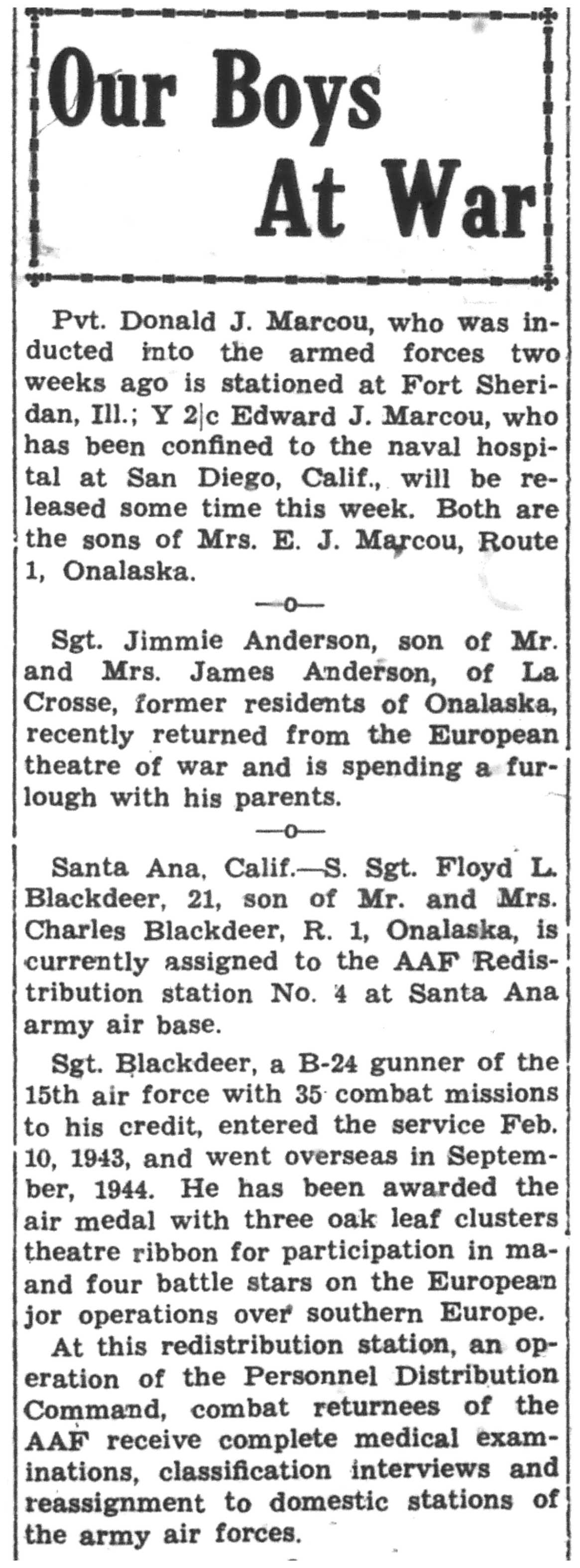 | 1945-8-2 | La Crosse Tribune p4 | |
