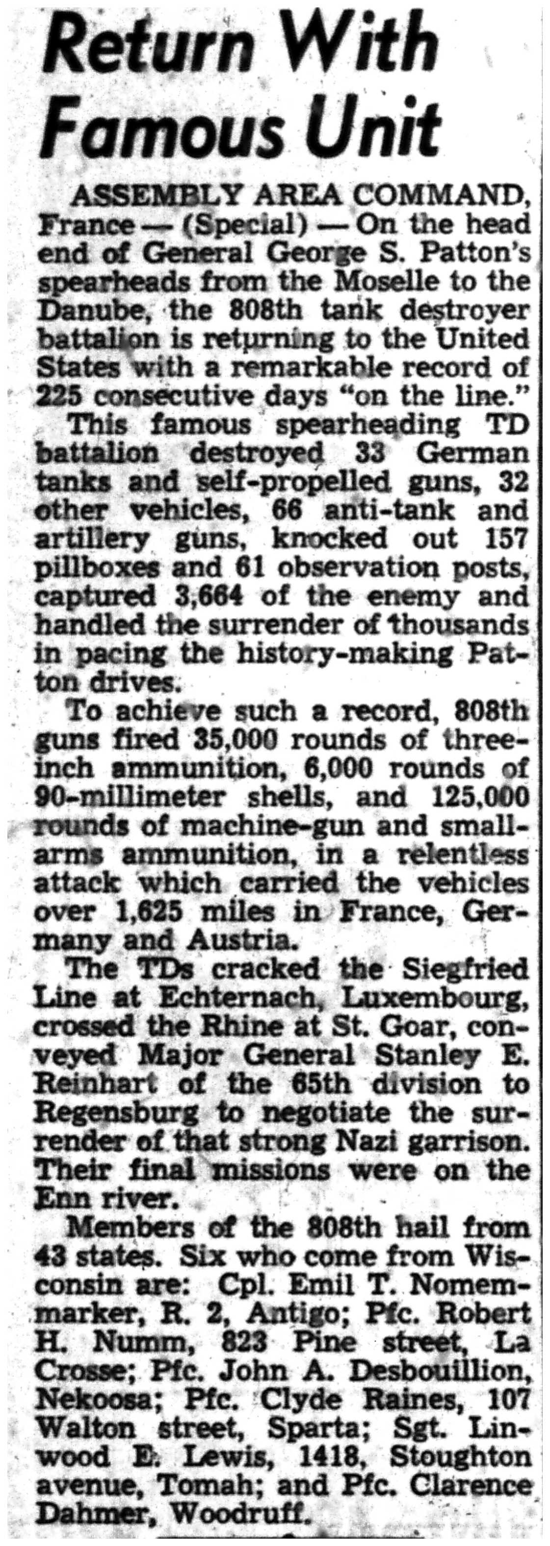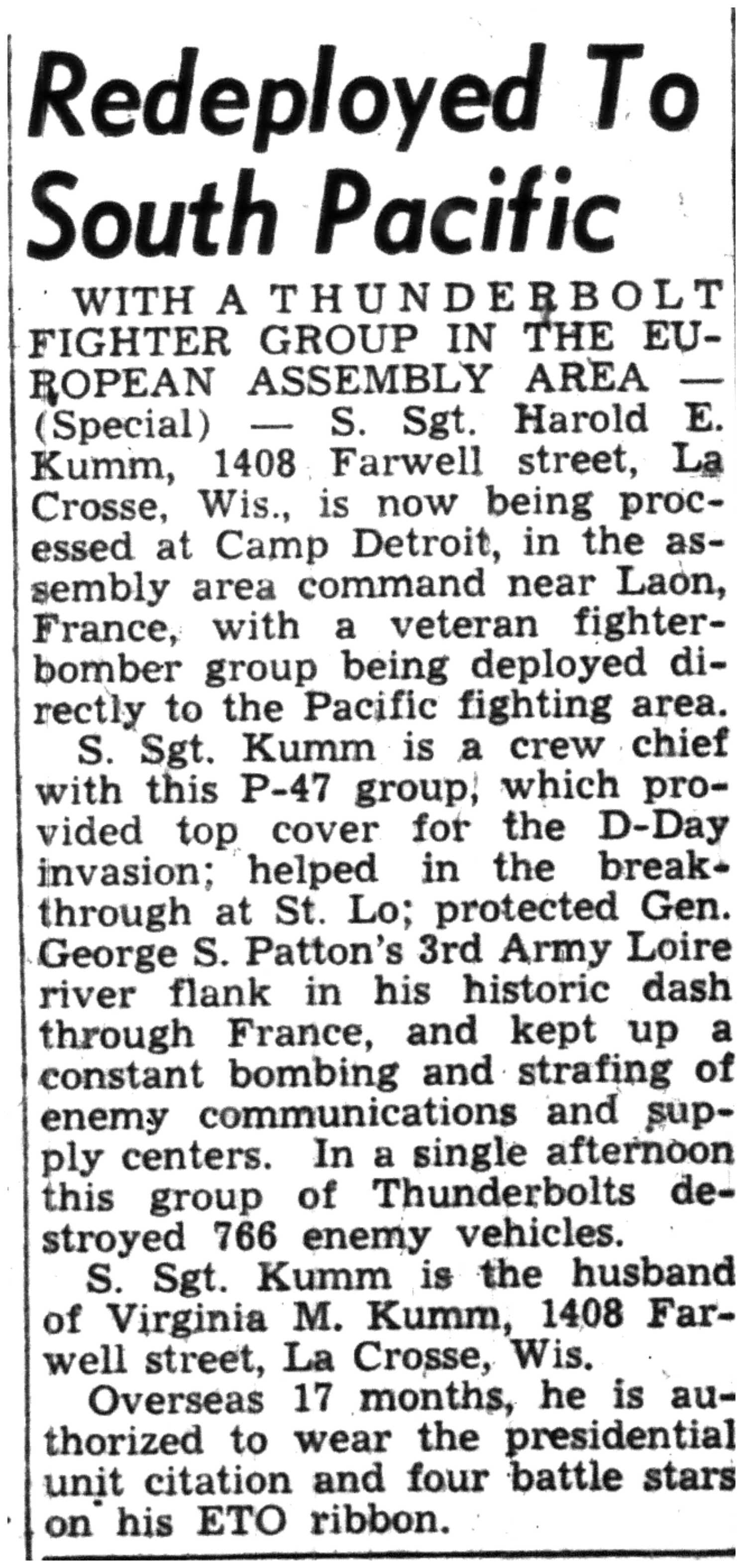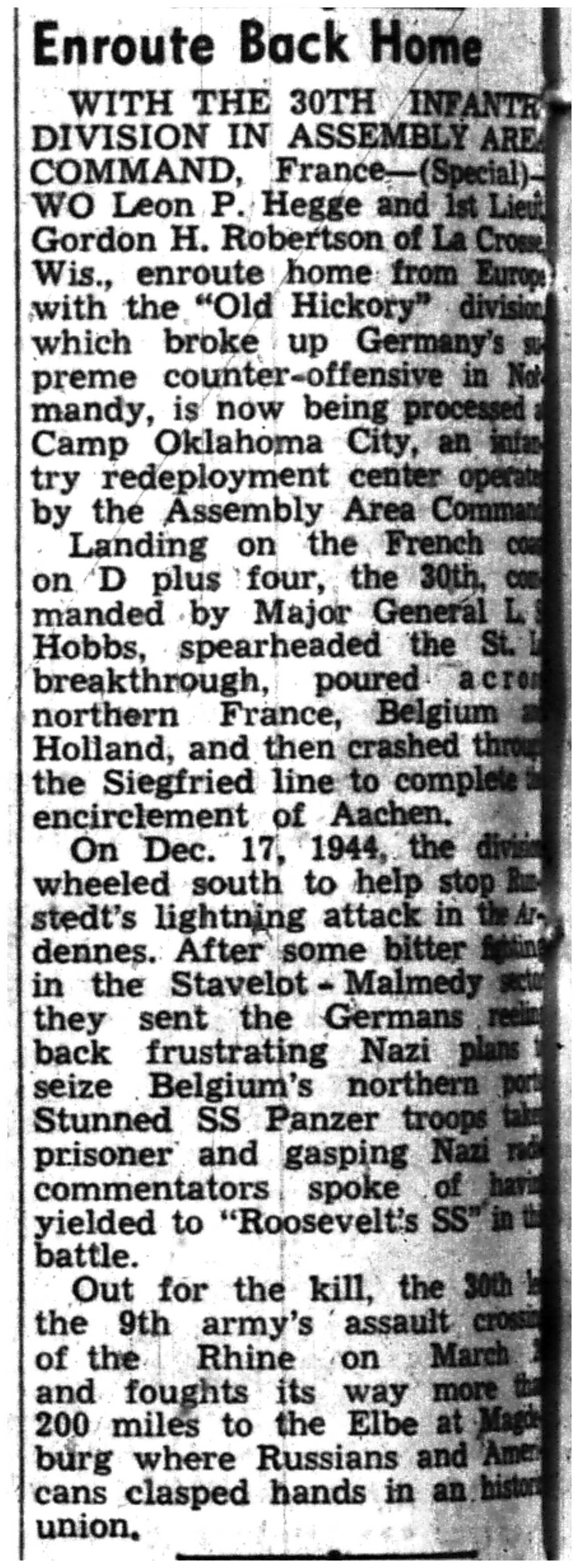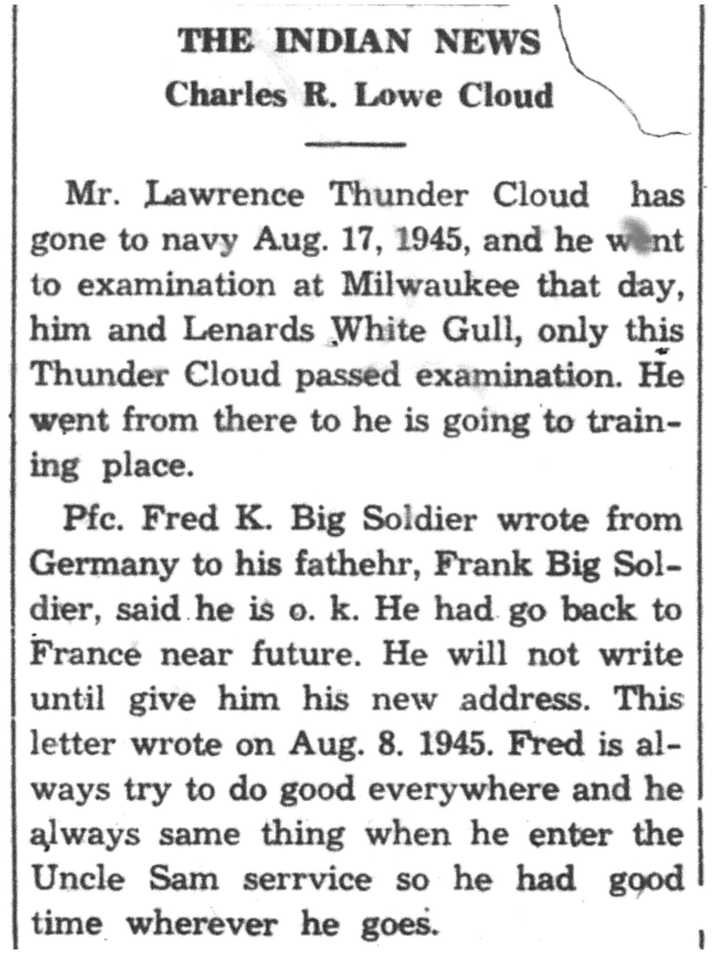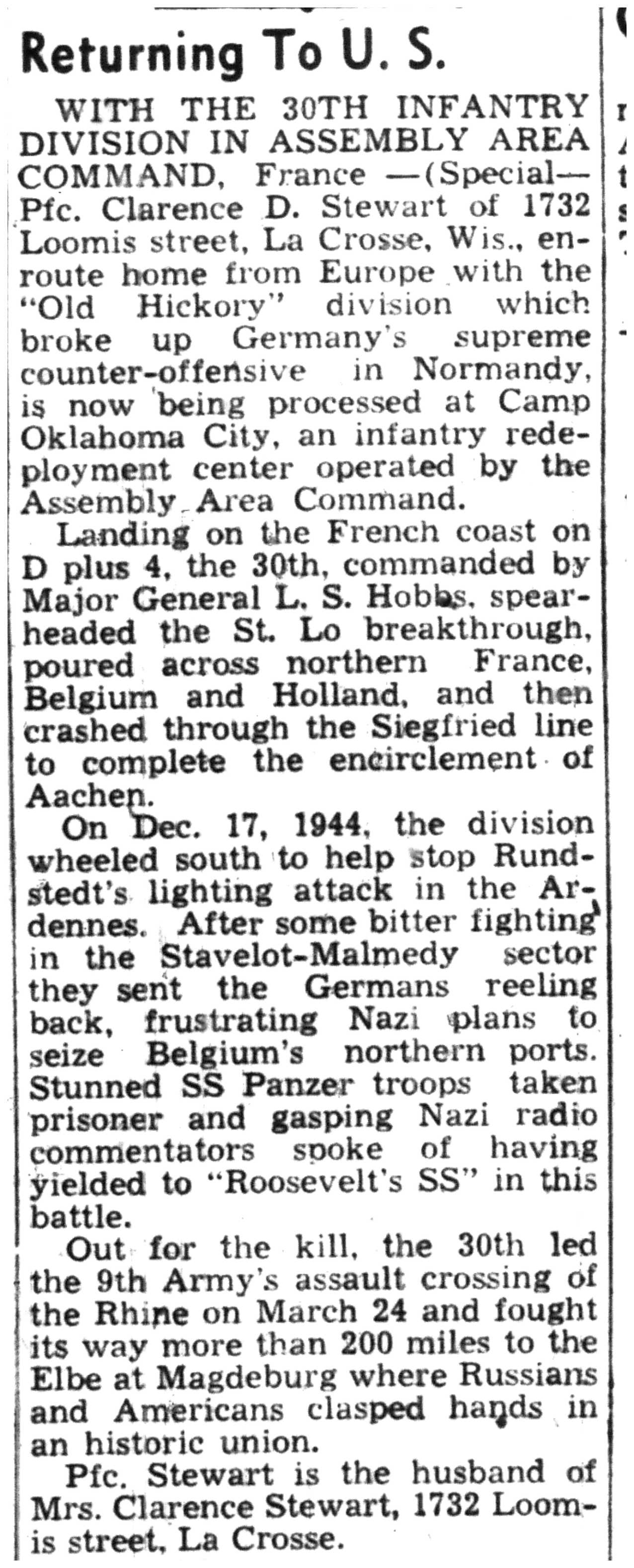 | 1945-8-2 | La Crosse Tribune p4 | |