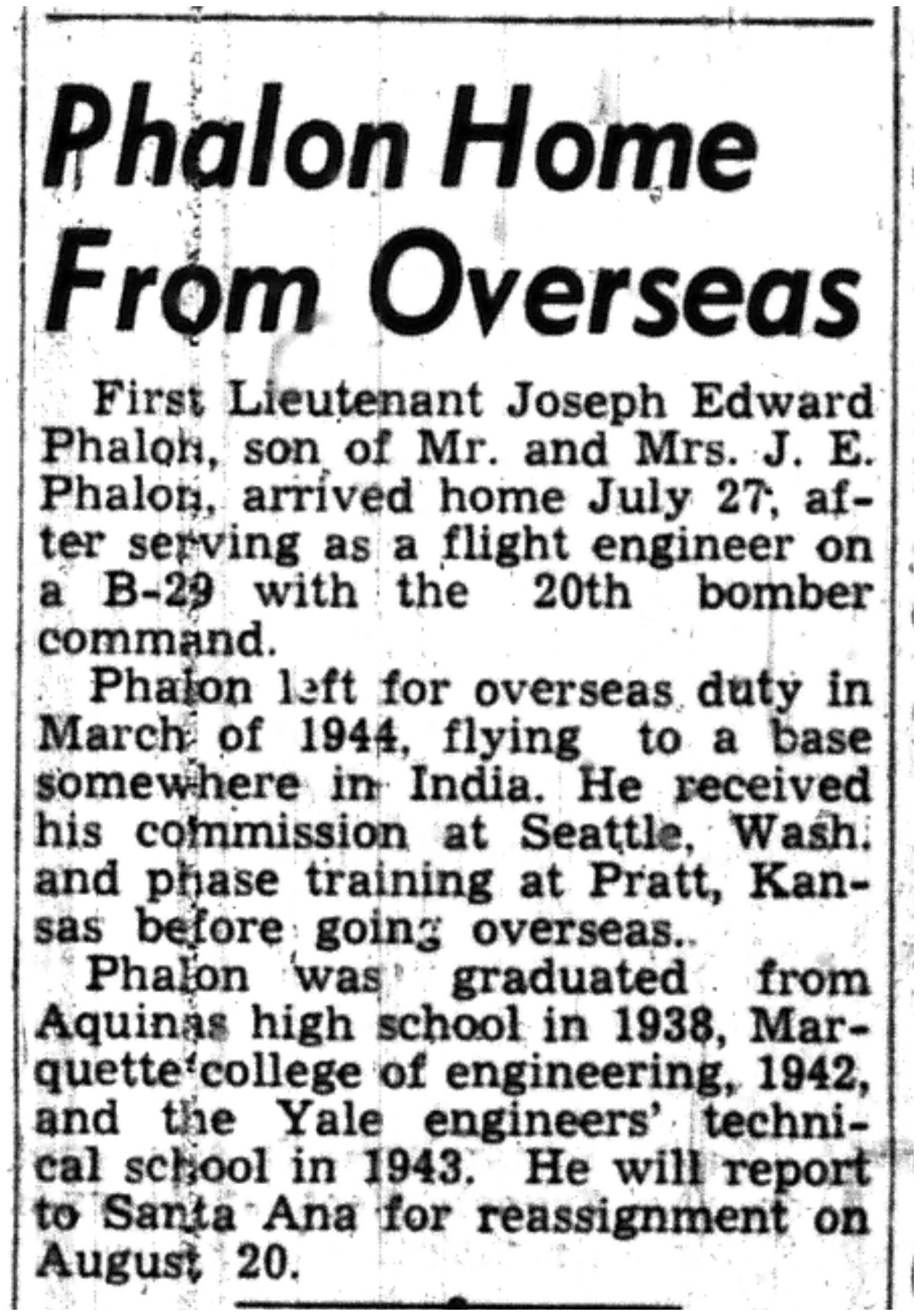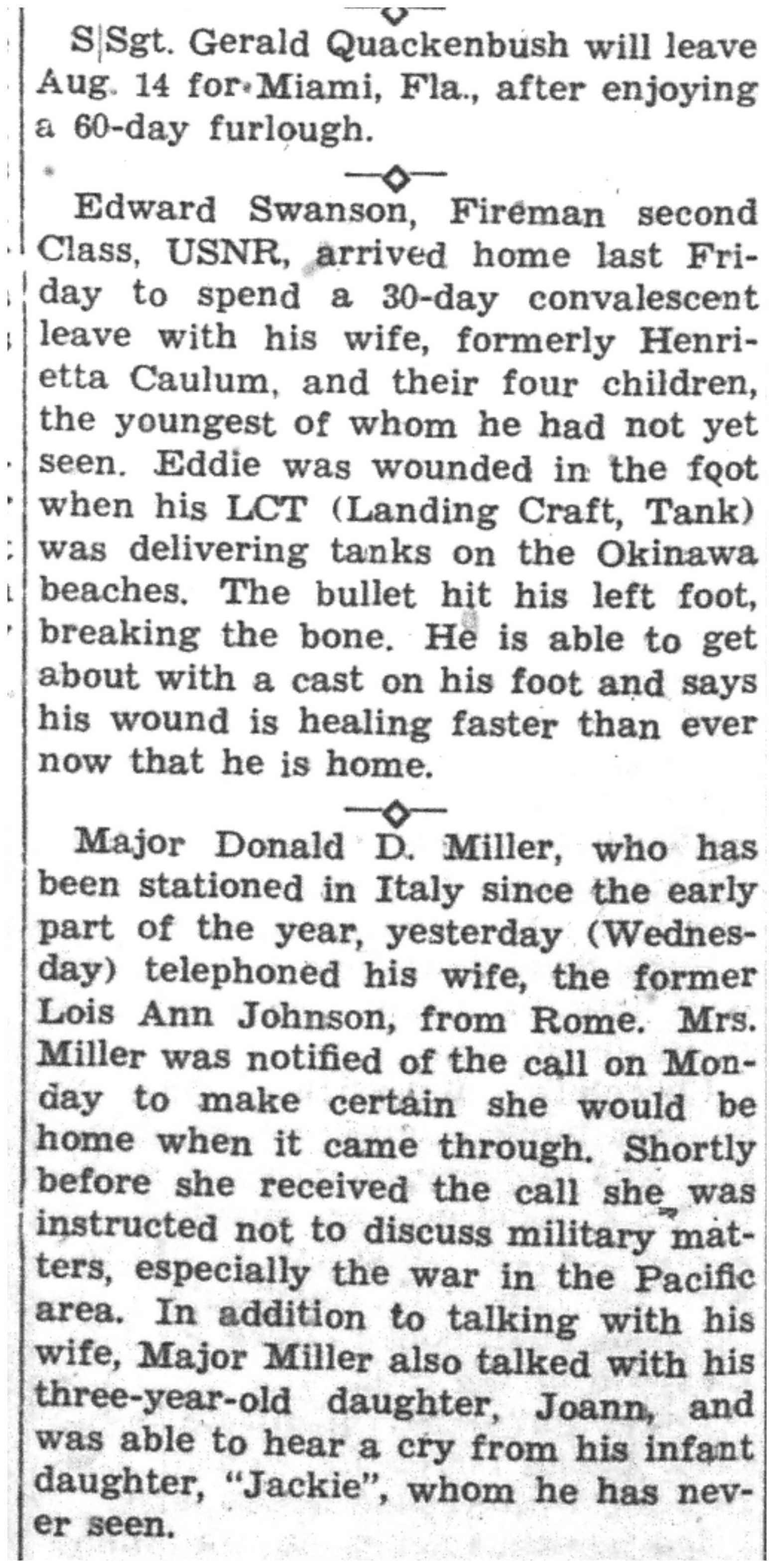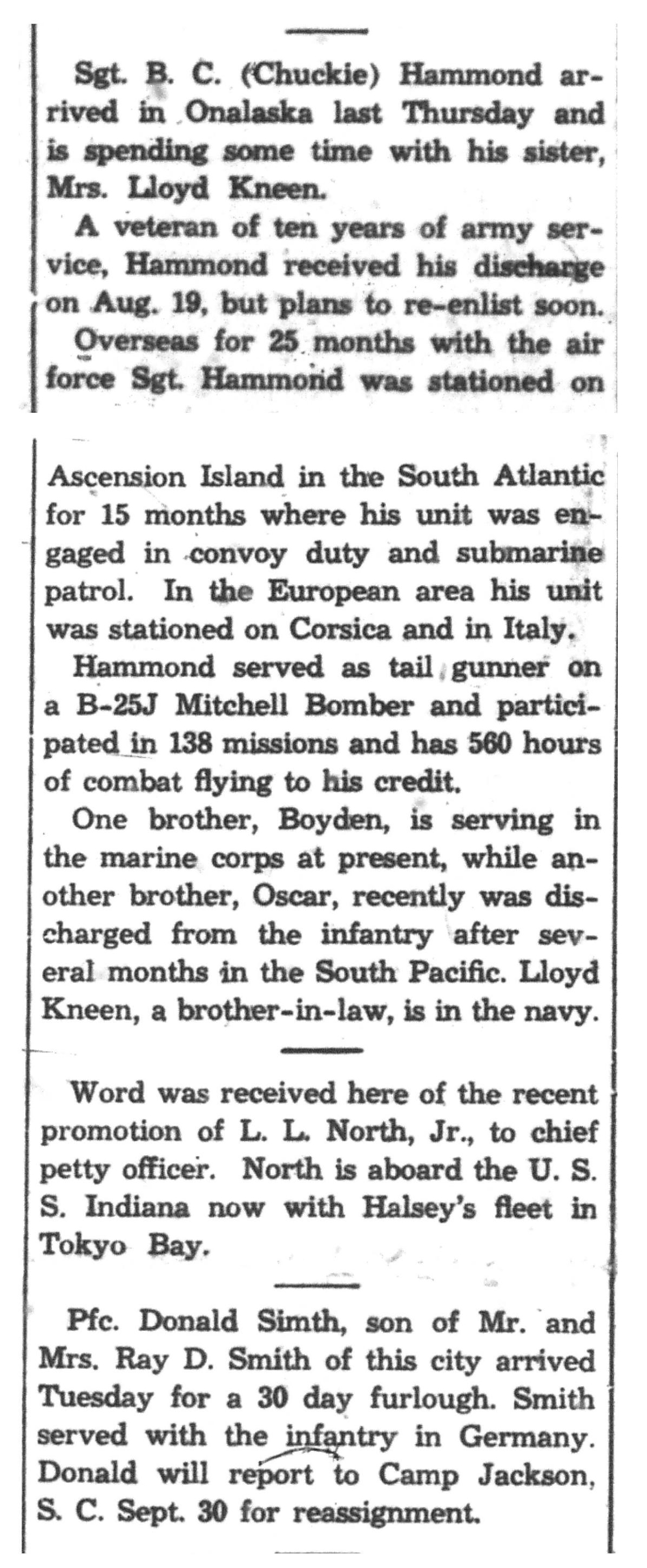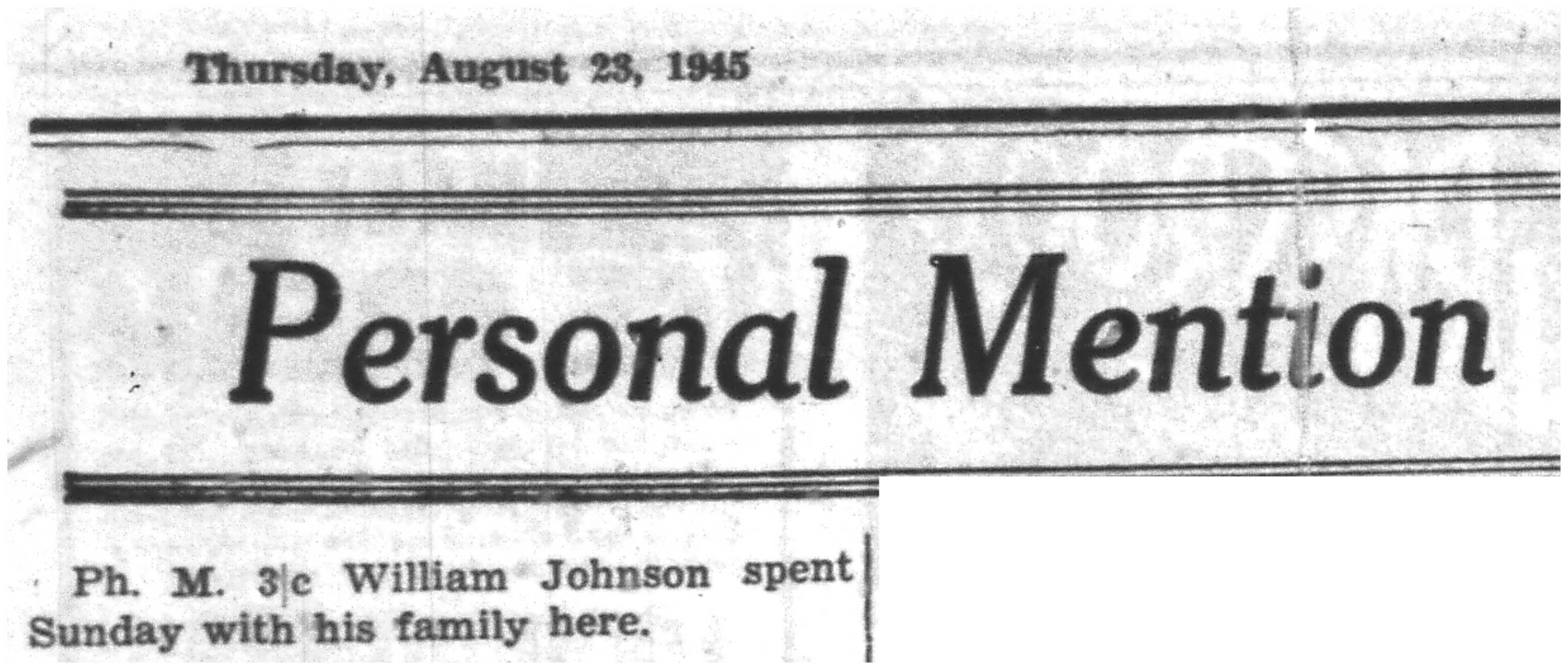 | 1945-8-30 | Non-Pareil Journal p5 | |