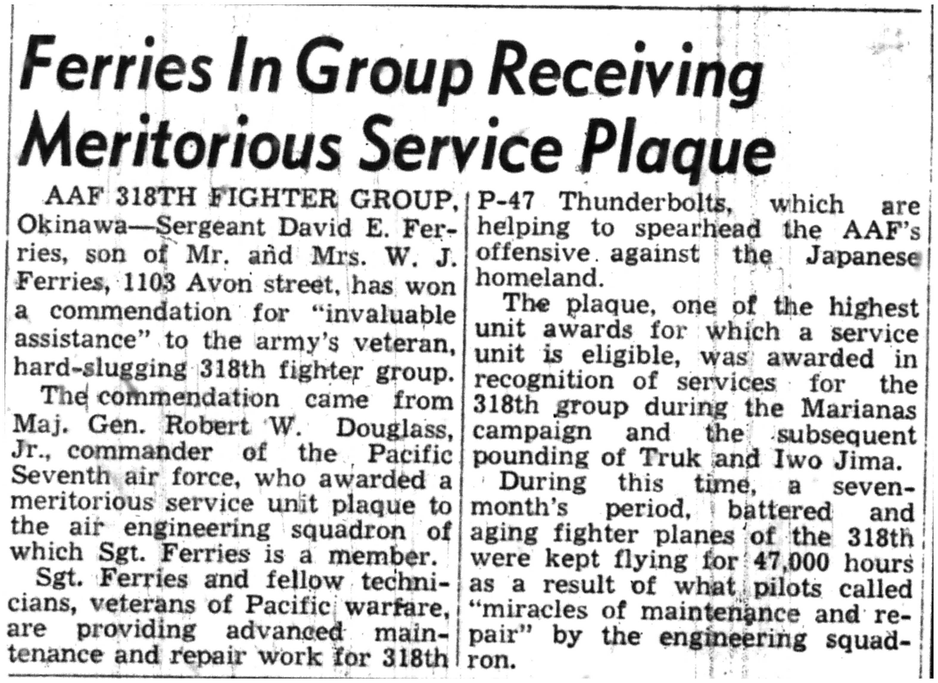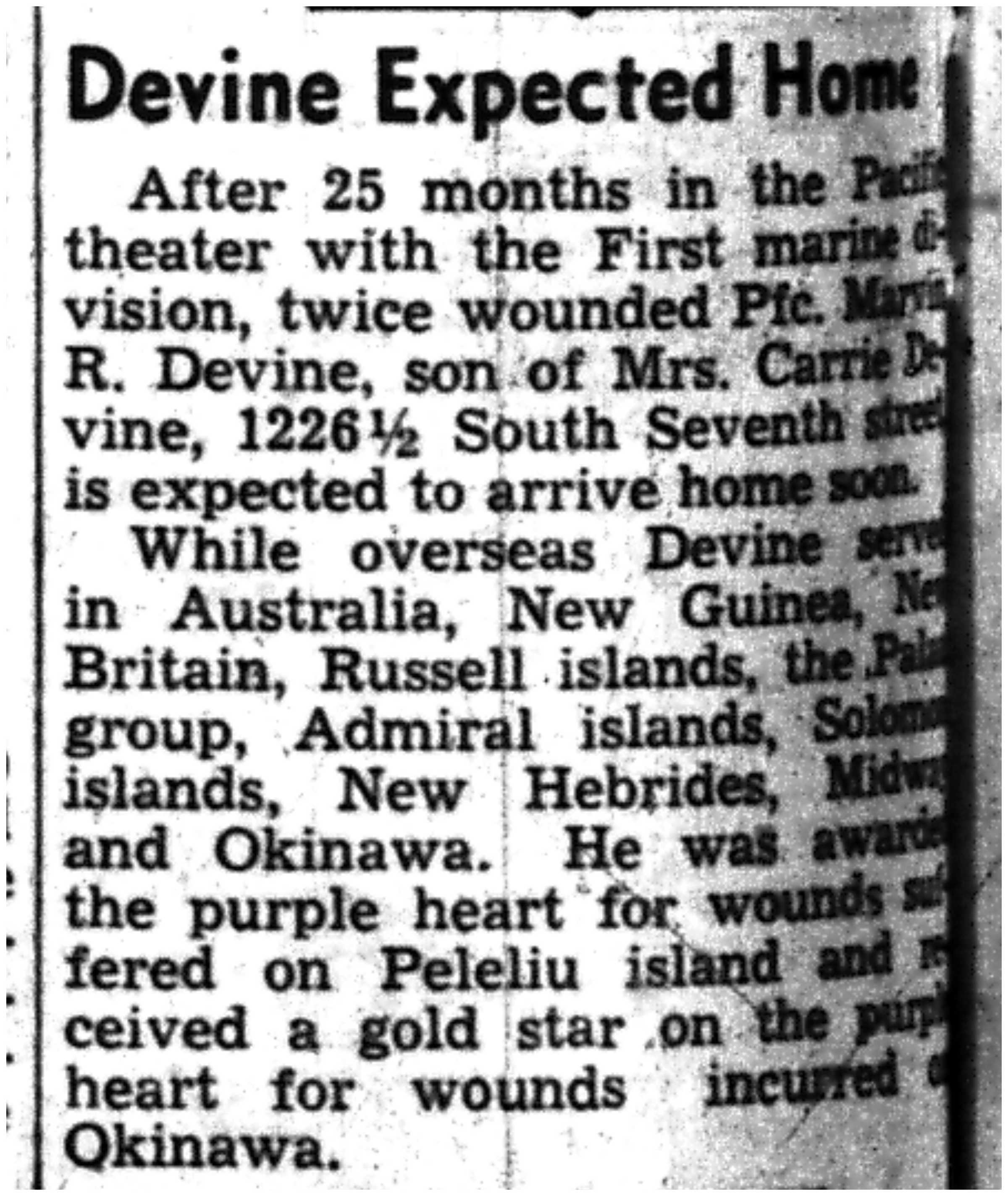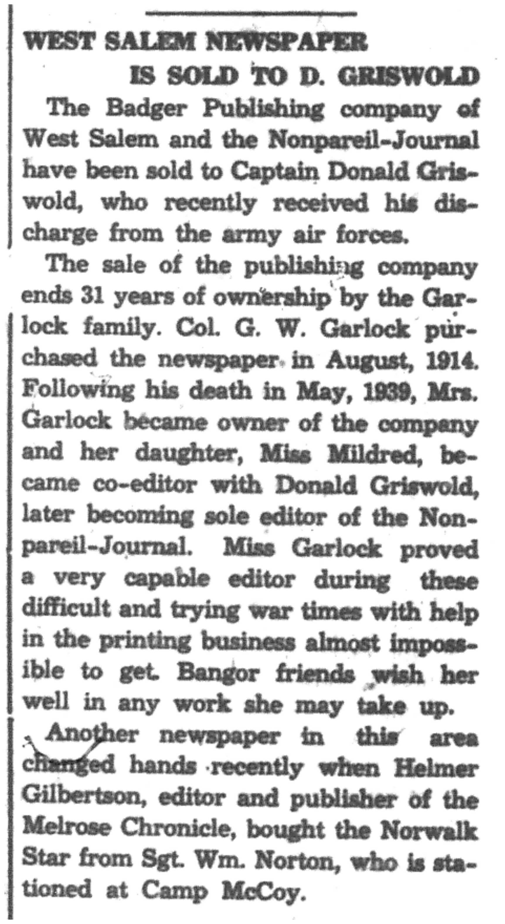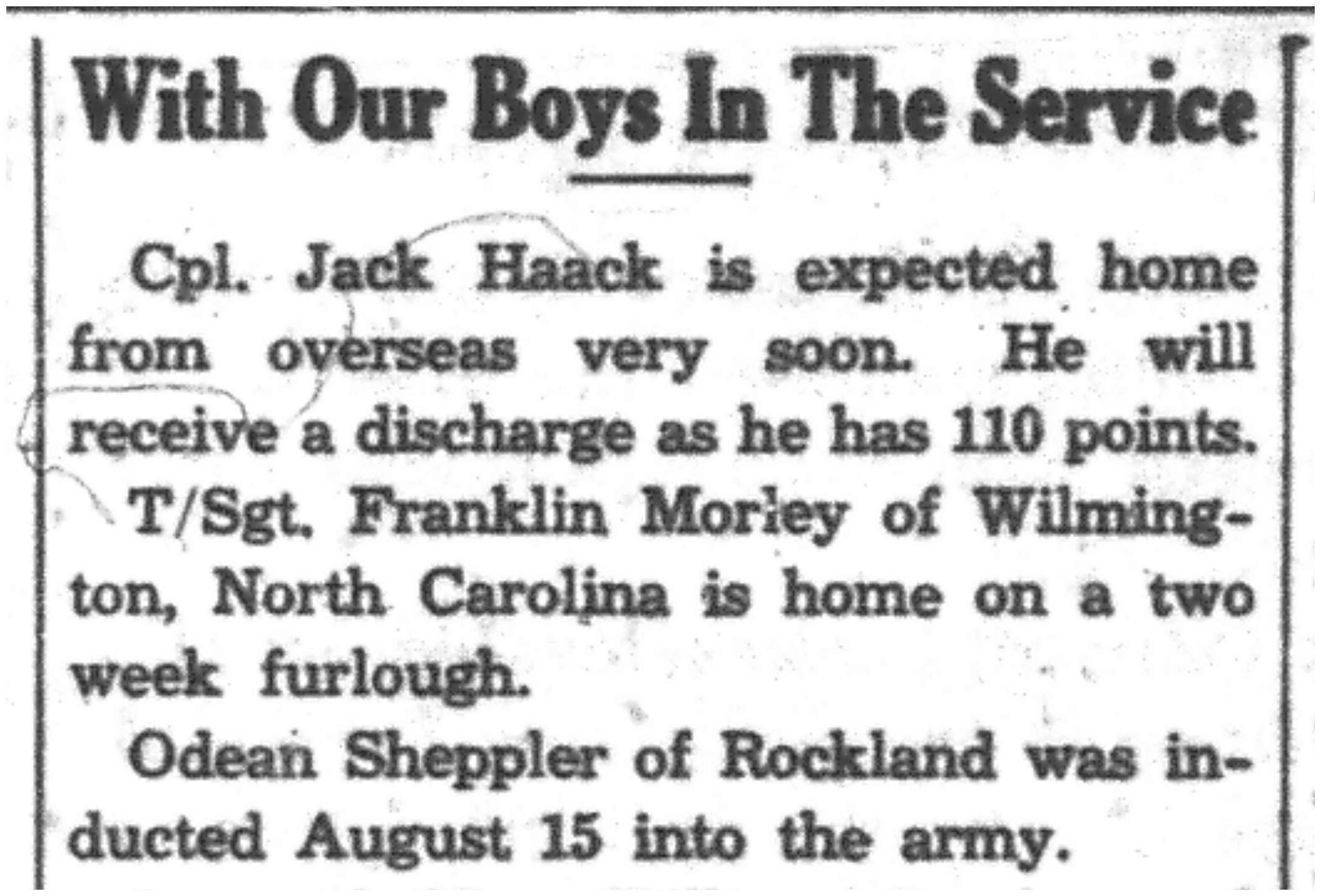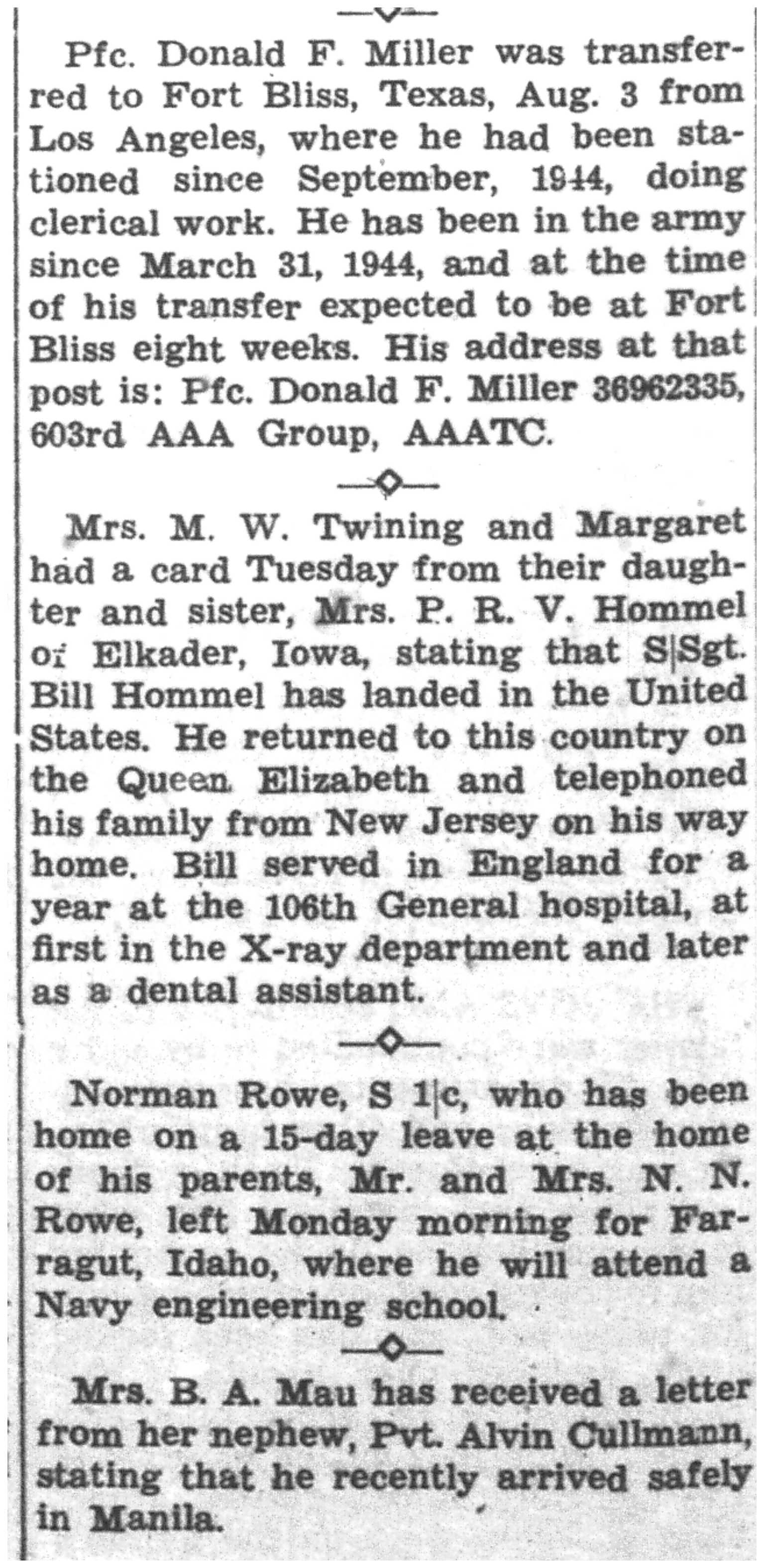 | 1945-8-30 | Non-Pareil Journal p5 | |