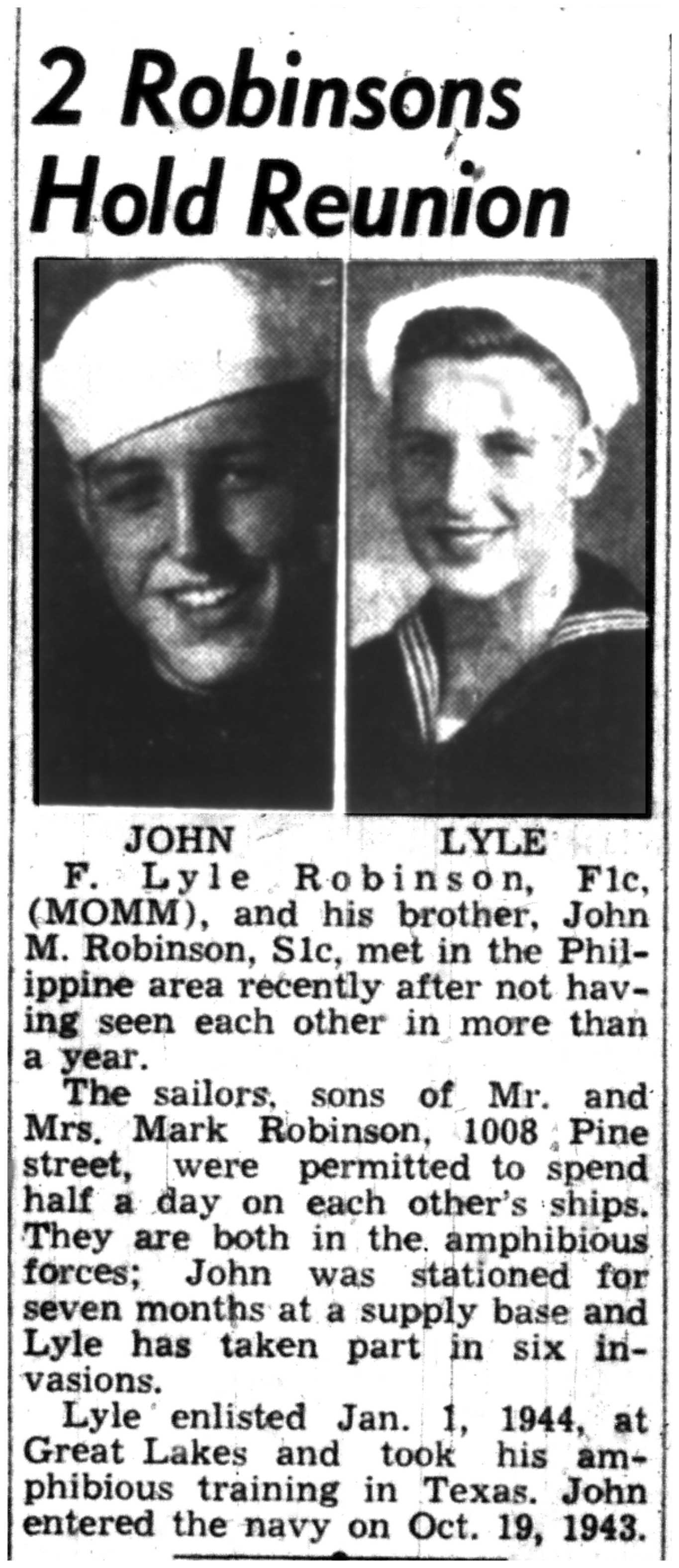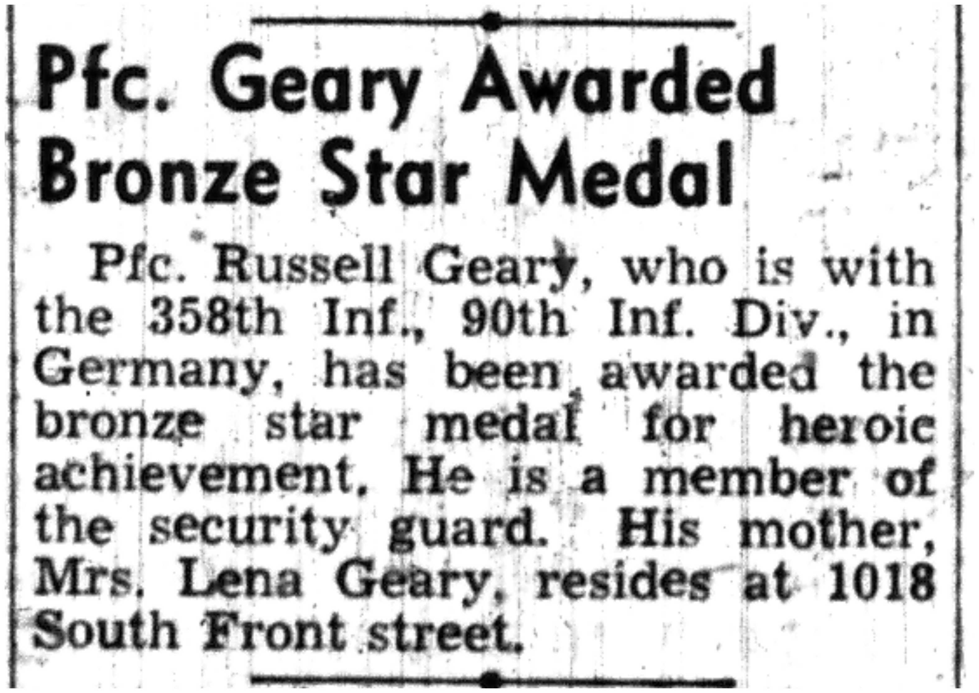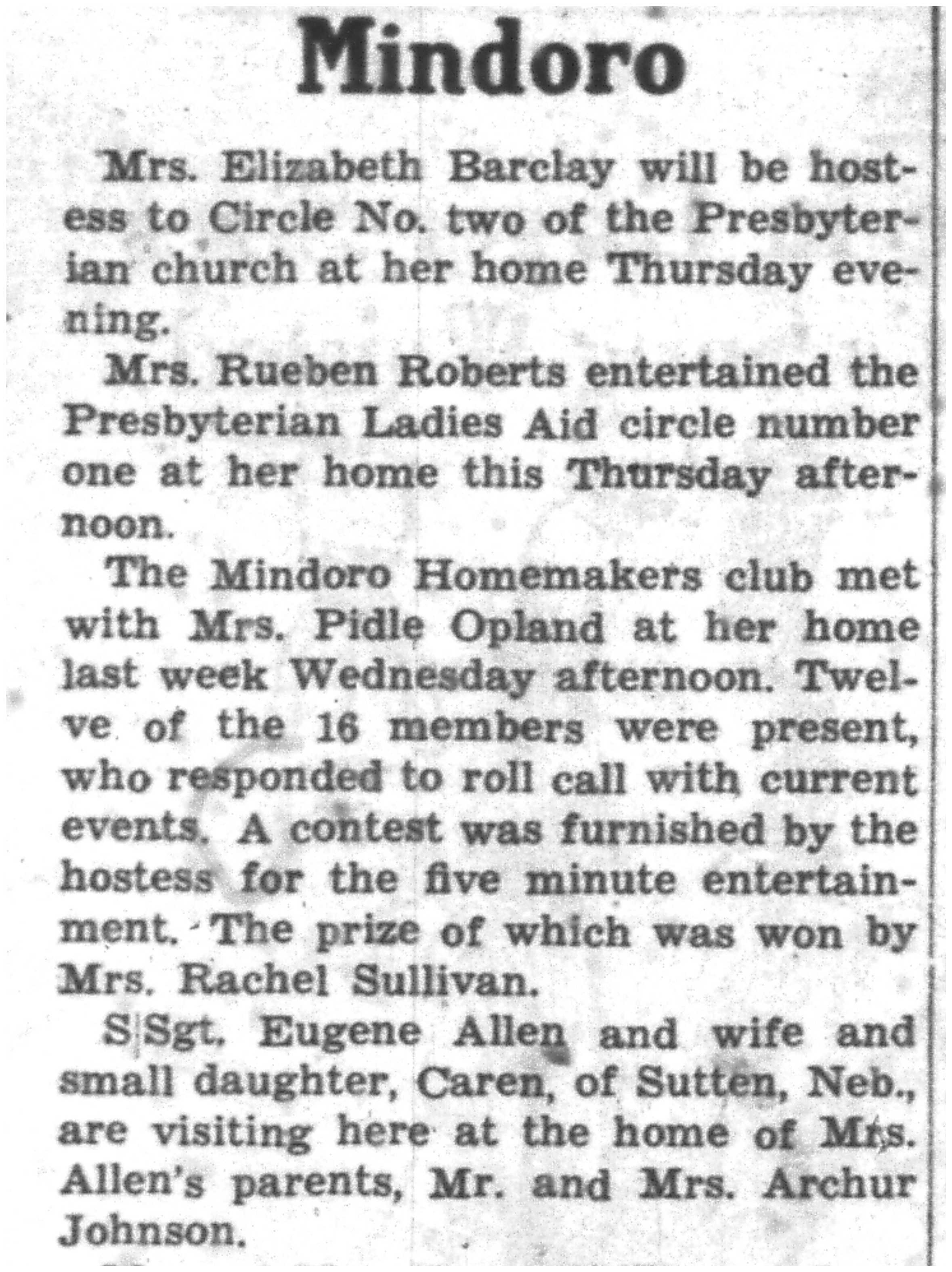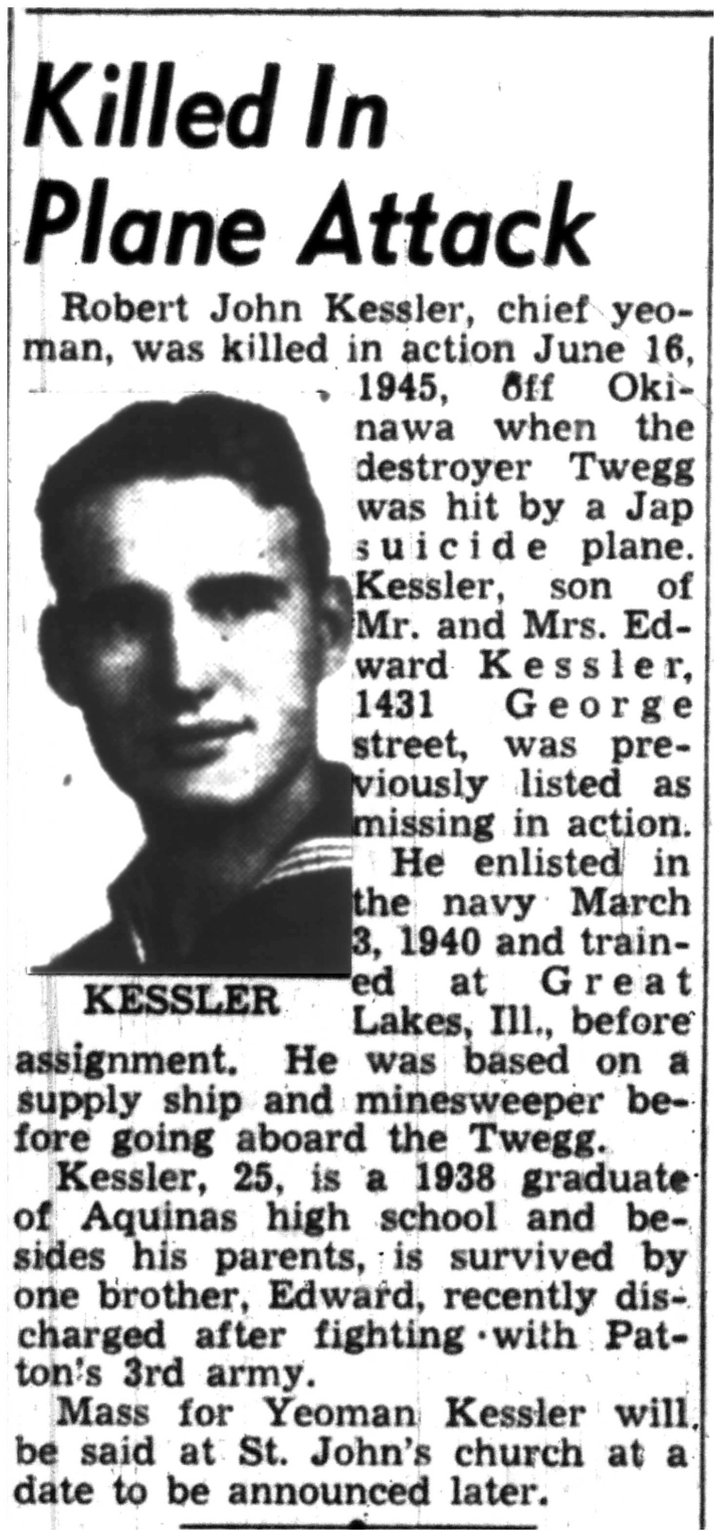 | 1945-8-30 | Non-Pareil Journal p5 | |