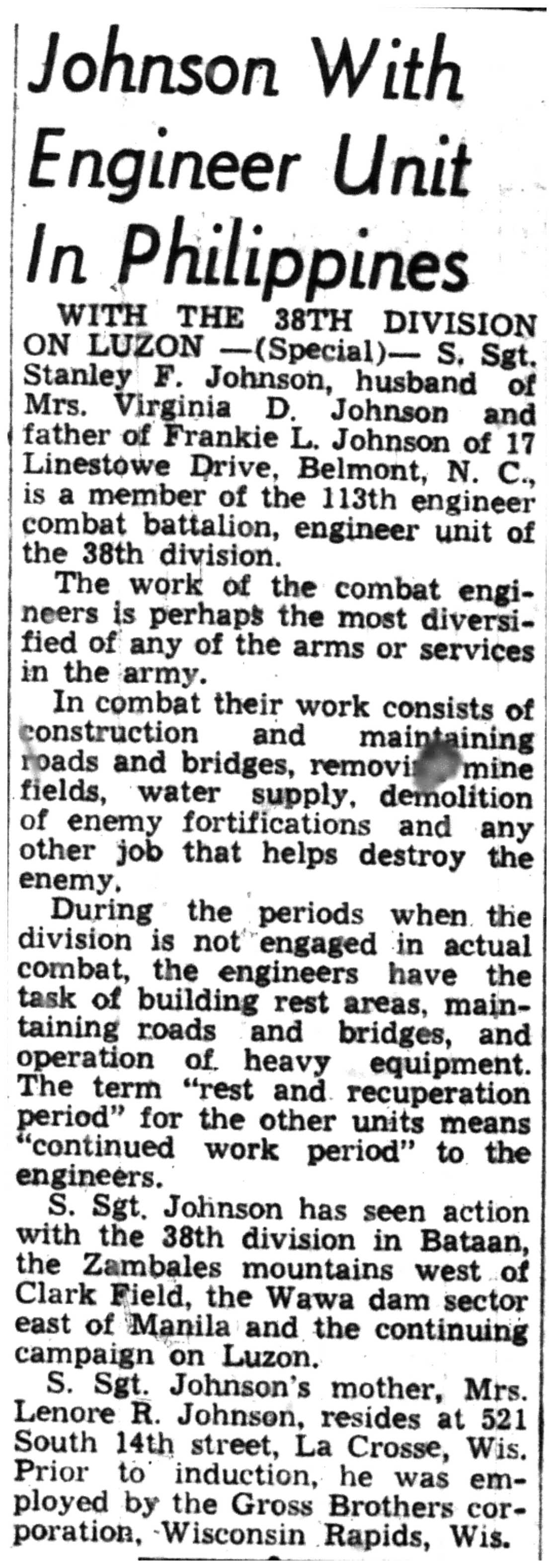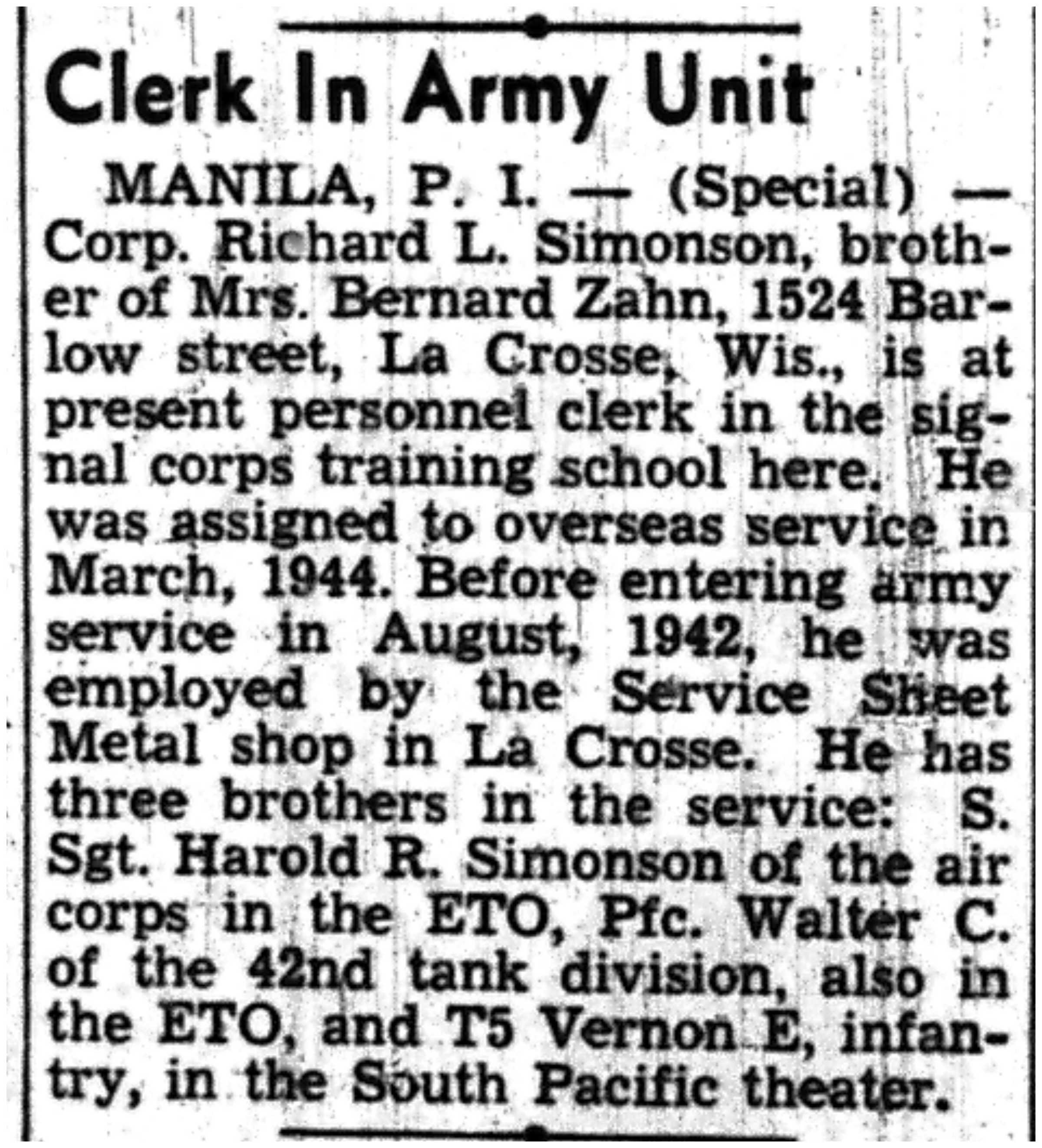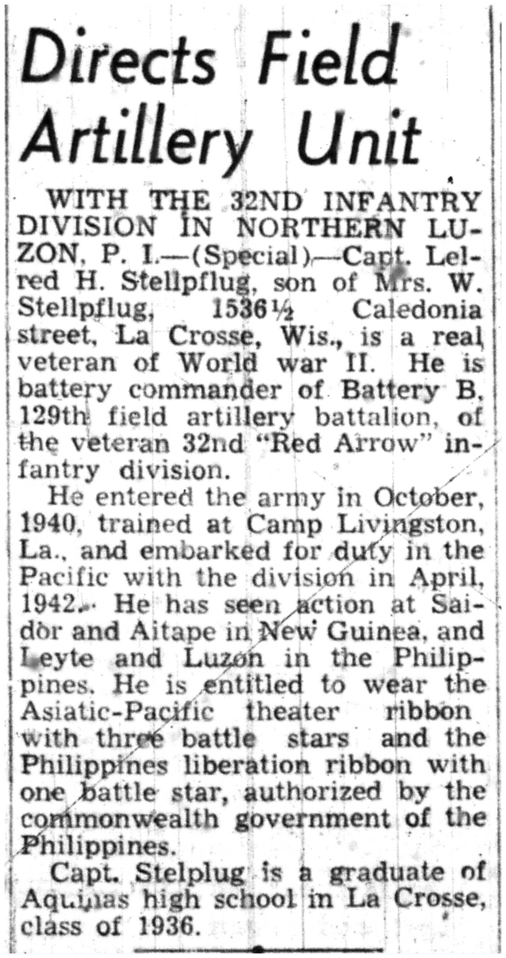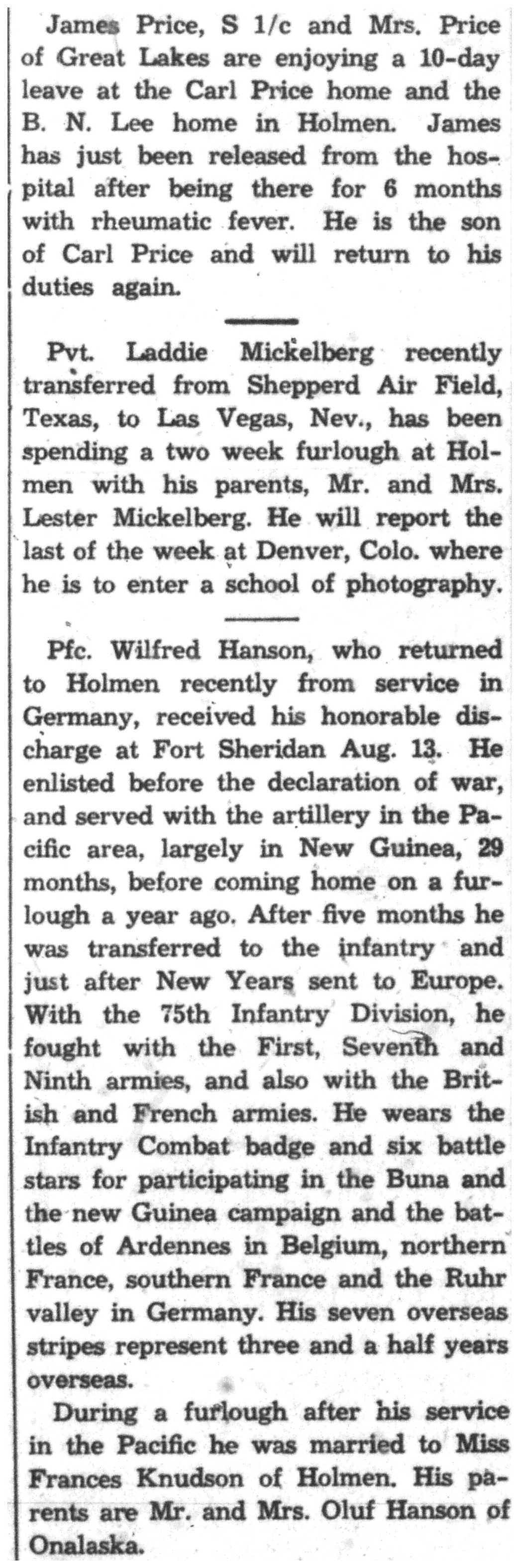 | 1945-8-2 | La Crosse Tribune p10 | |