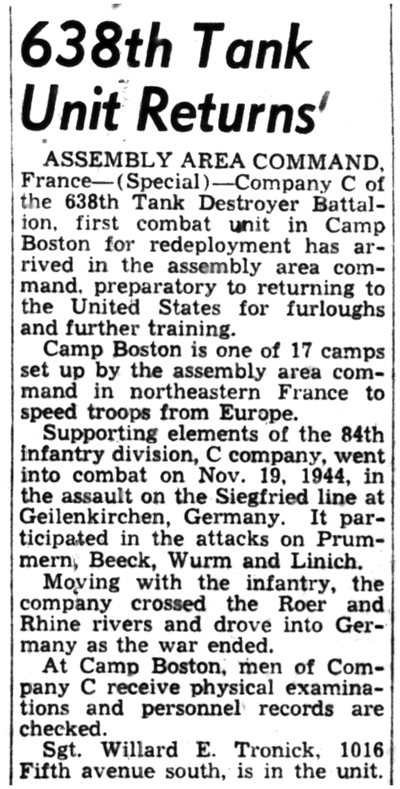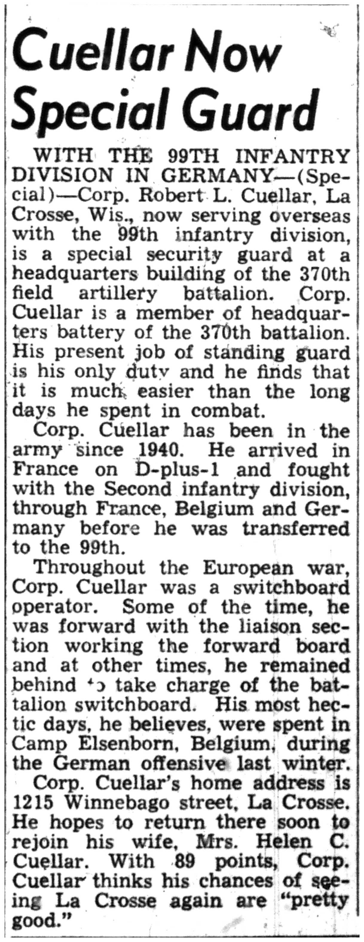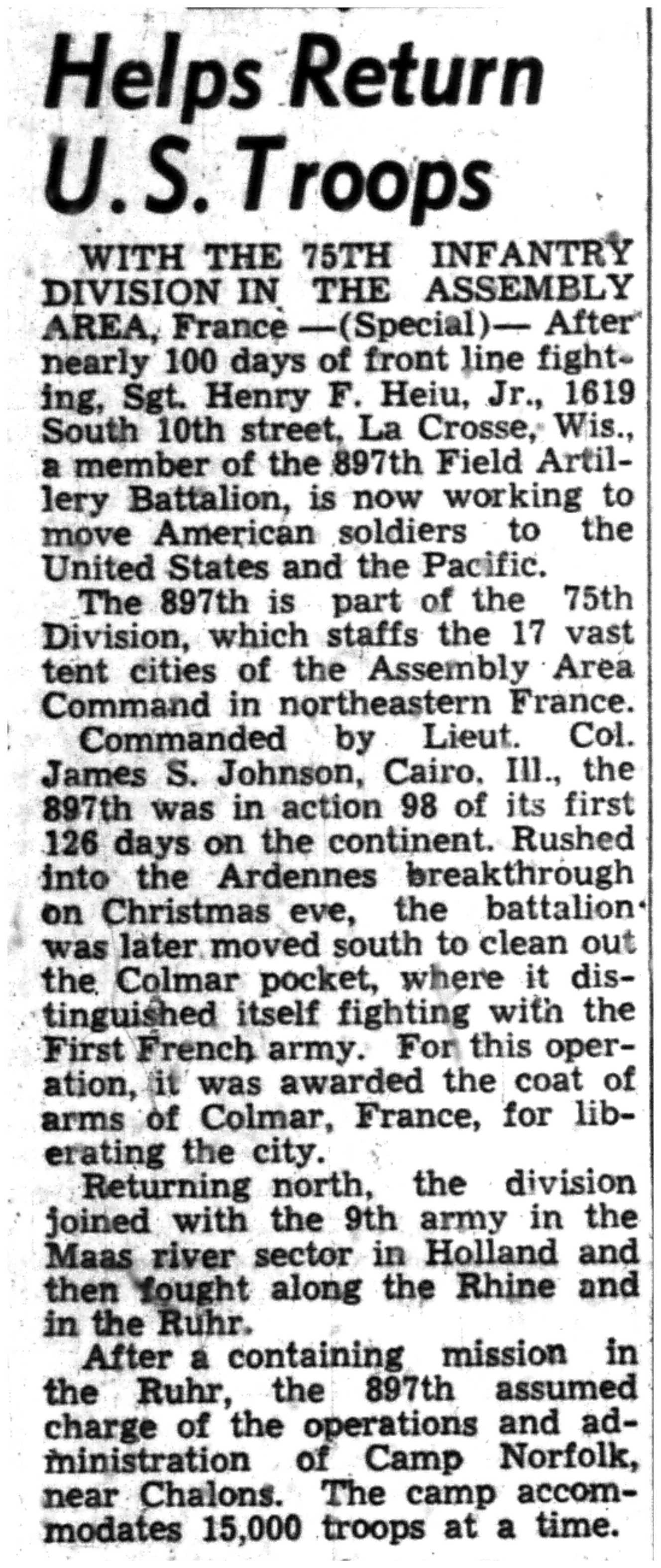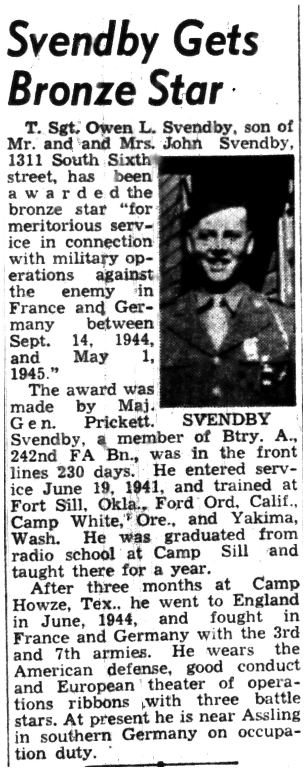 | 1945-8-2 | La Crosse Tribune p10 | |