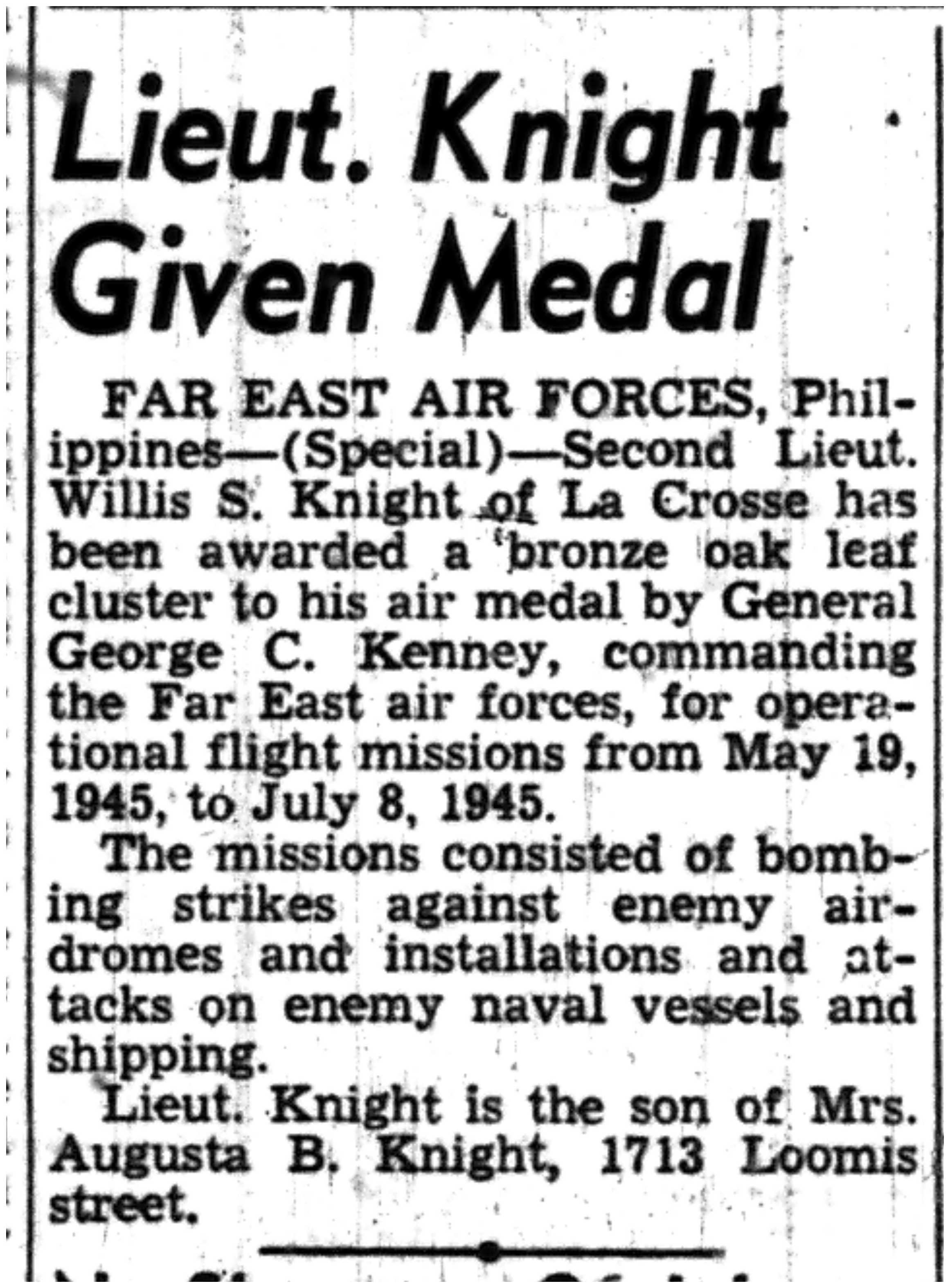 | 1945-8-22 | La Crosse Tribune p12 | |