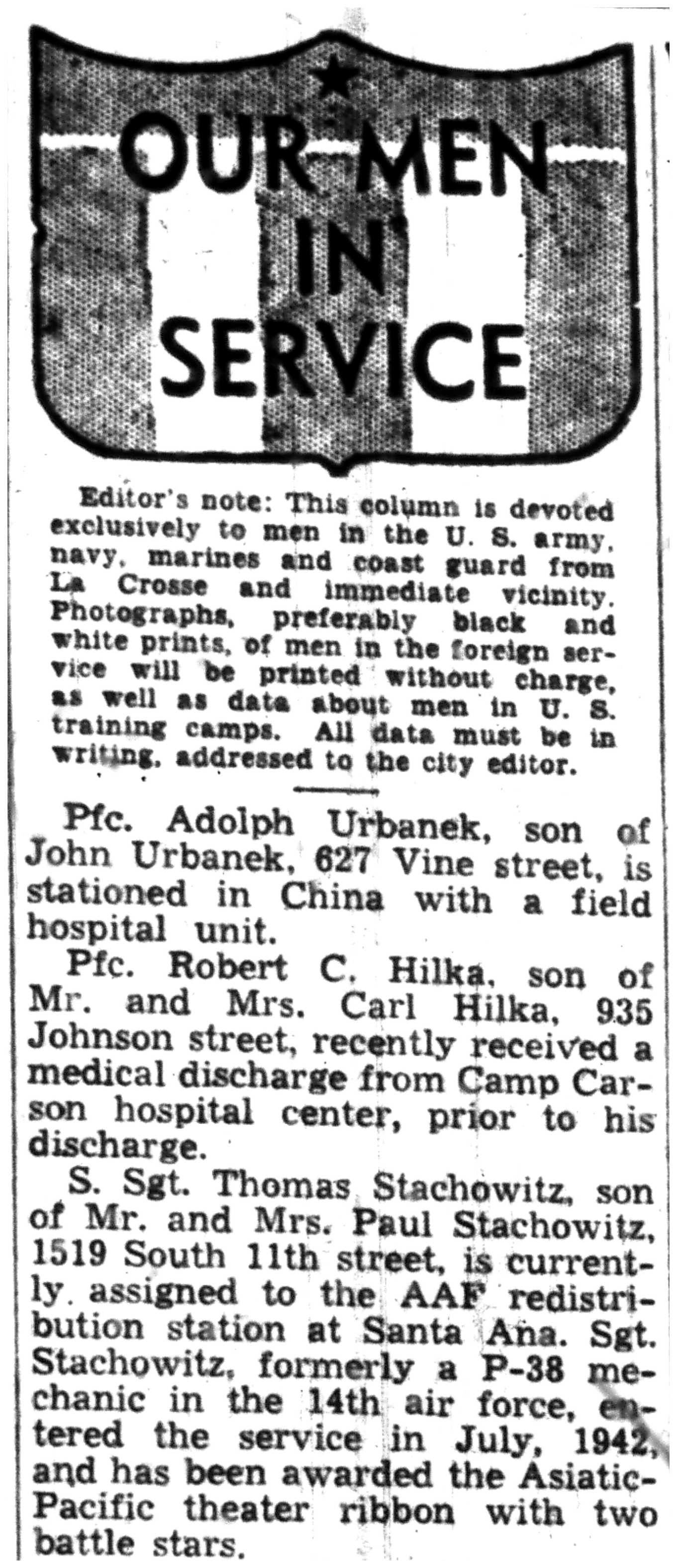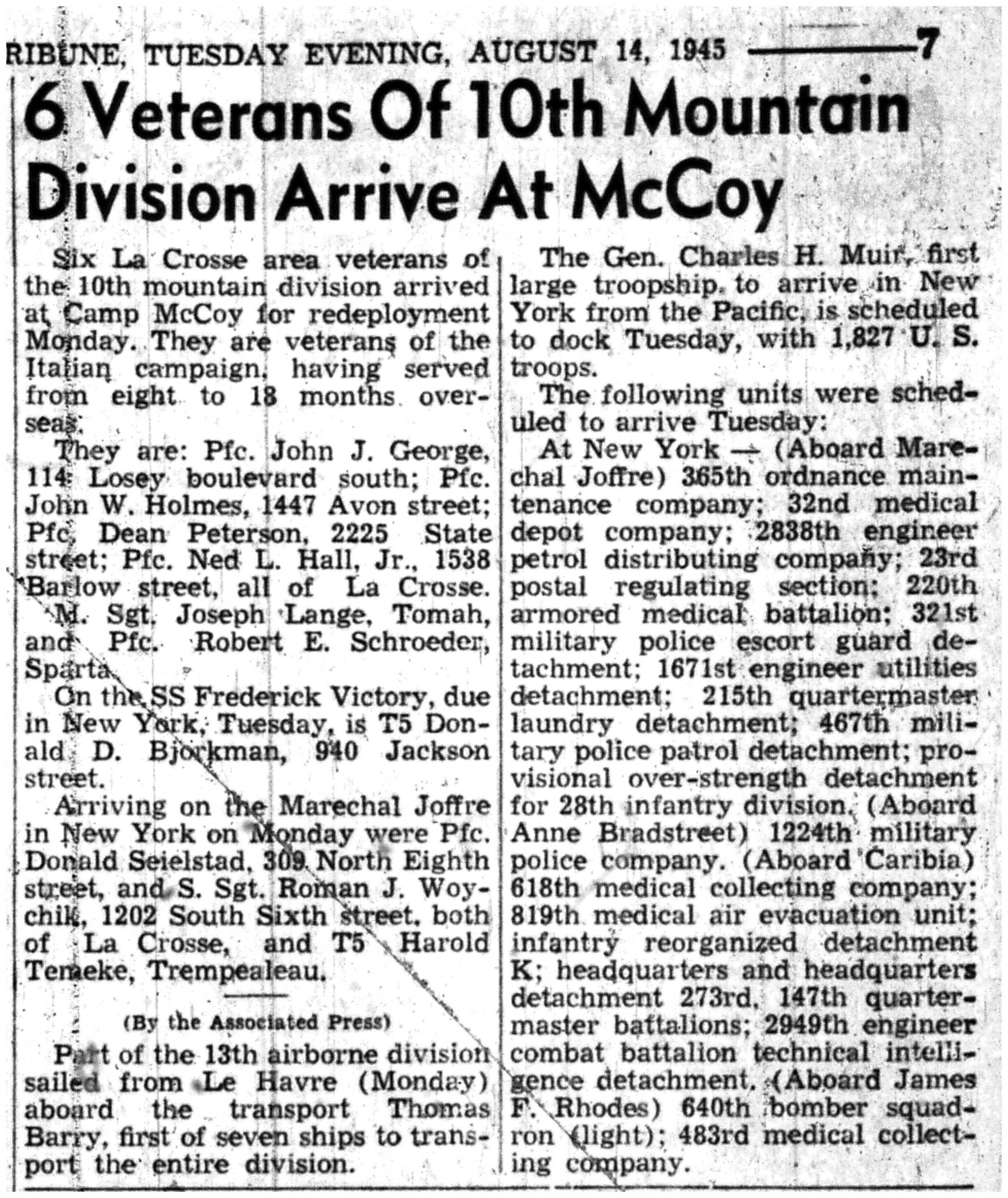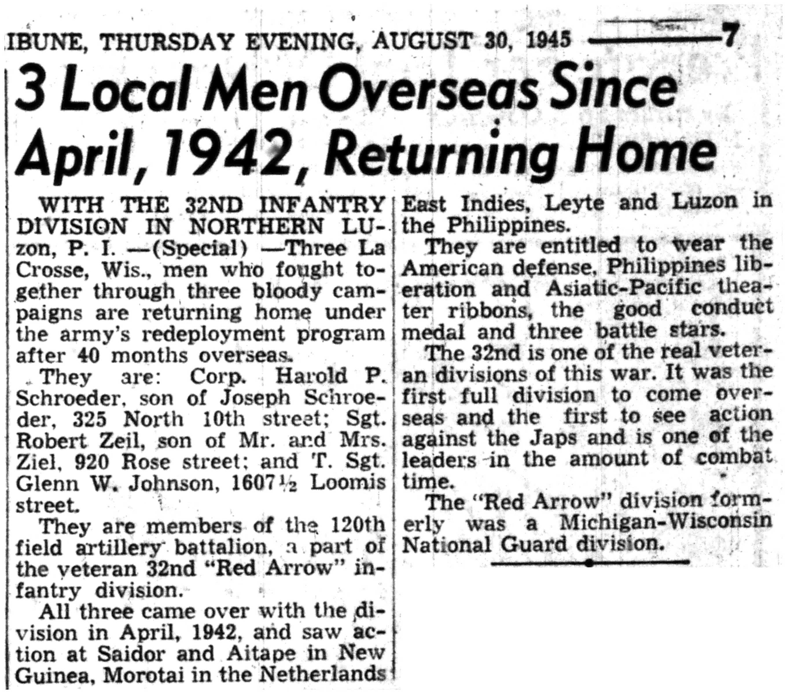 | 1945-8-1 | La Crosse Tribune p7 | |