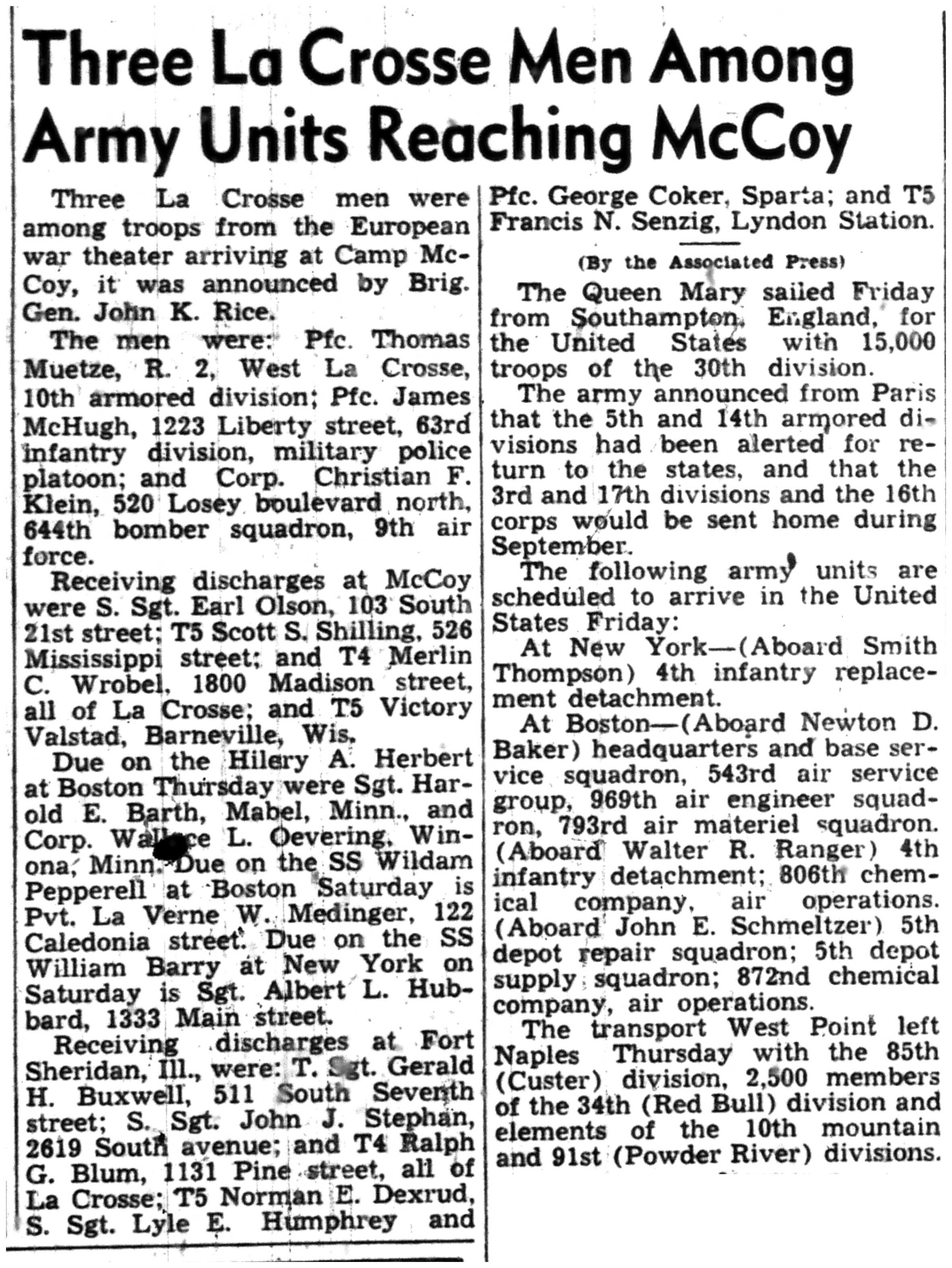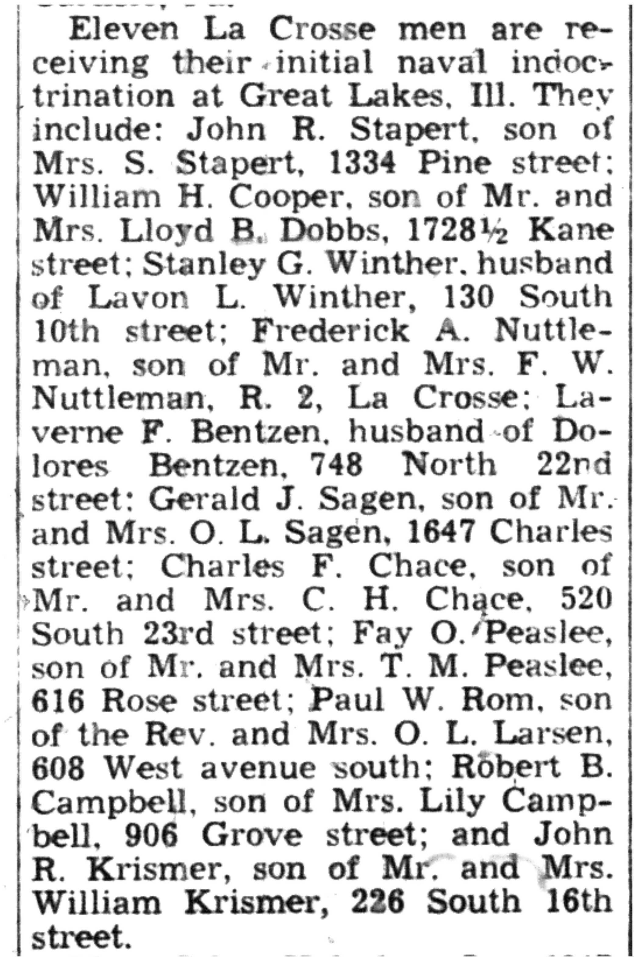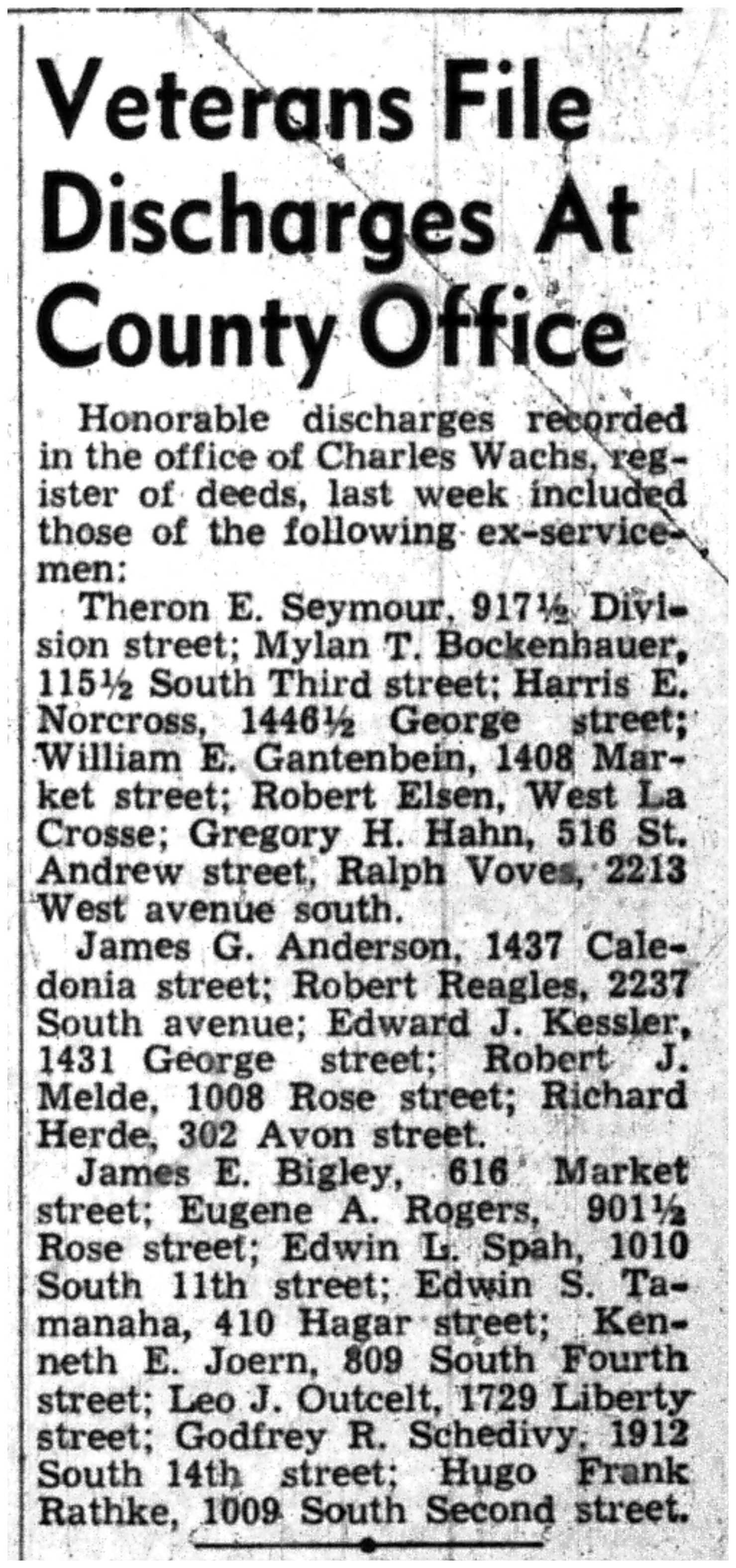 | 1945-8-30 | La Crosse Tribune p15 |