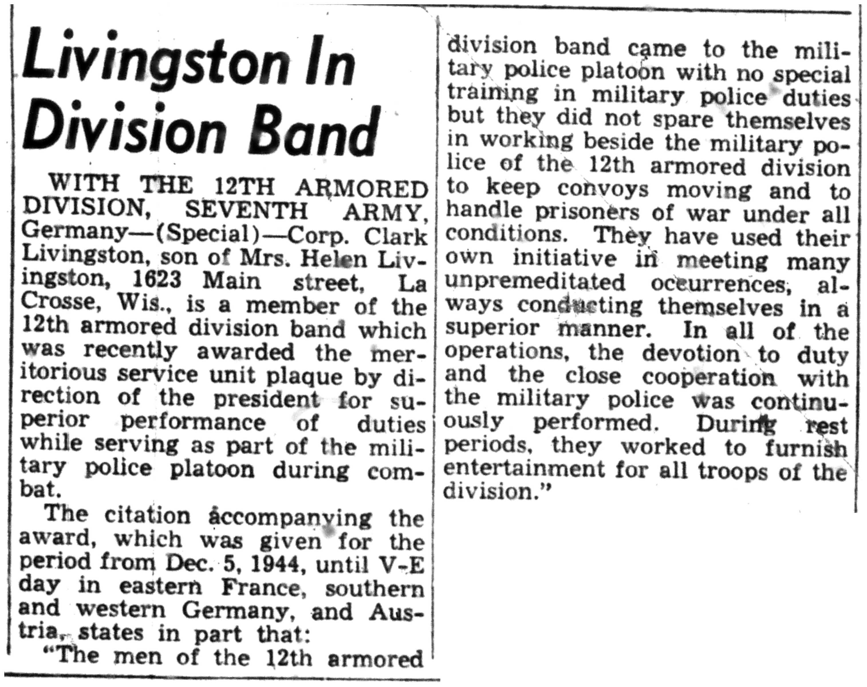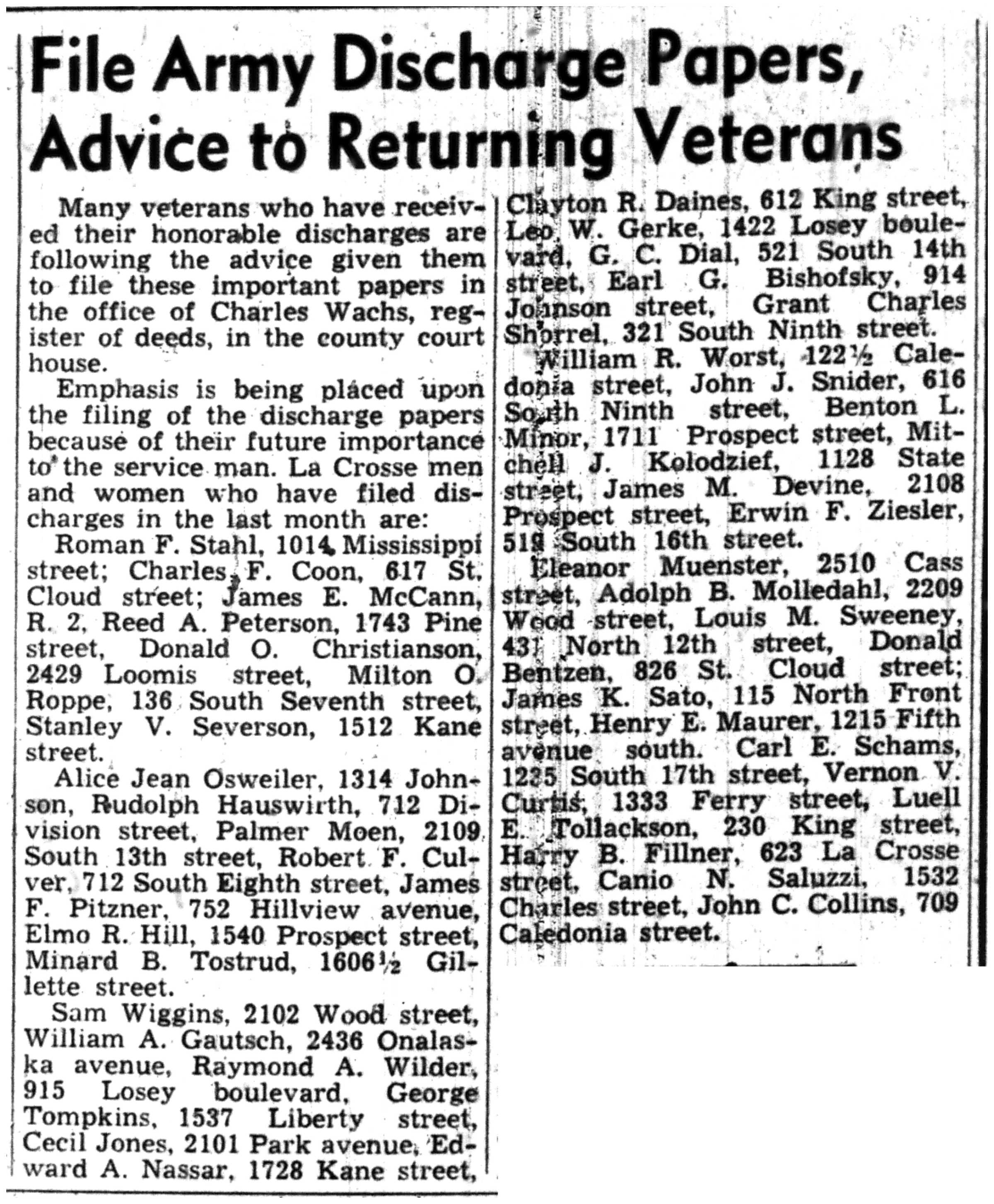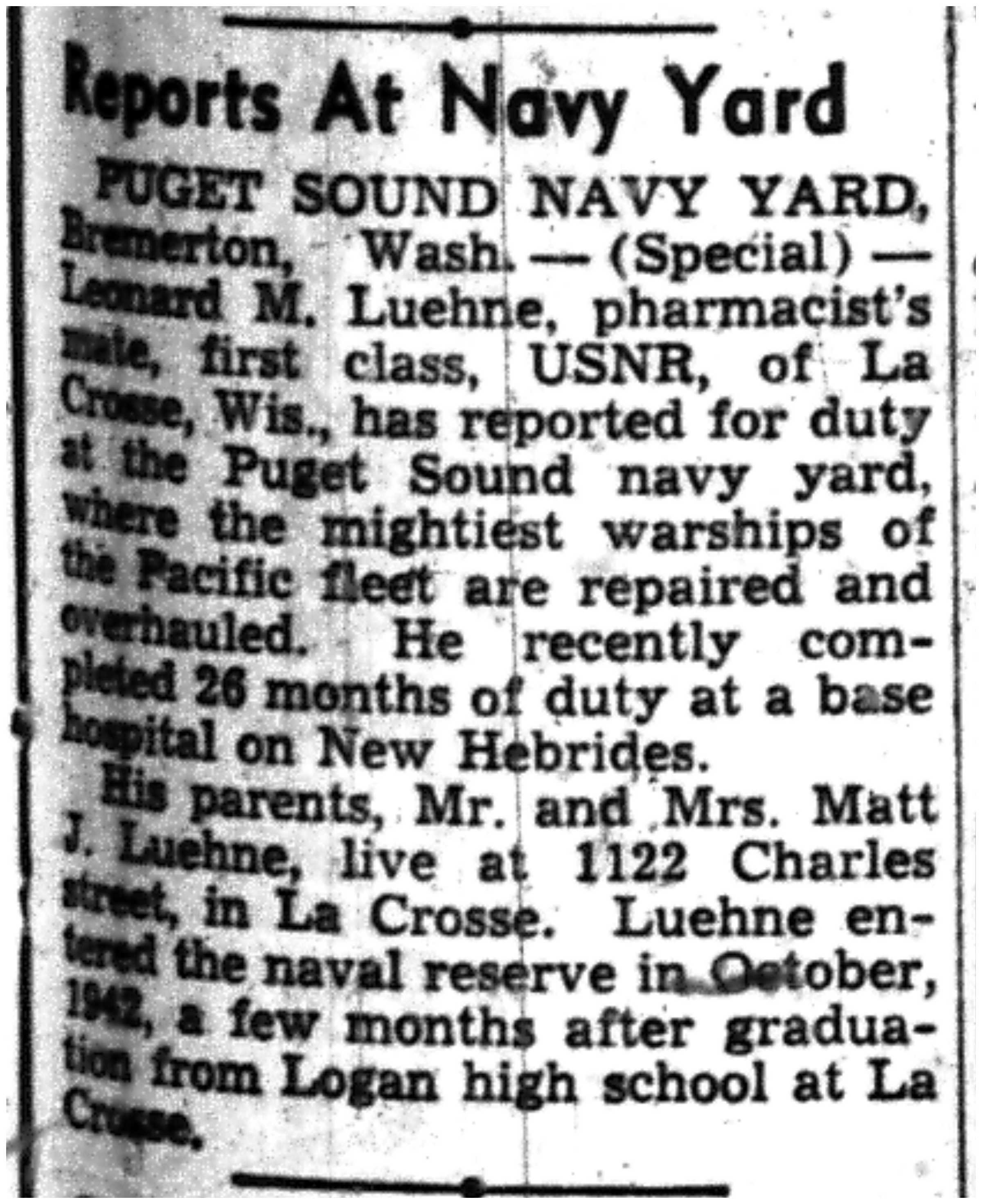 | 1945-8-30 | La Crosse Tribune p15 |