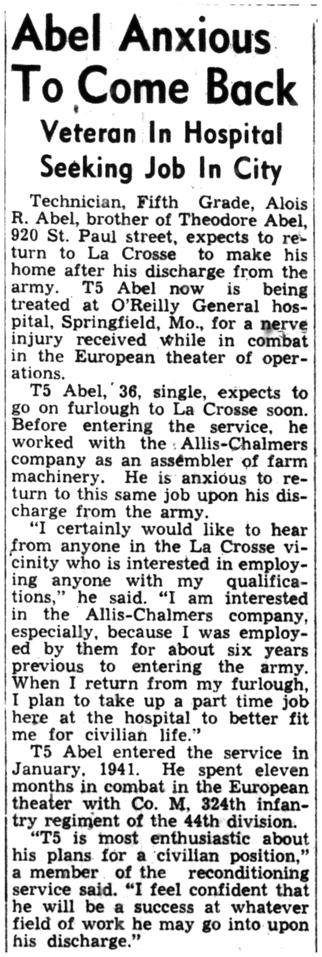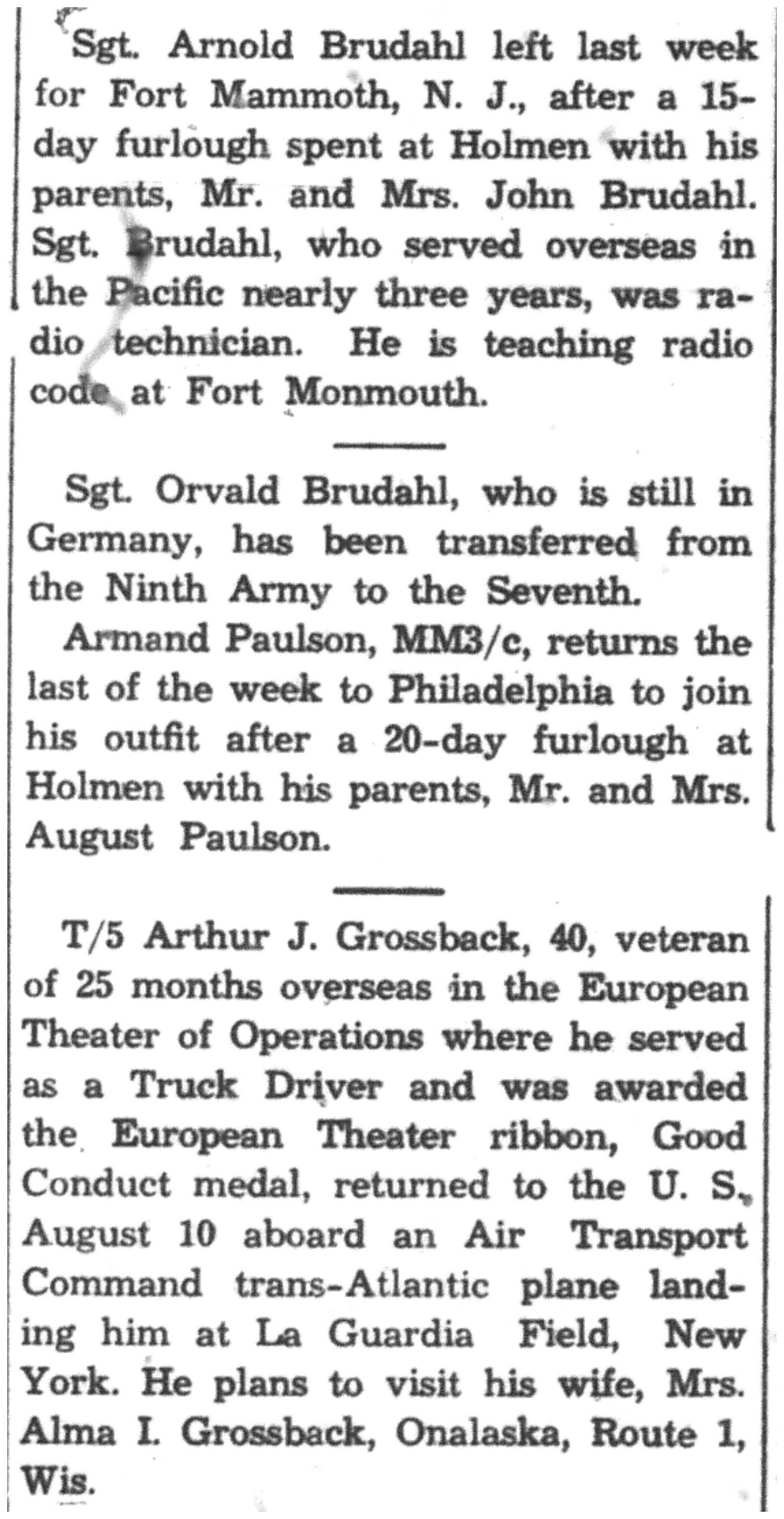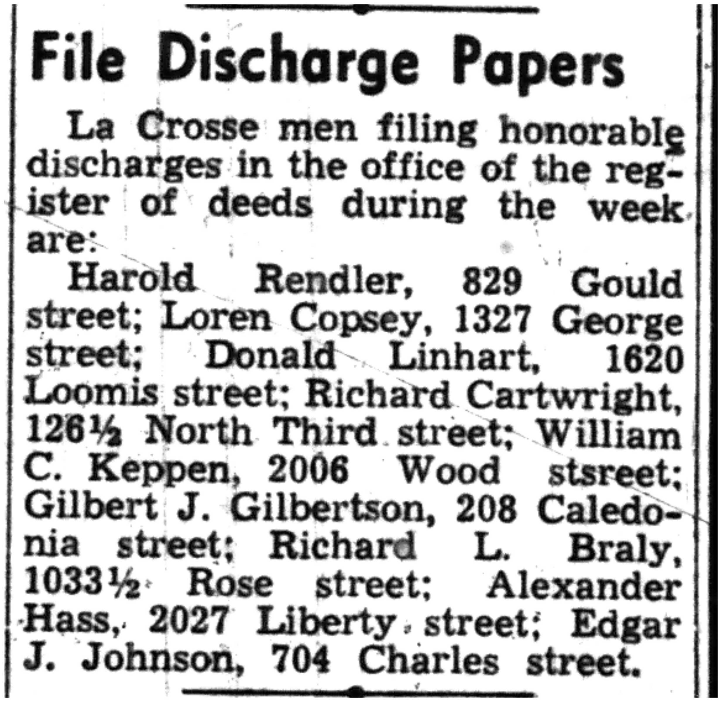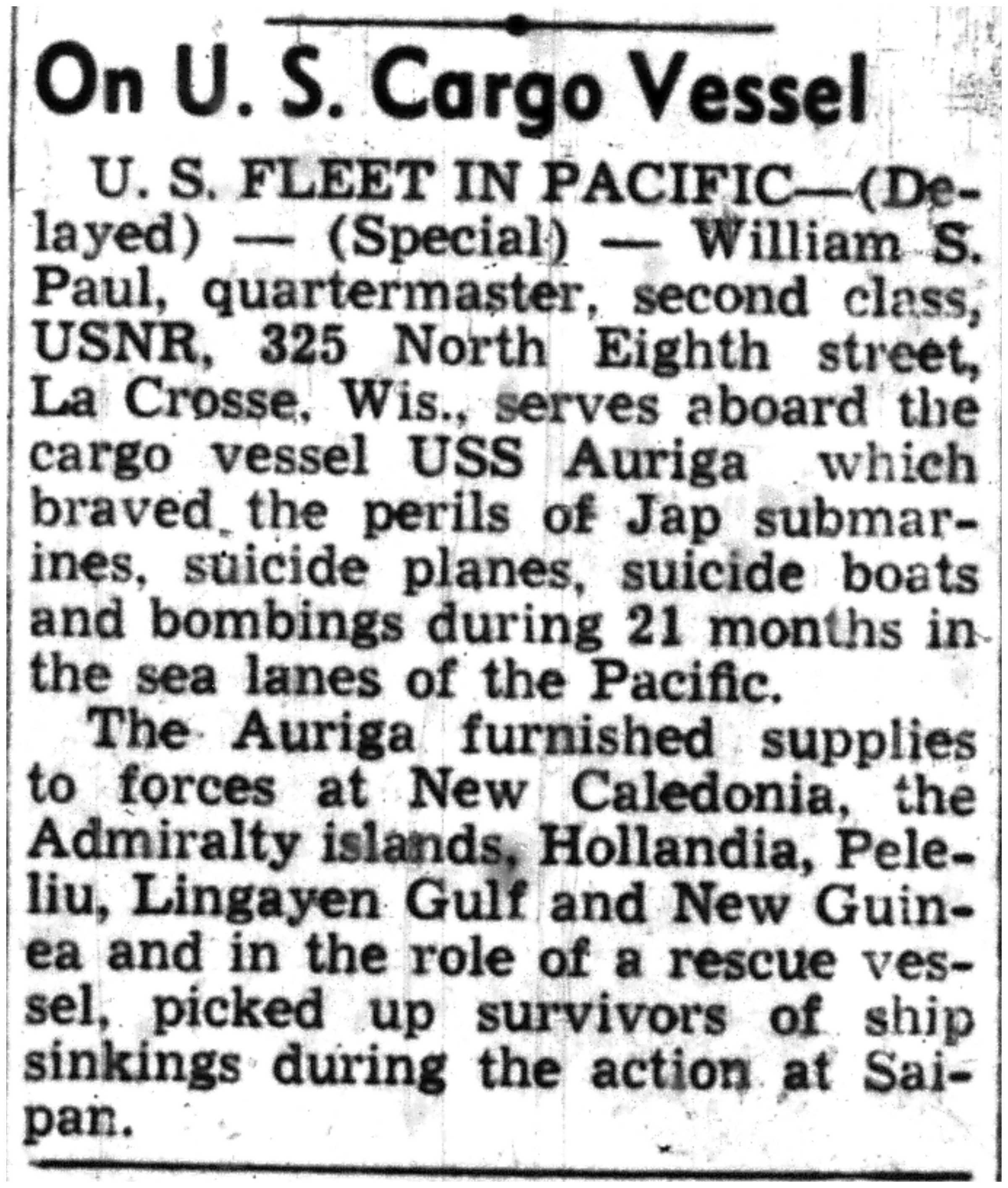 | 1945-8-4 | La Crosse Tribune p7 | |