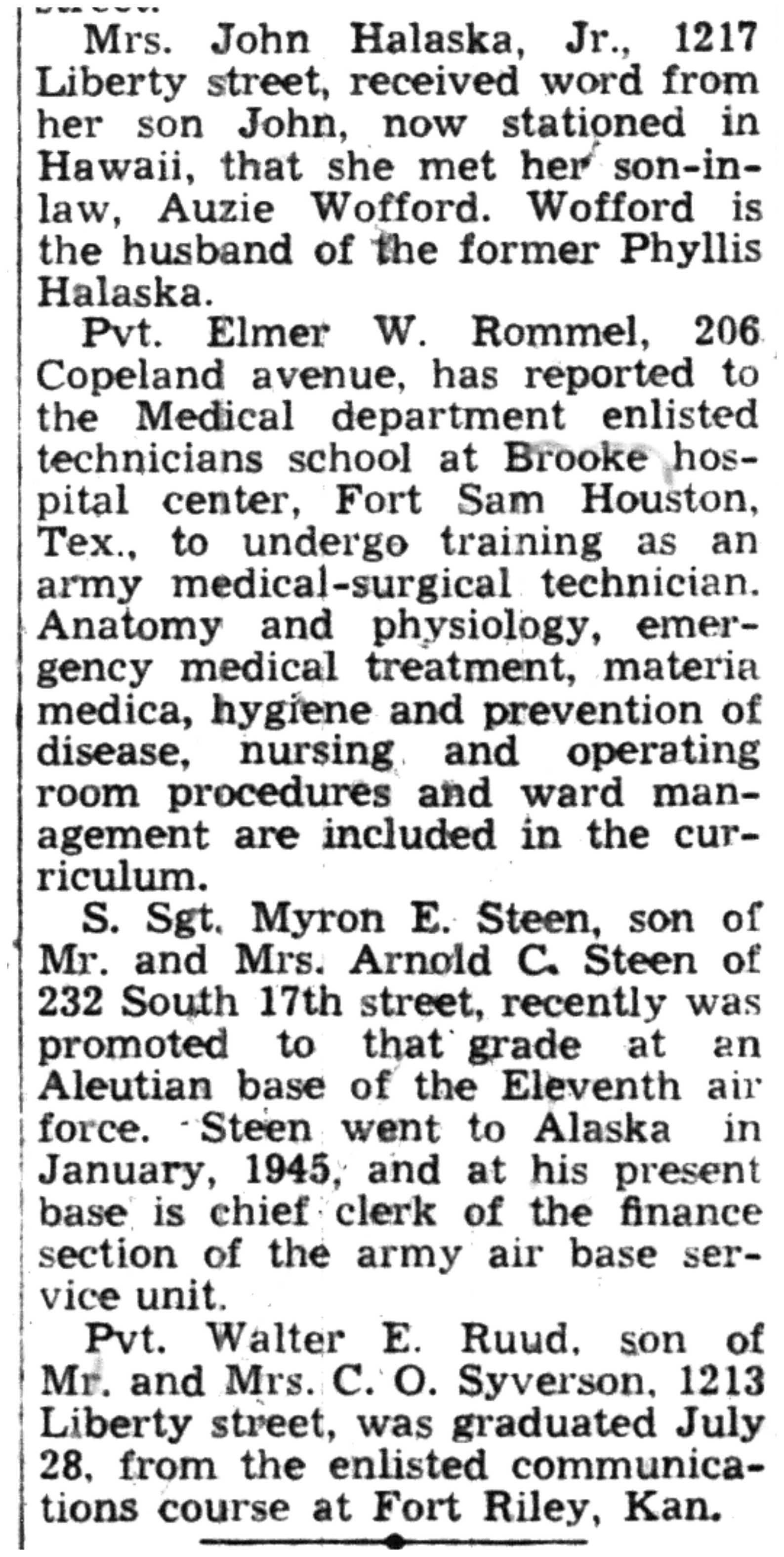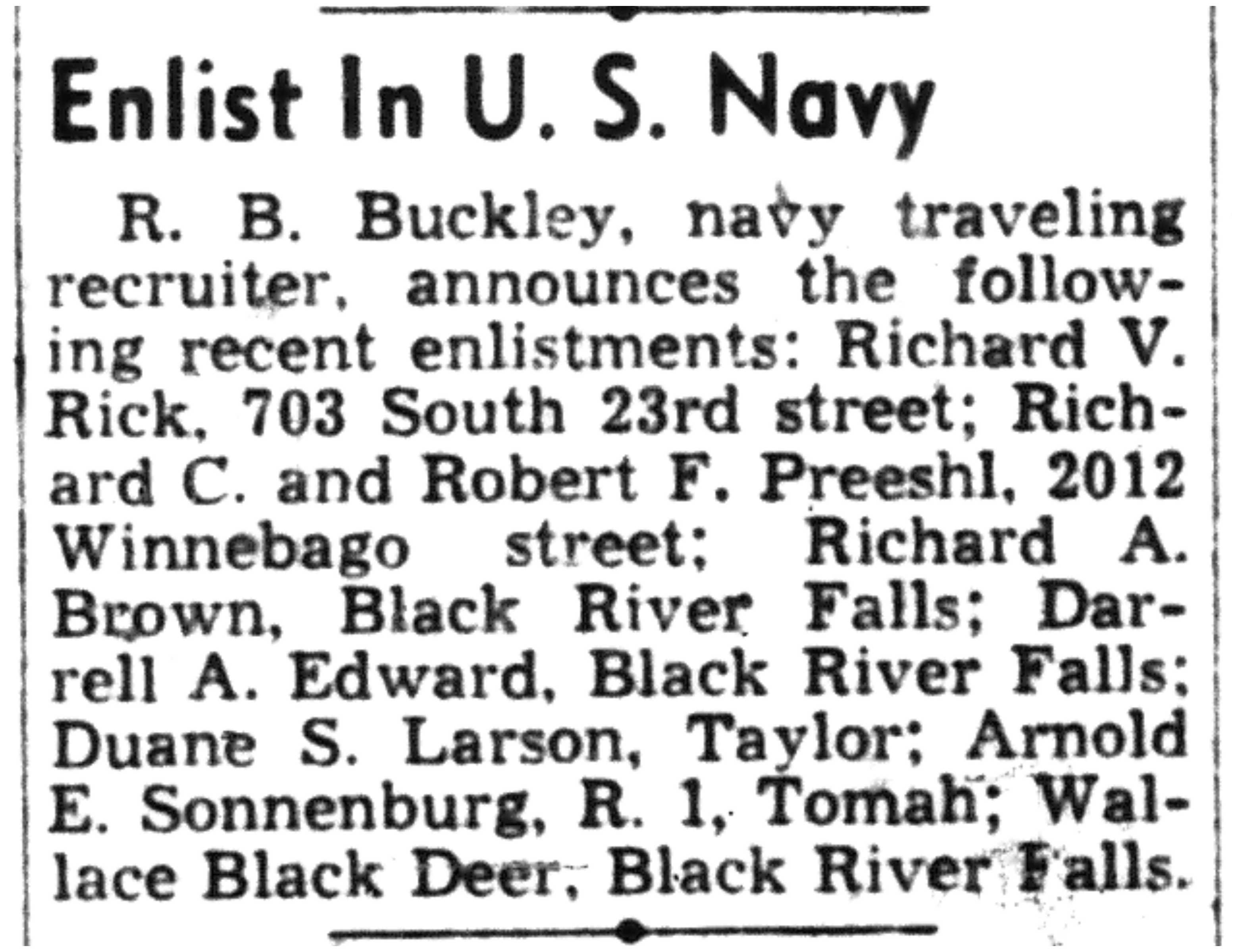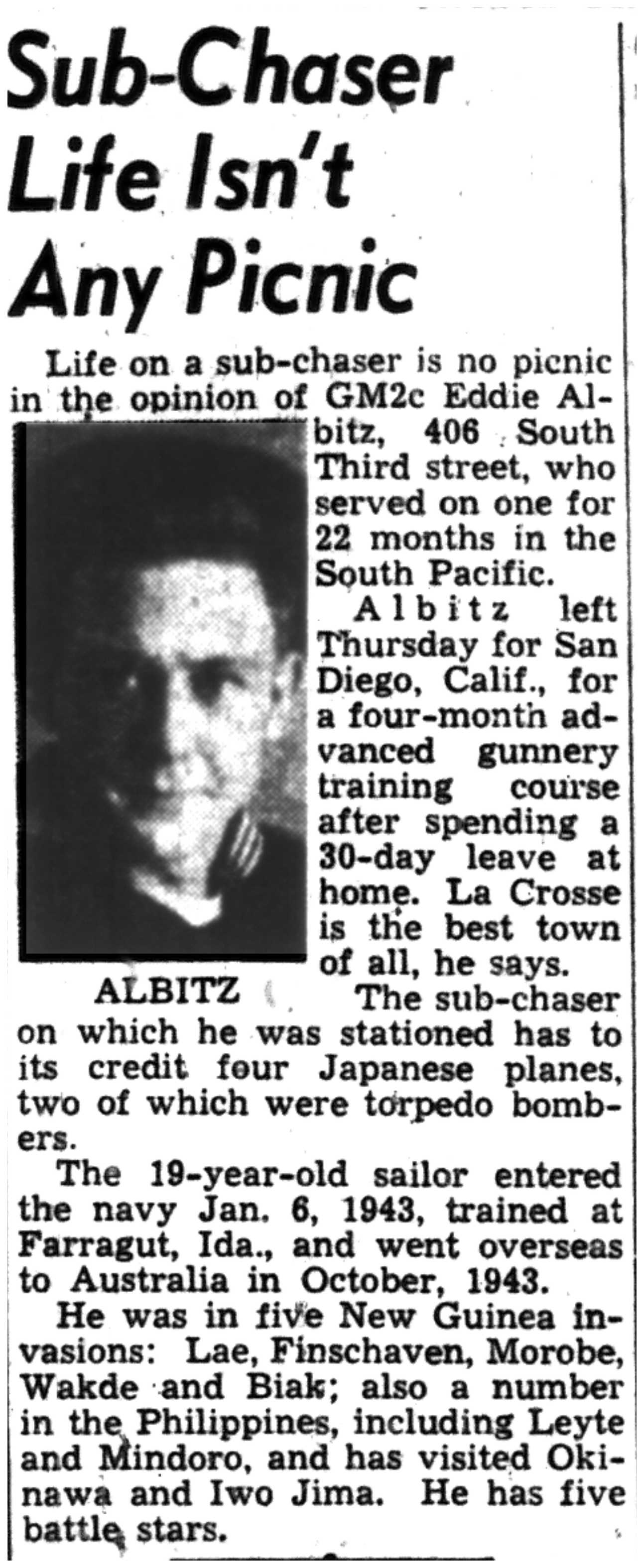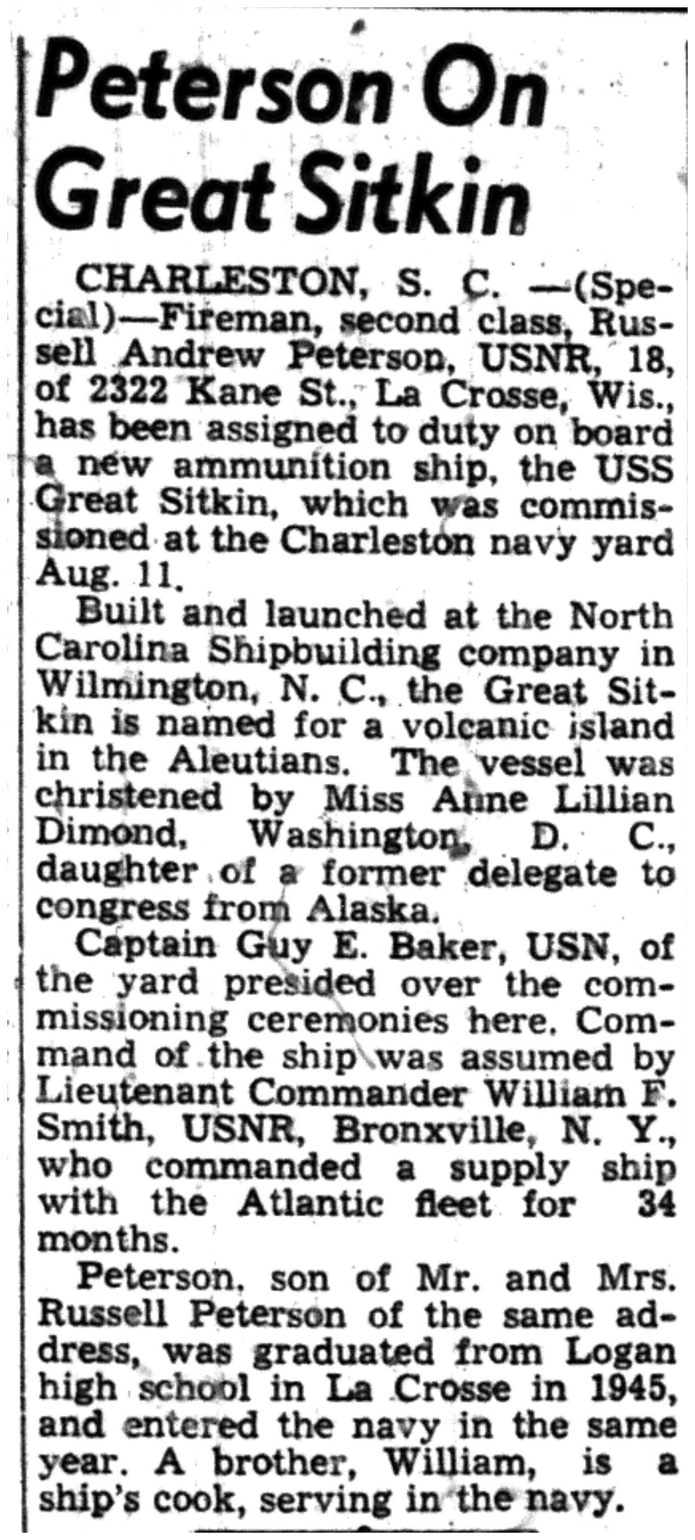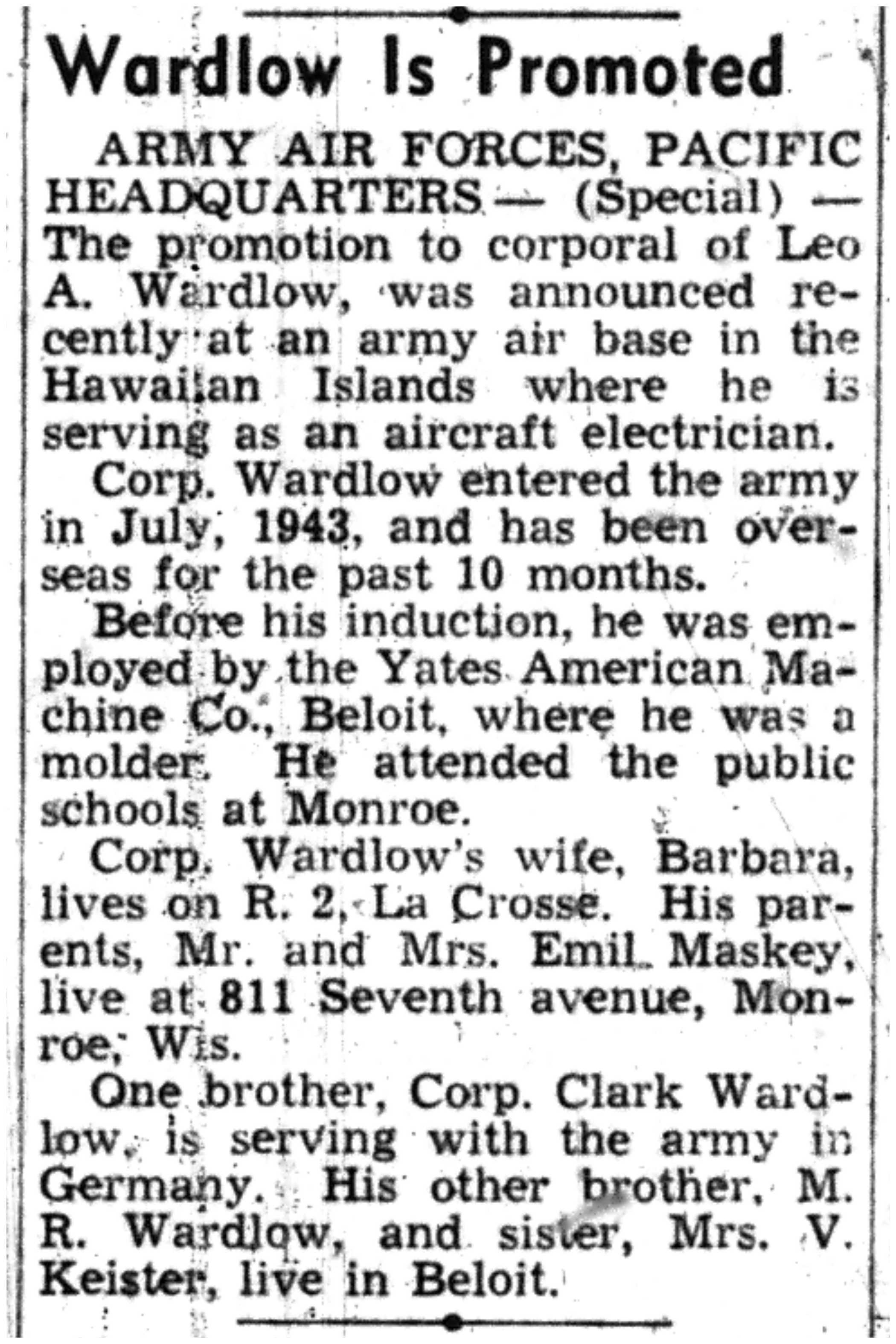 | 1945-8-4 | La Crosse Tribune p7 | |