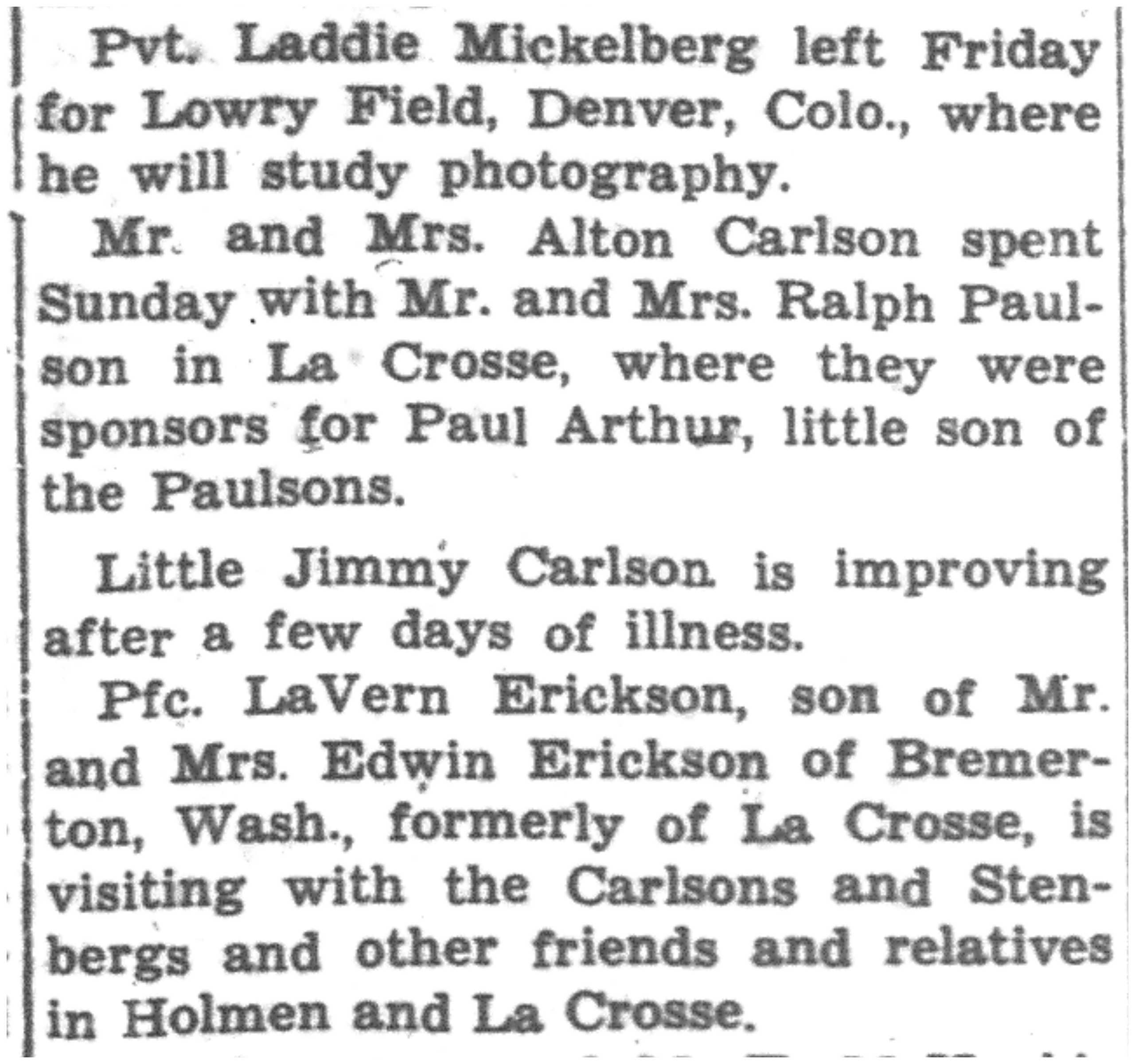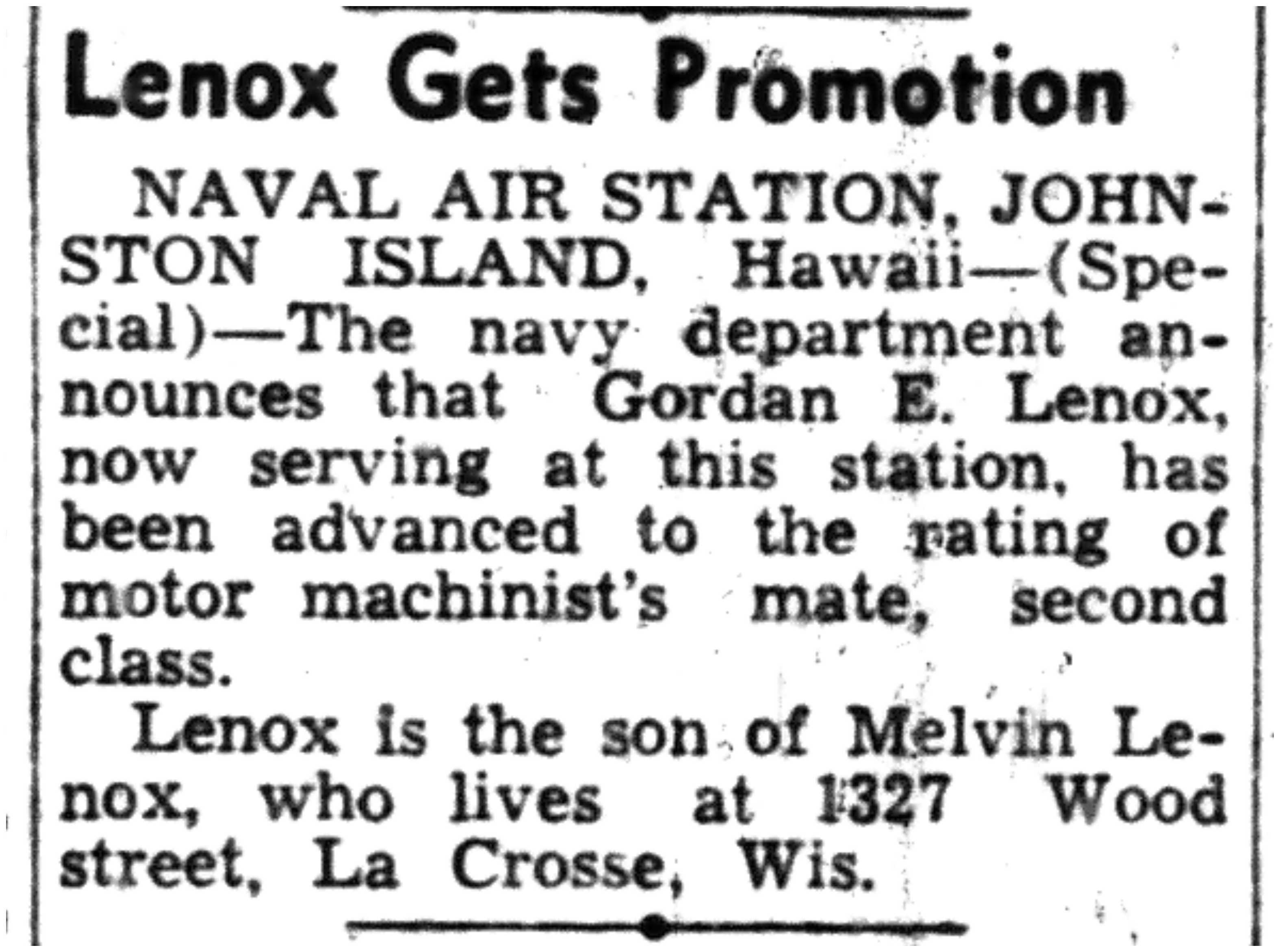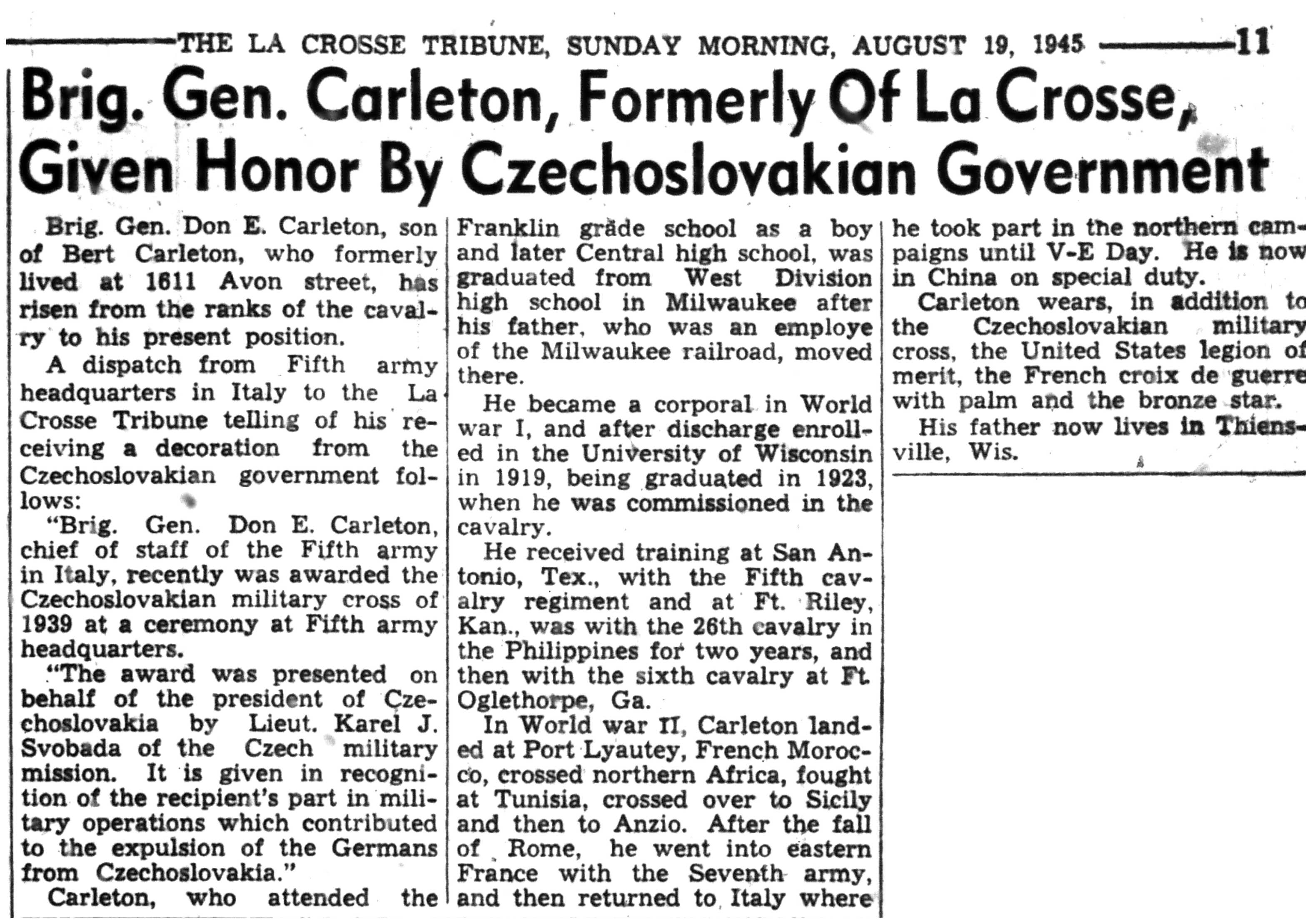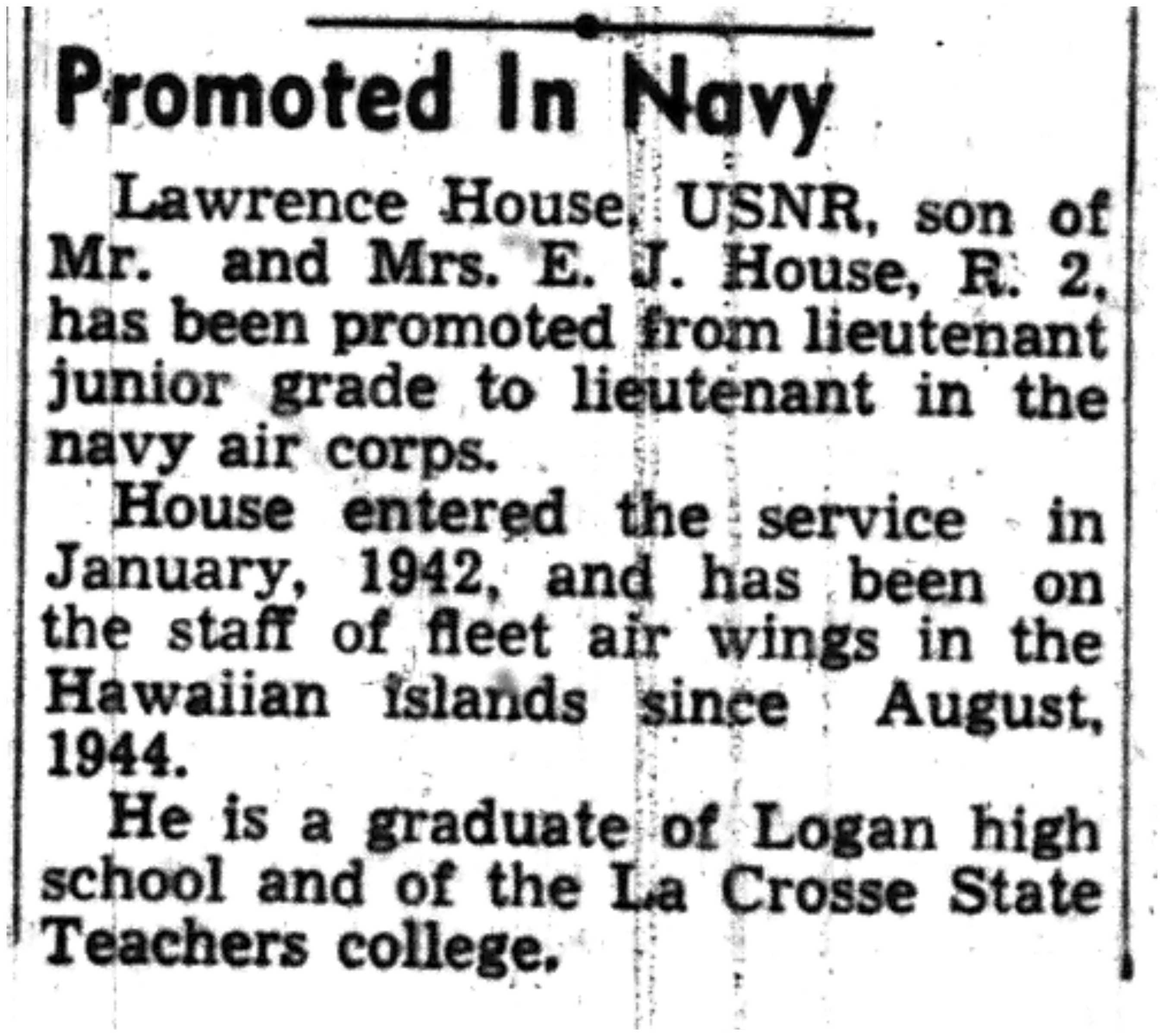 | 1945-8-2 | La Crosse Tribune p11 | |