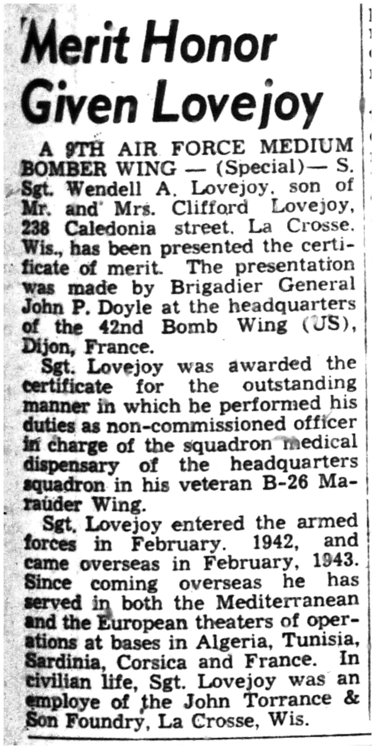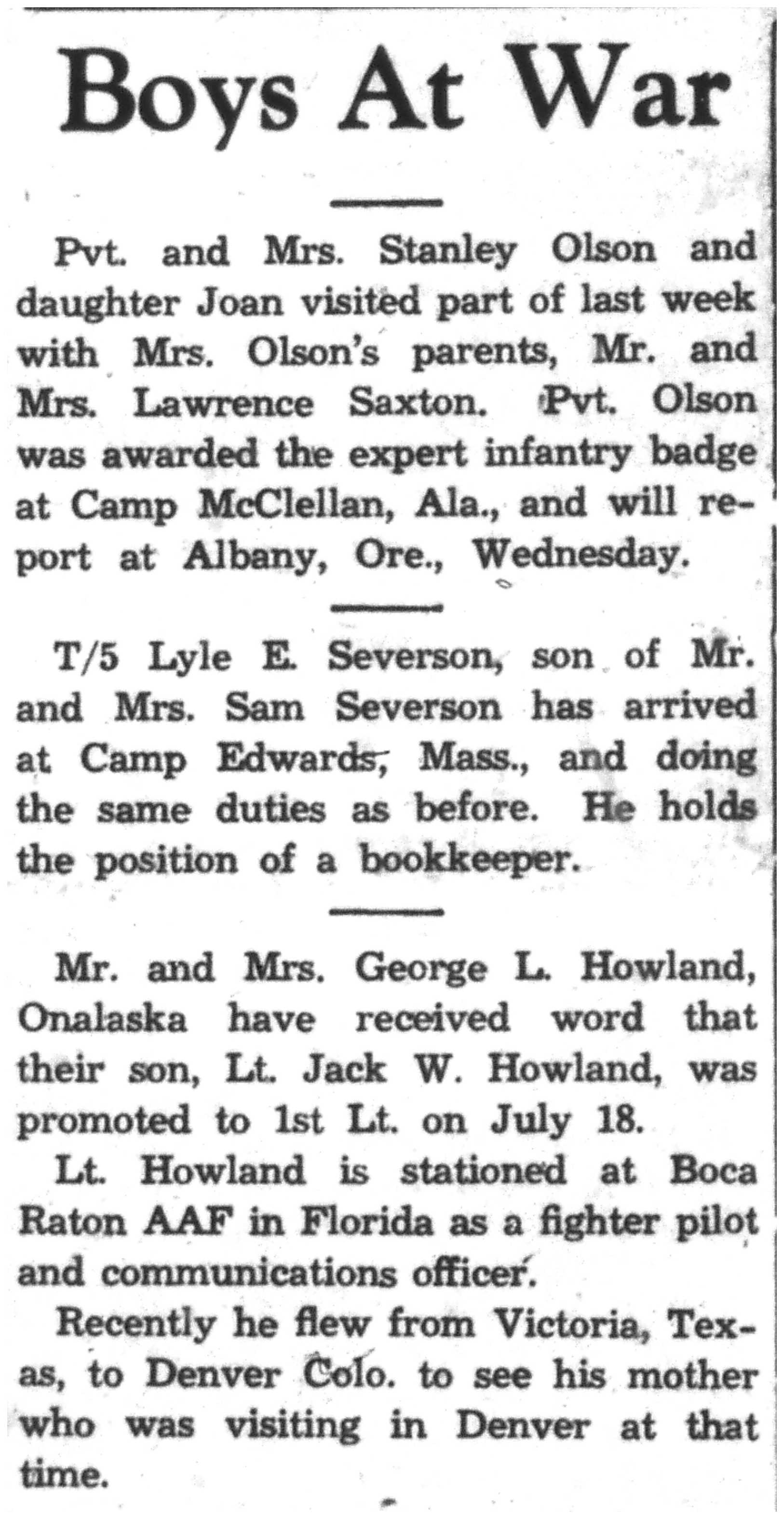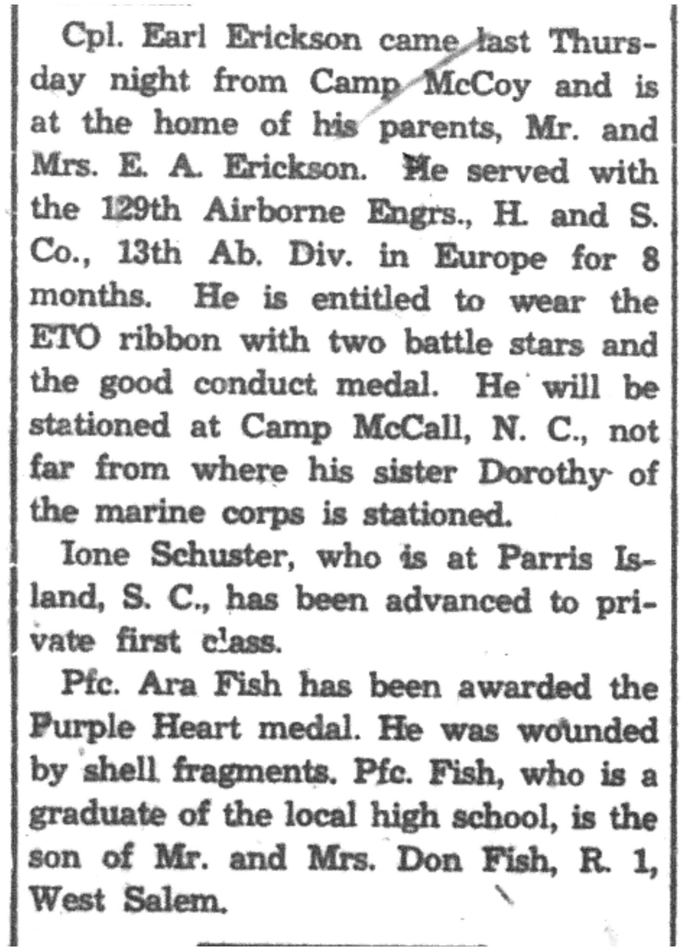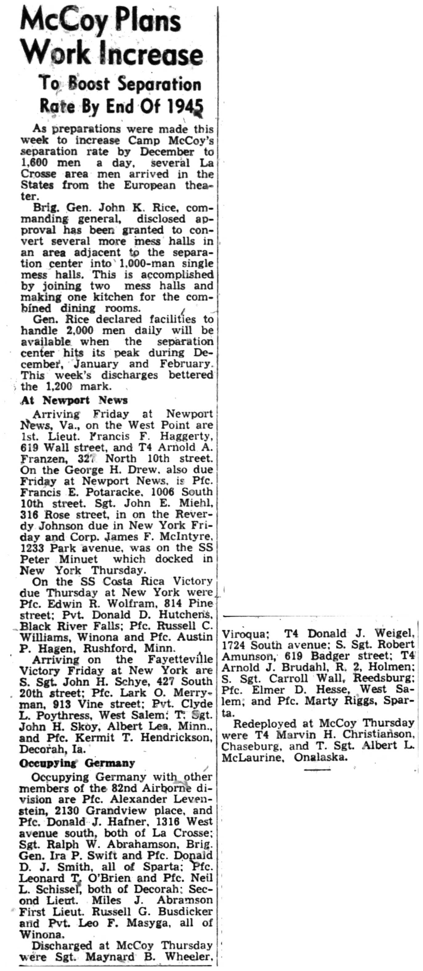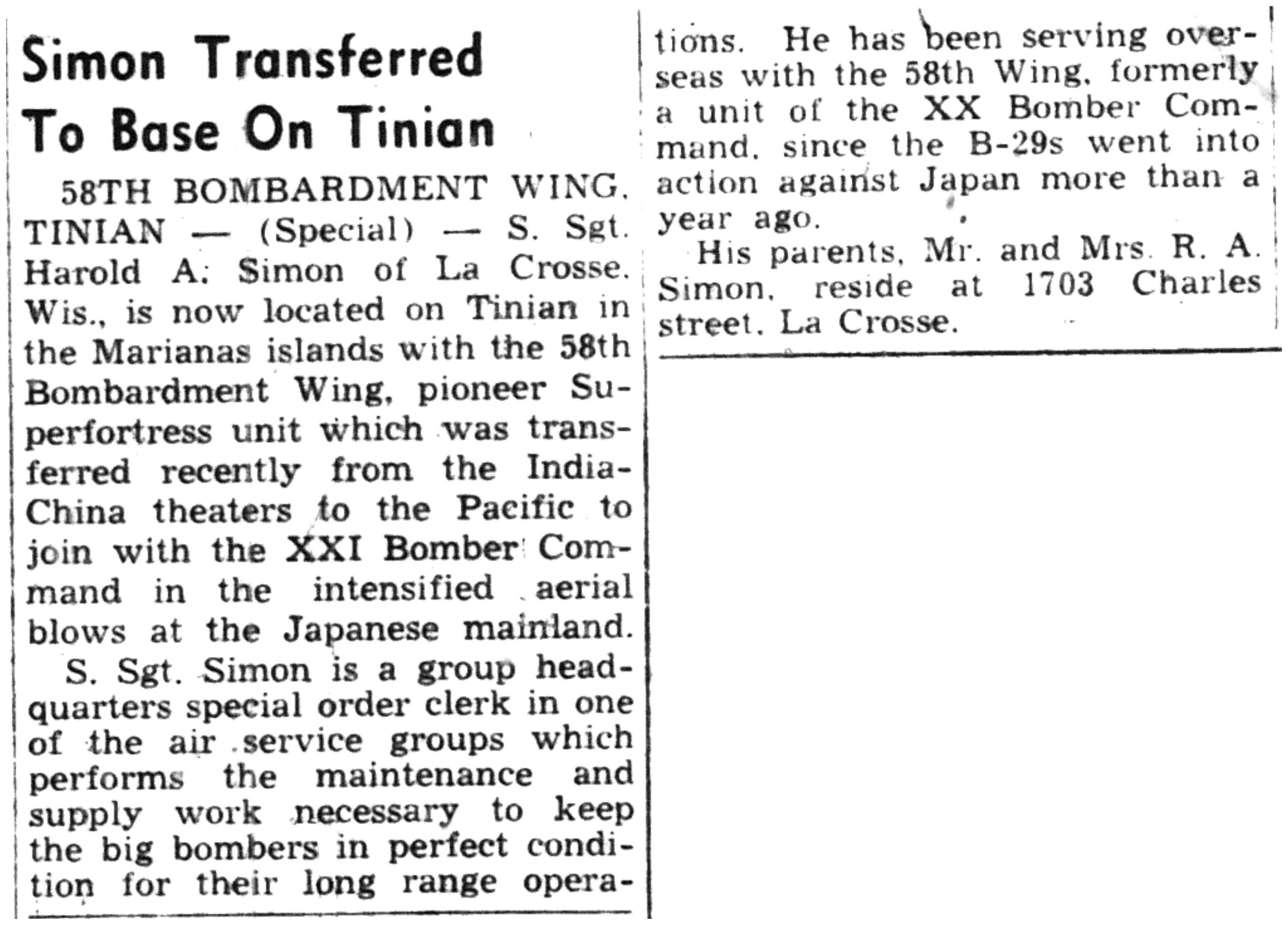 | 1945-8-2 | La Crosse Tribune p11 | |