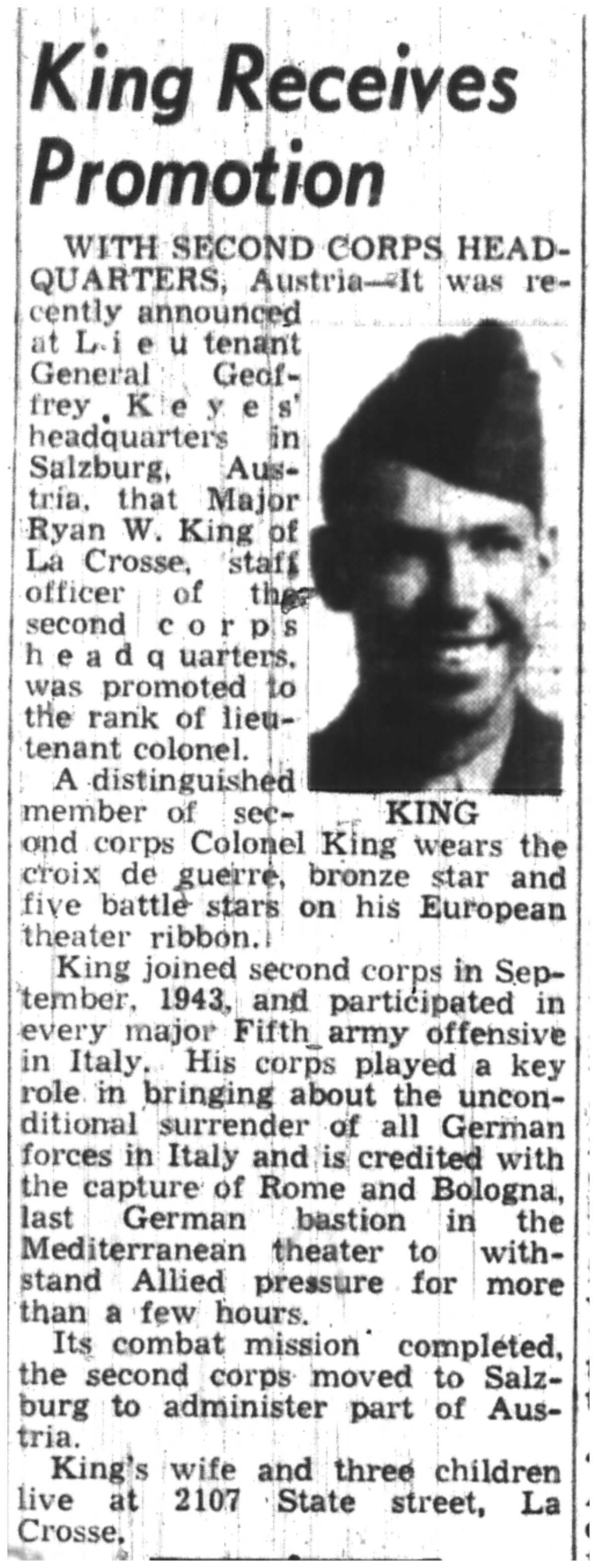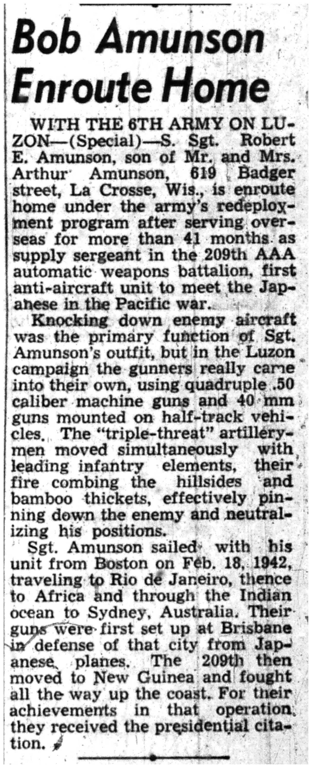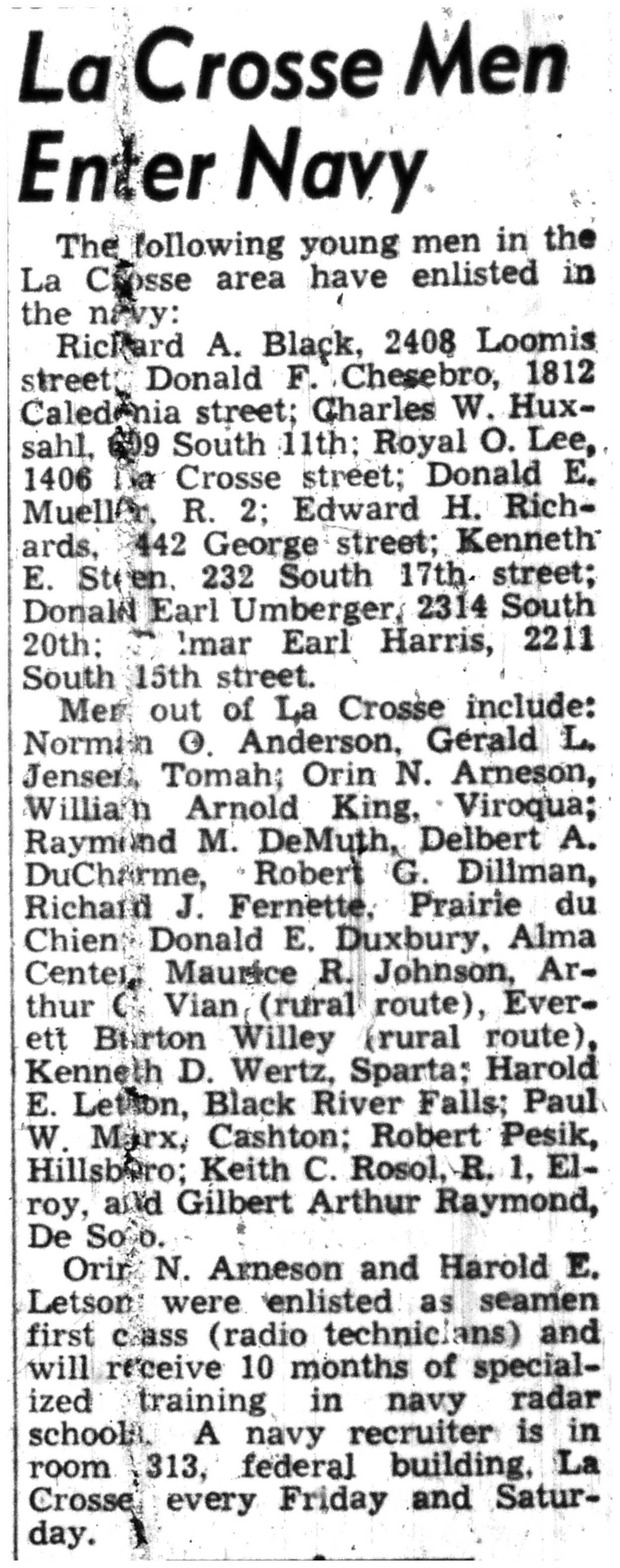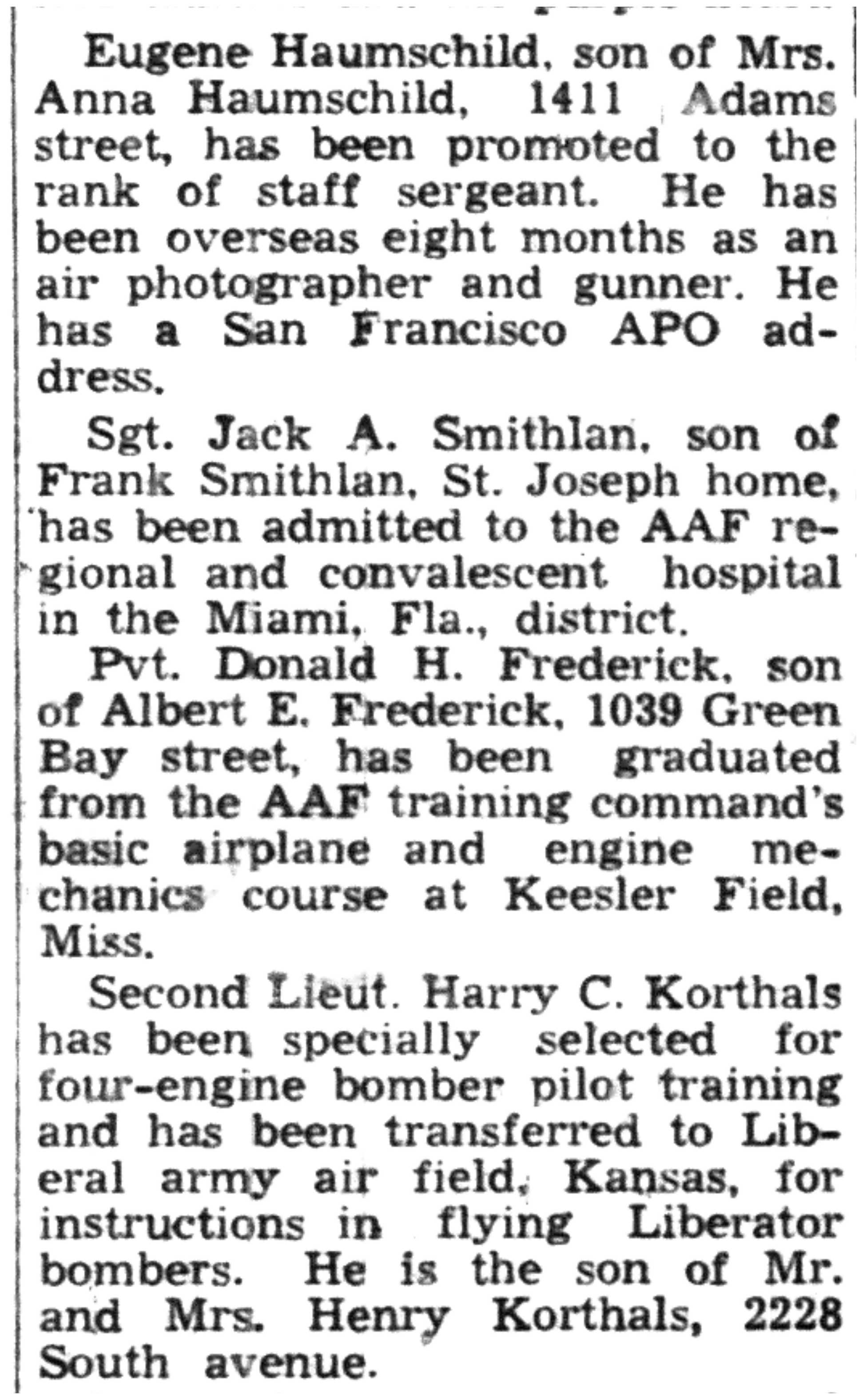 | 1945-8-2 | La Crosse Tribune p11 | |