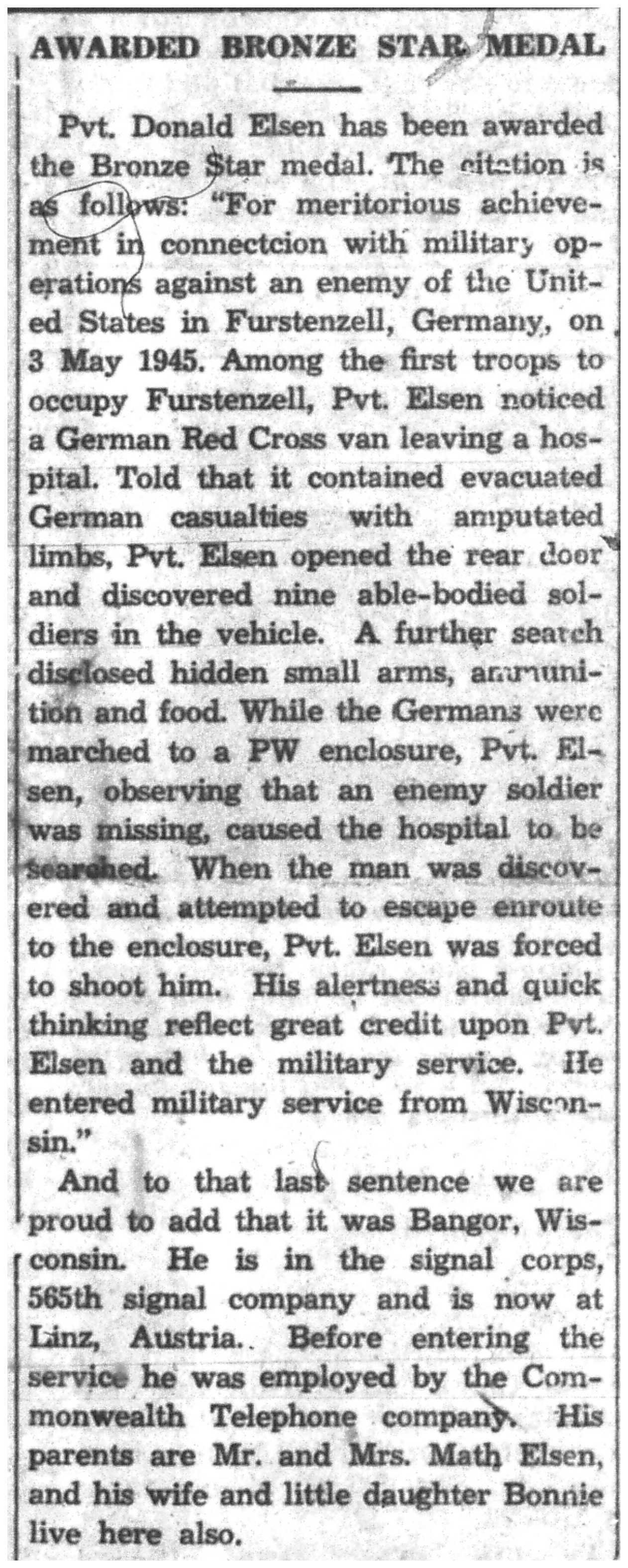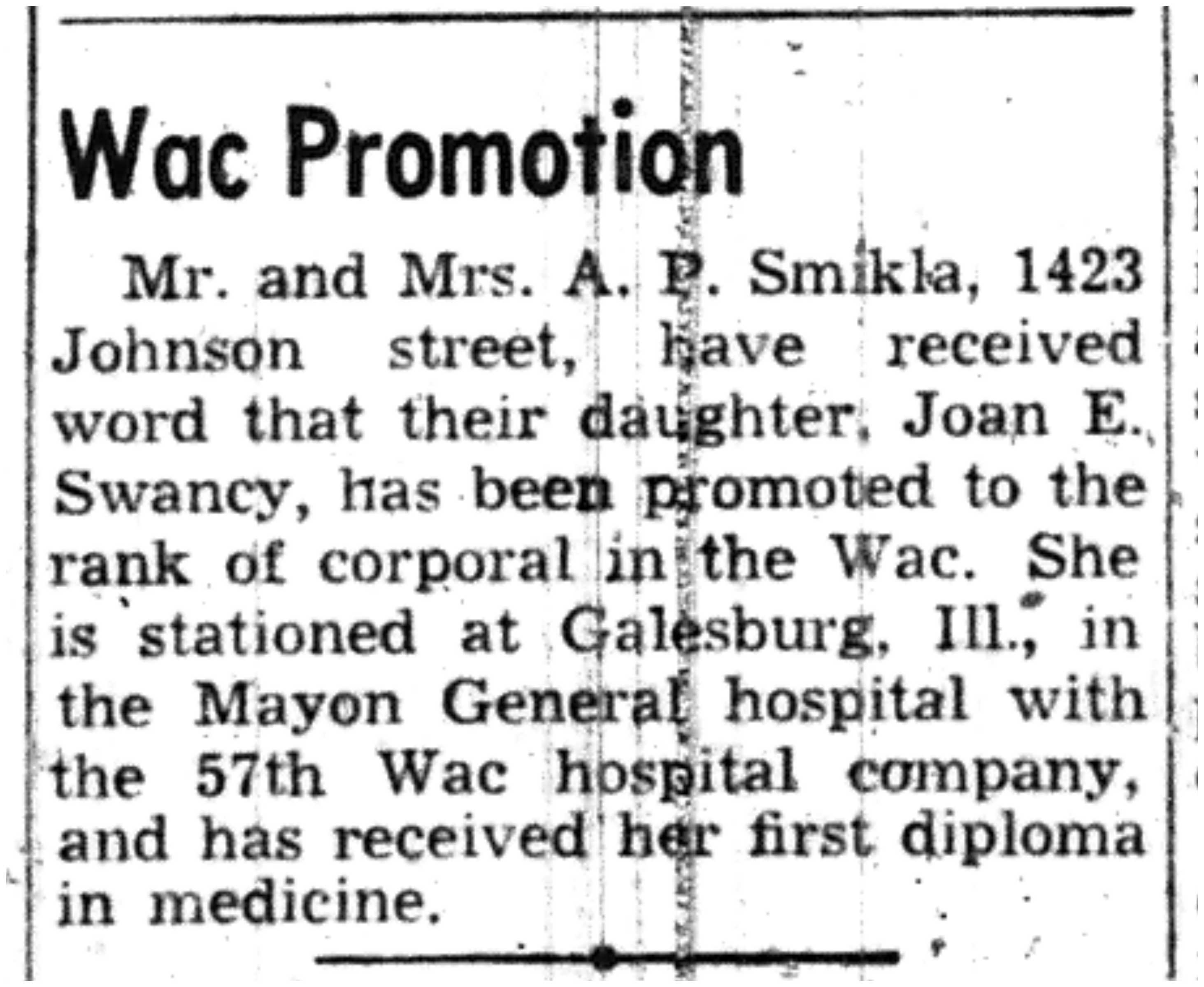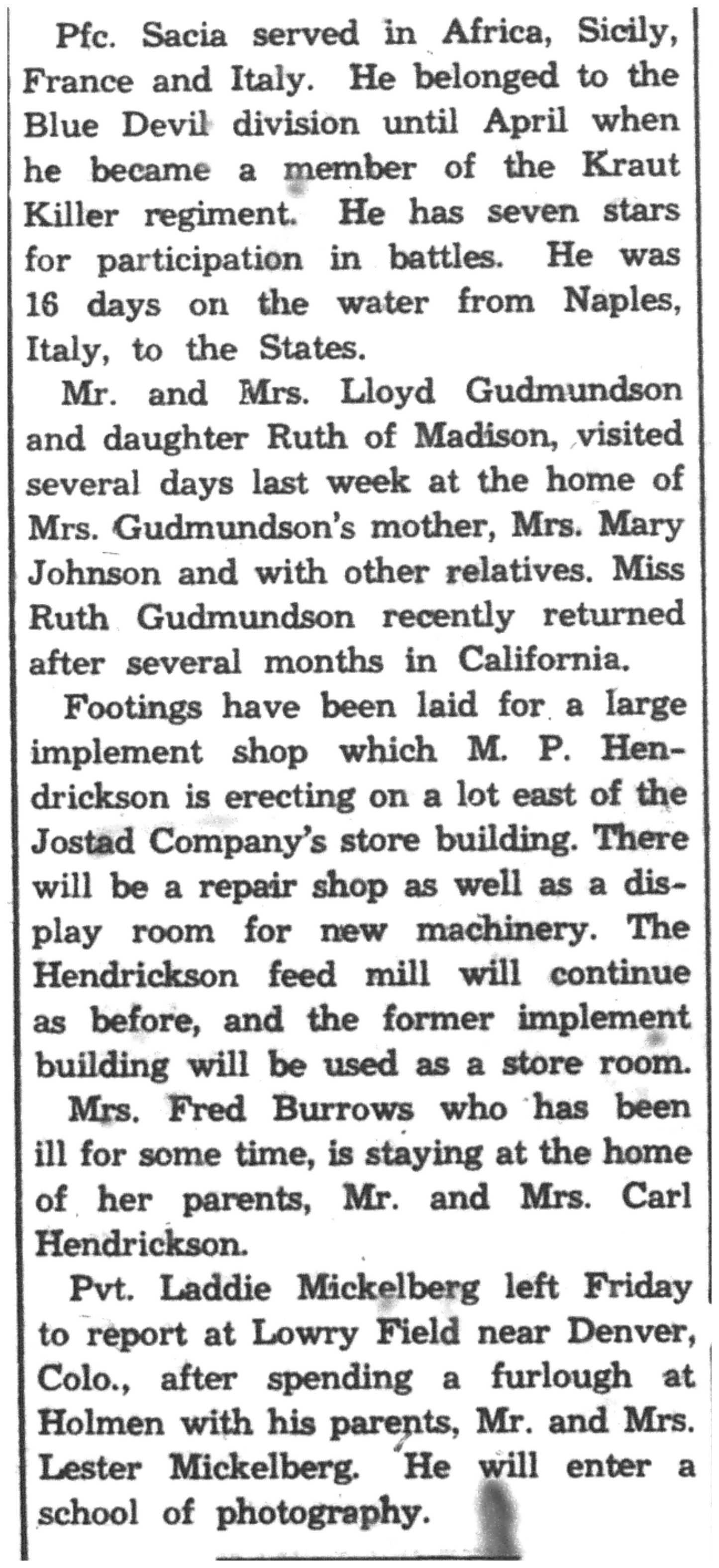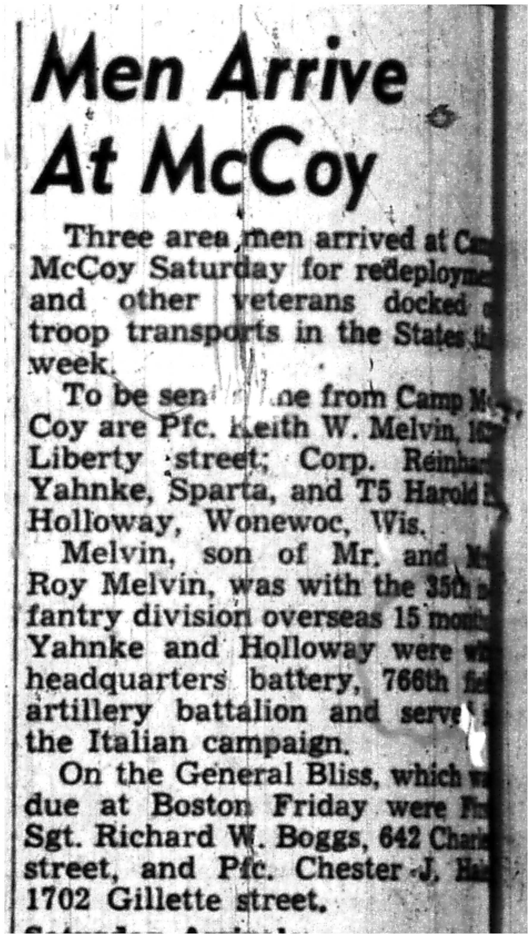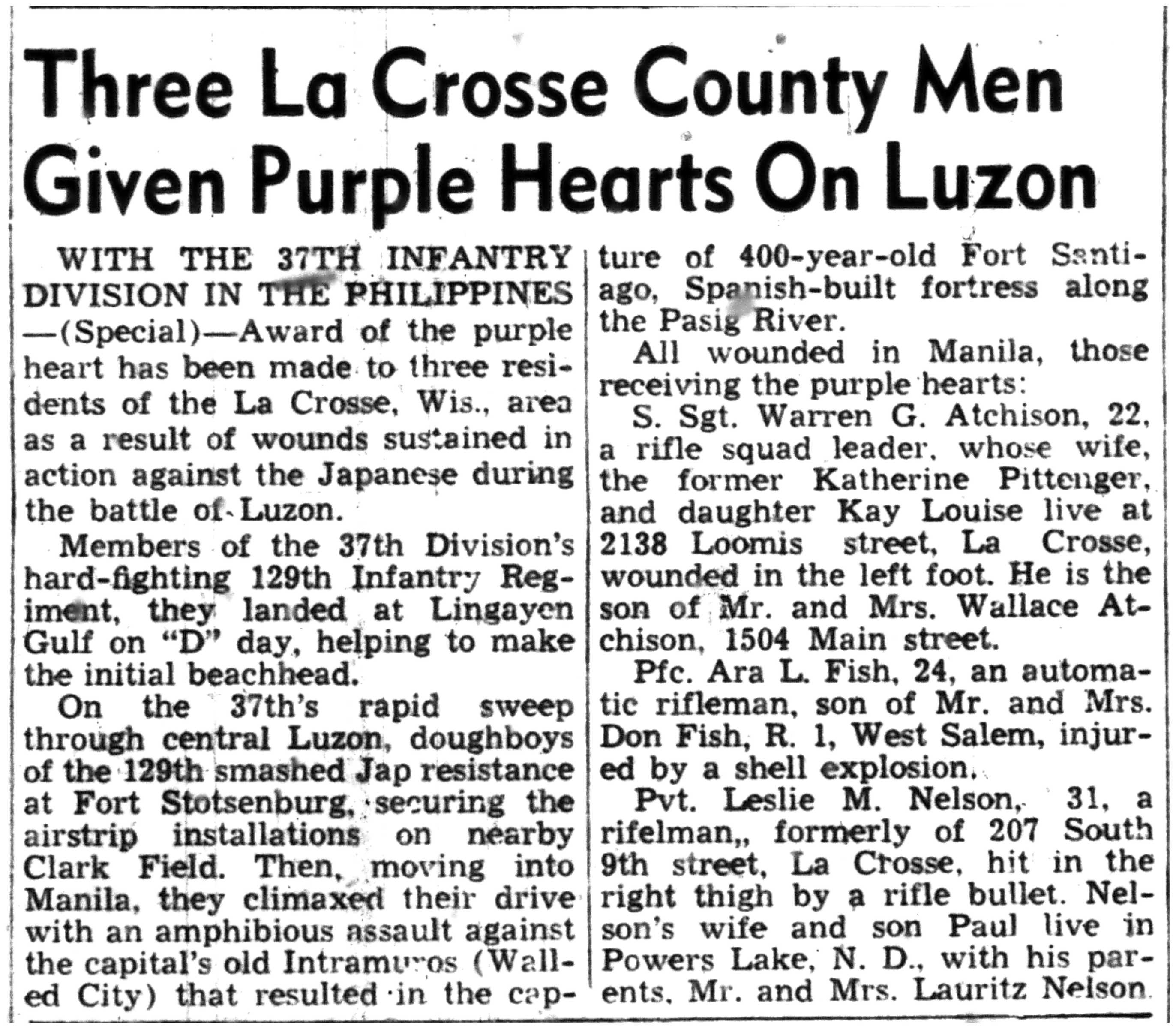 | 1945-8-2 | La Crosse Tribune p11 | |