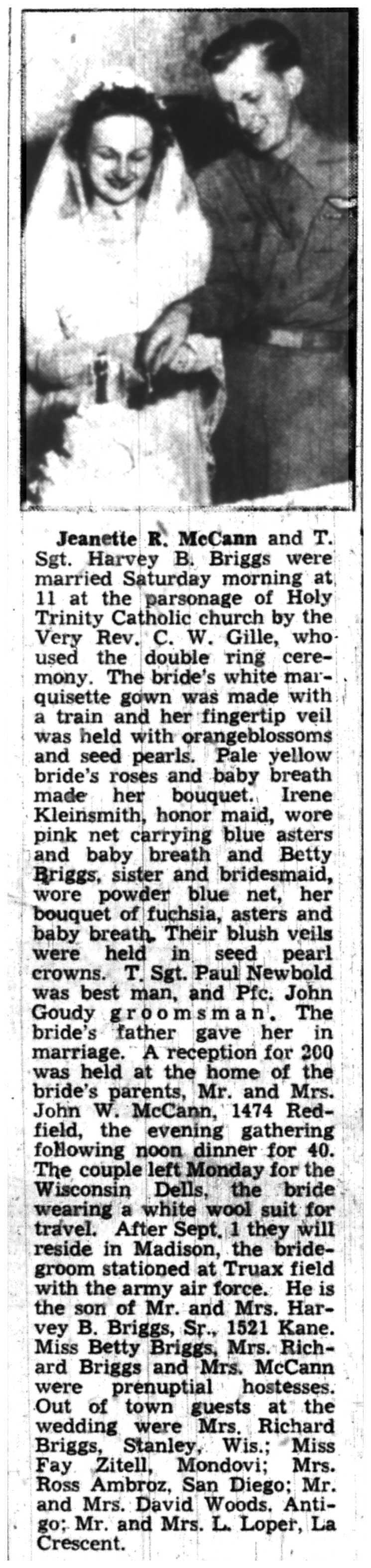 | 1945-8-30 | La Crosse Tribune p16 | |