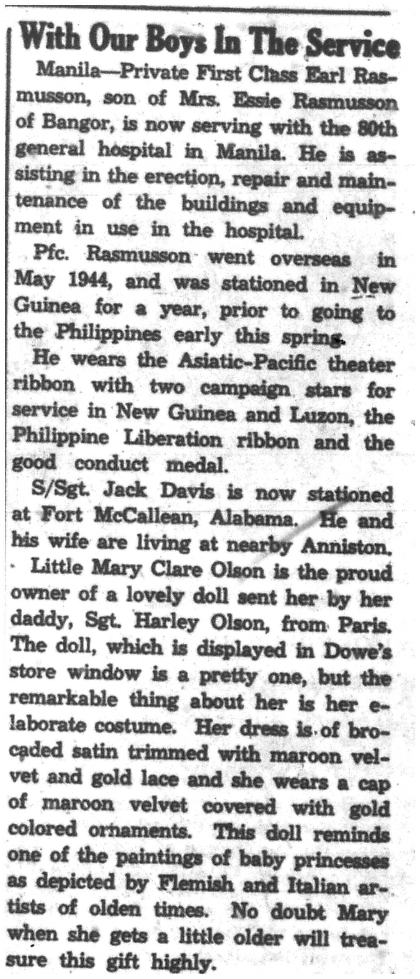 | 1945-8-5 | La Crosse Tribune p3 | |