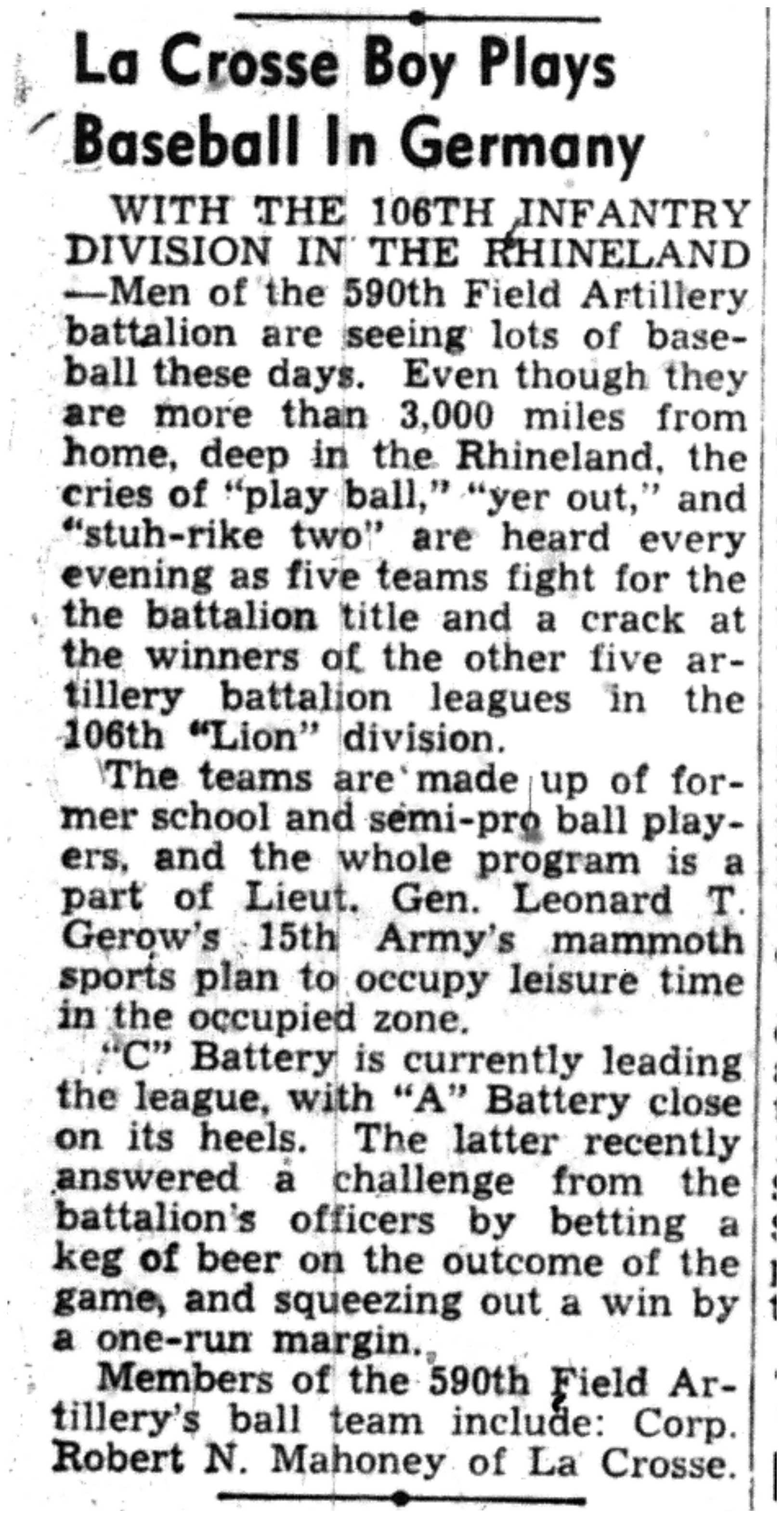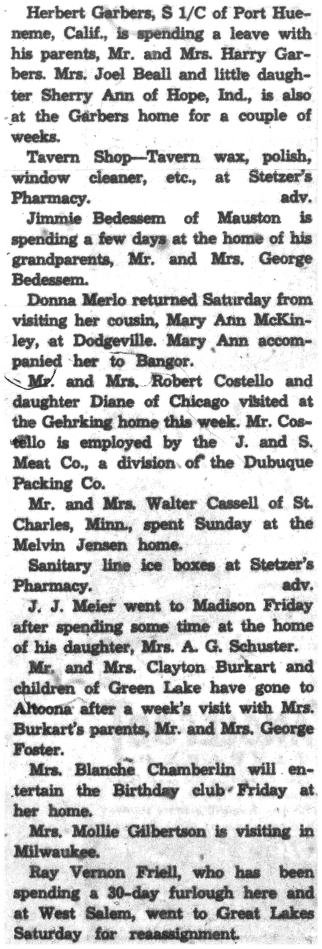 | 1945-8-30 | La Crosse Tribune p13 | |