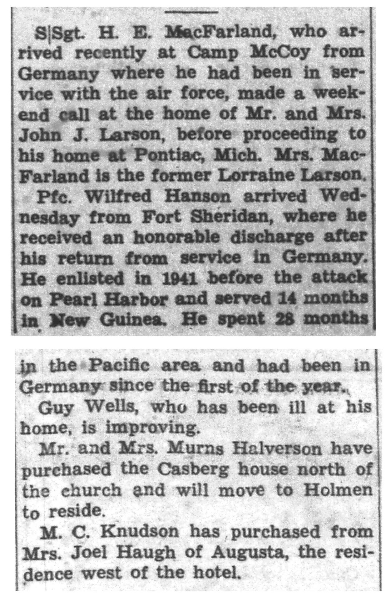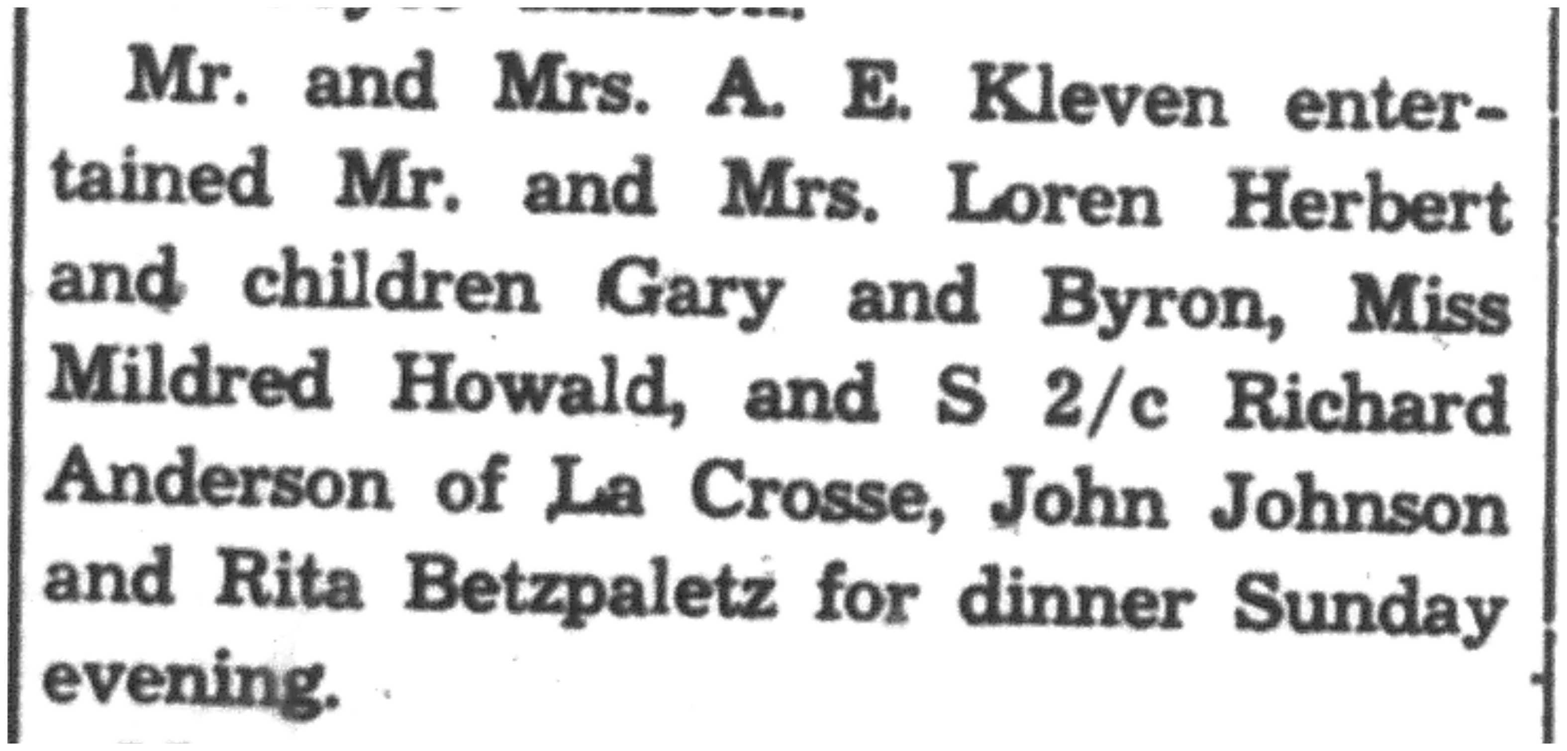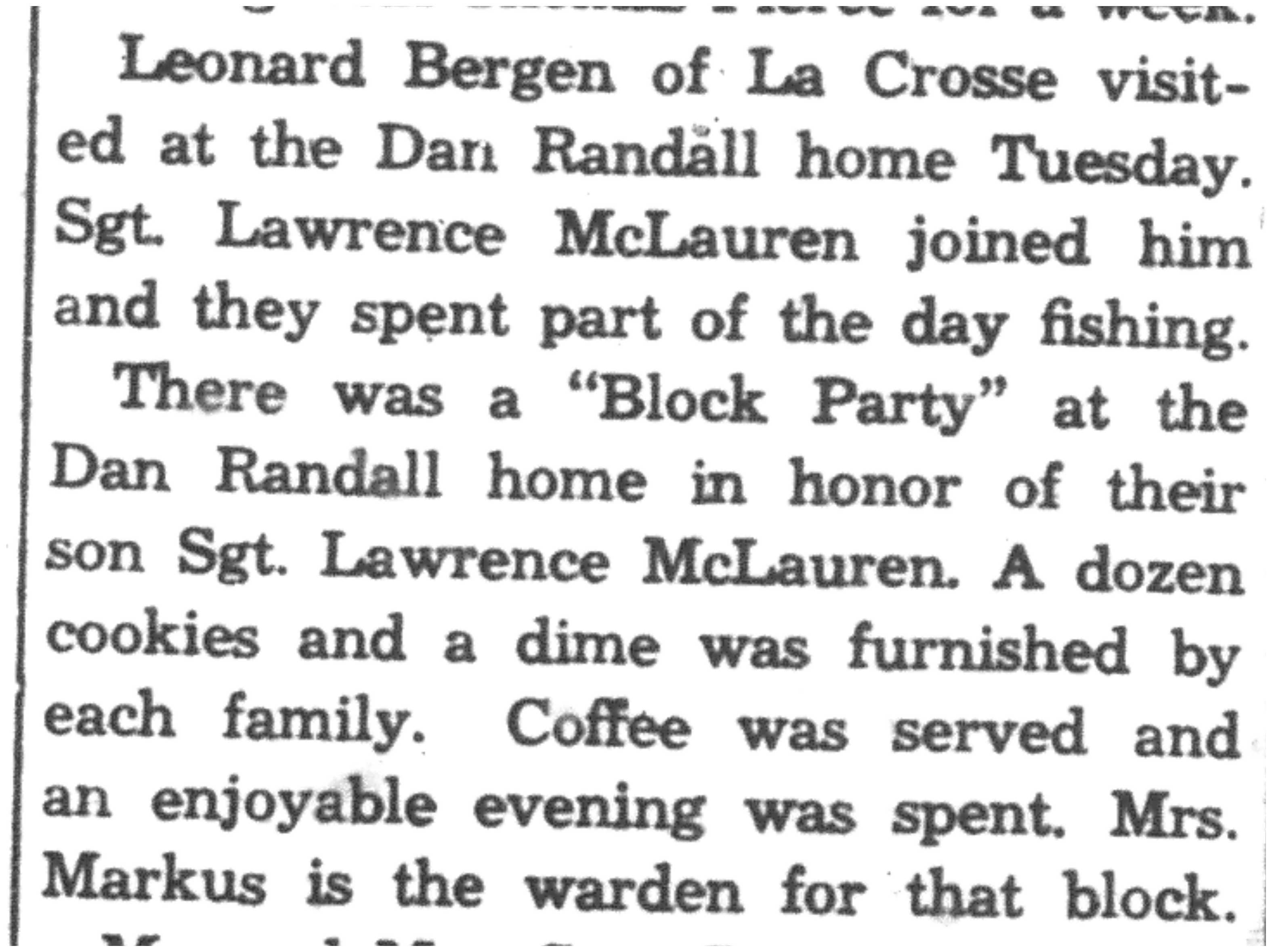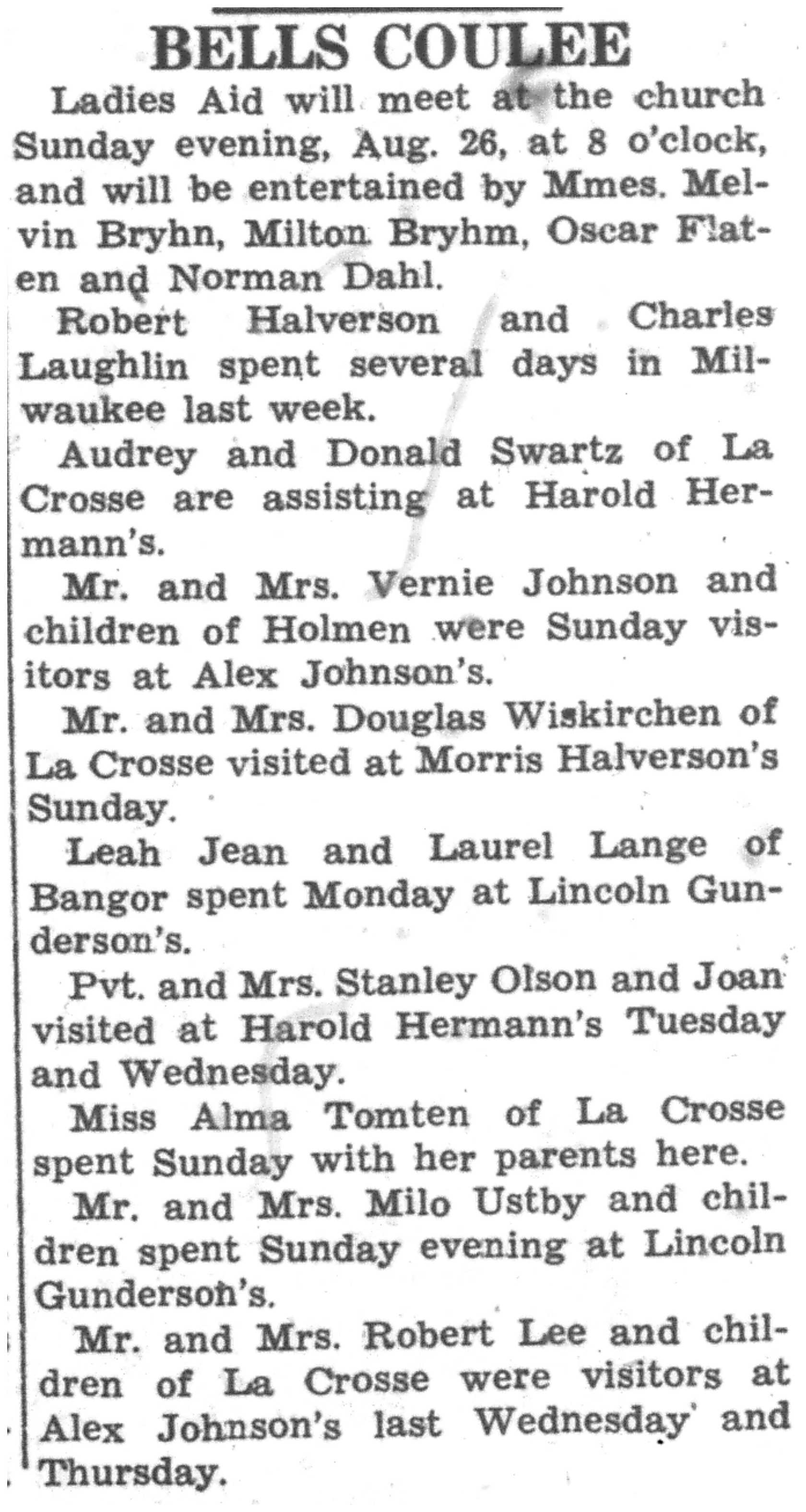 | 1945-8-2 | La Crosse County Record p5 | |