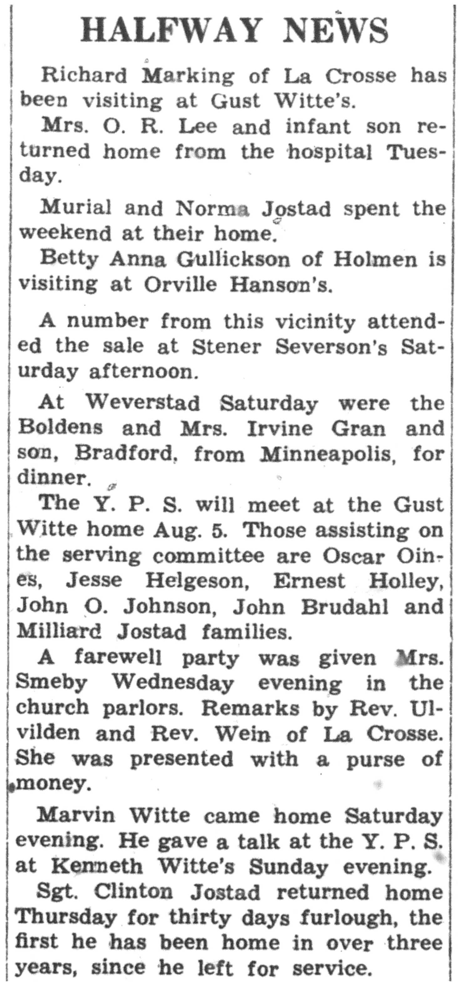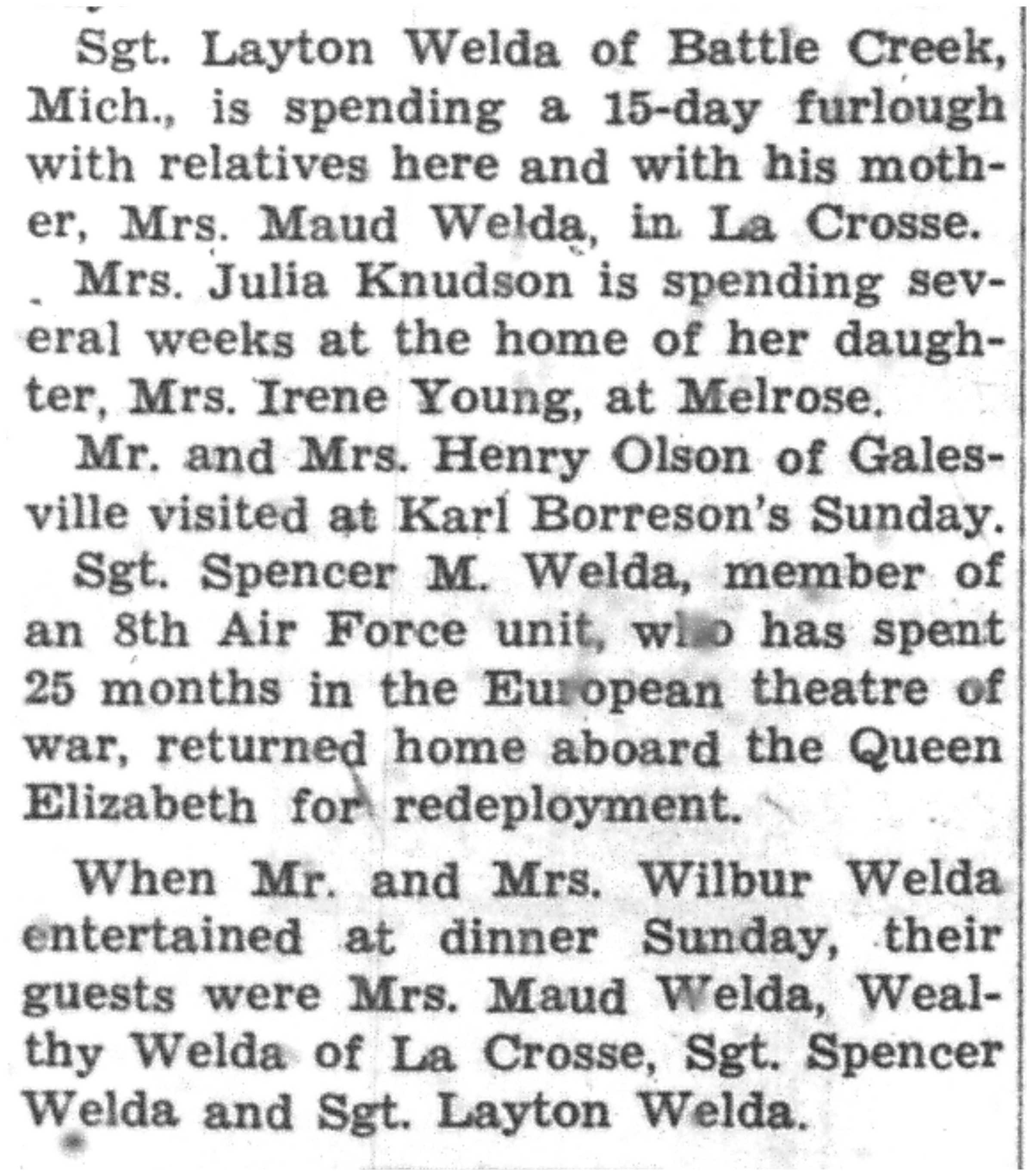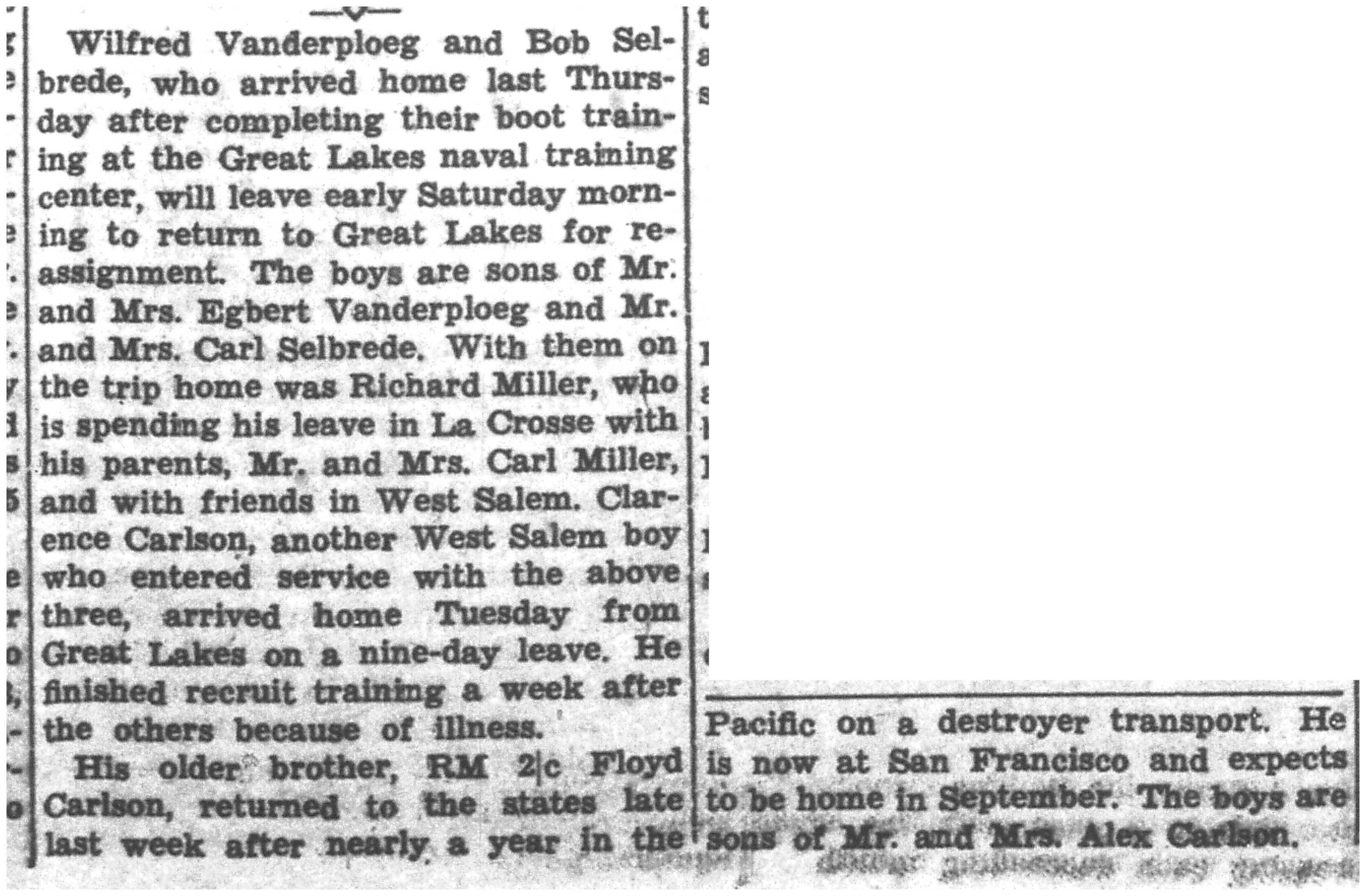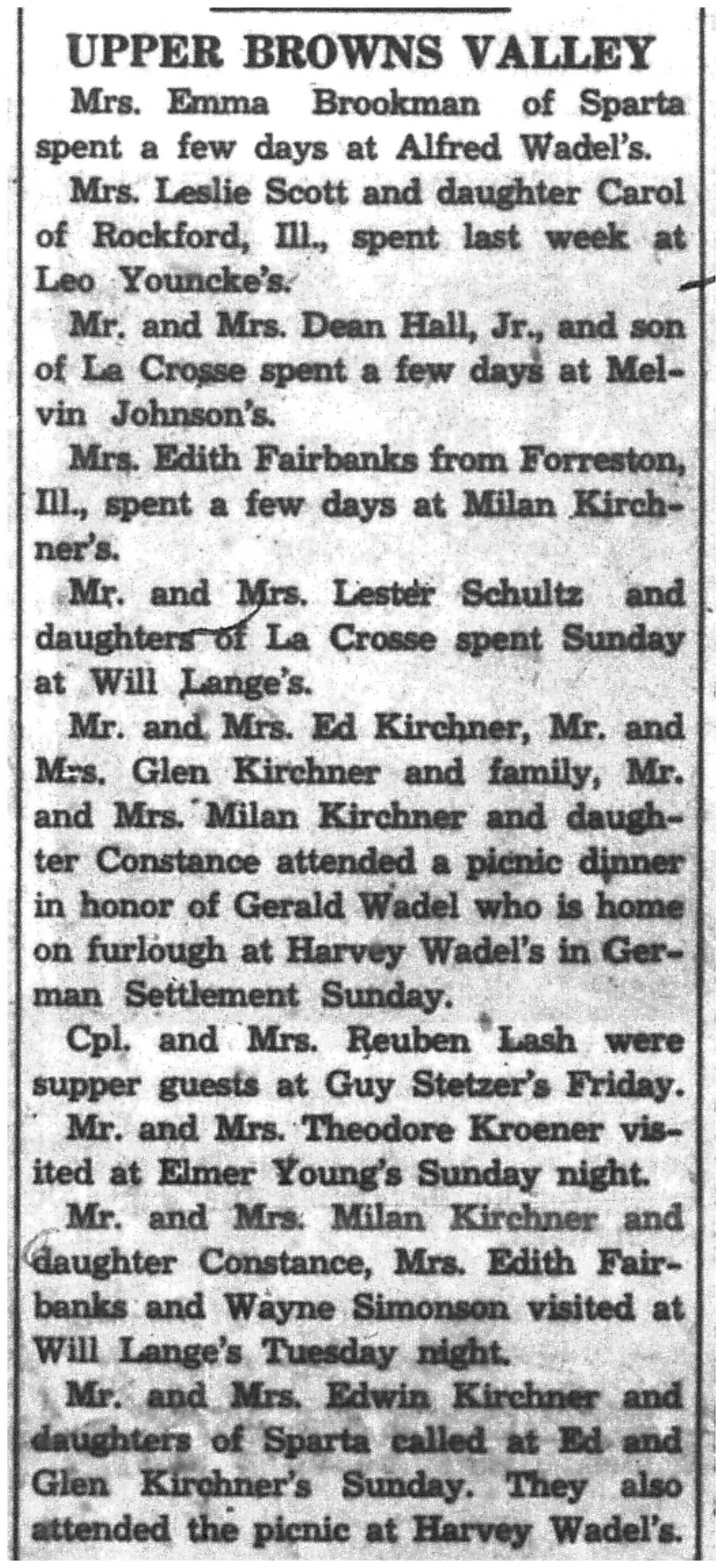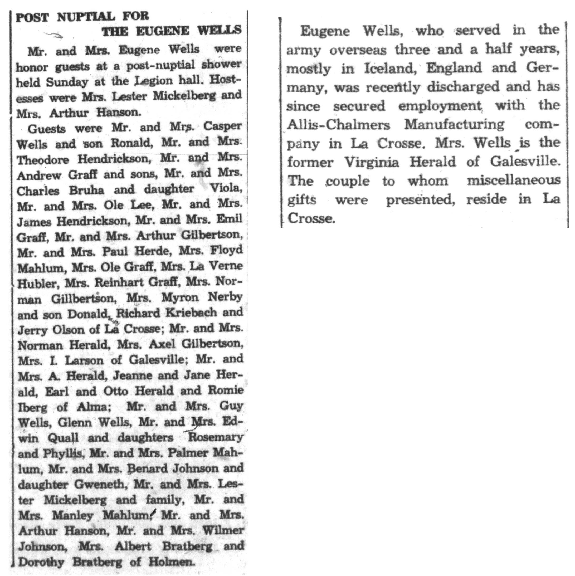 | 1945-8-2 | La Crosse County Record p5 | |