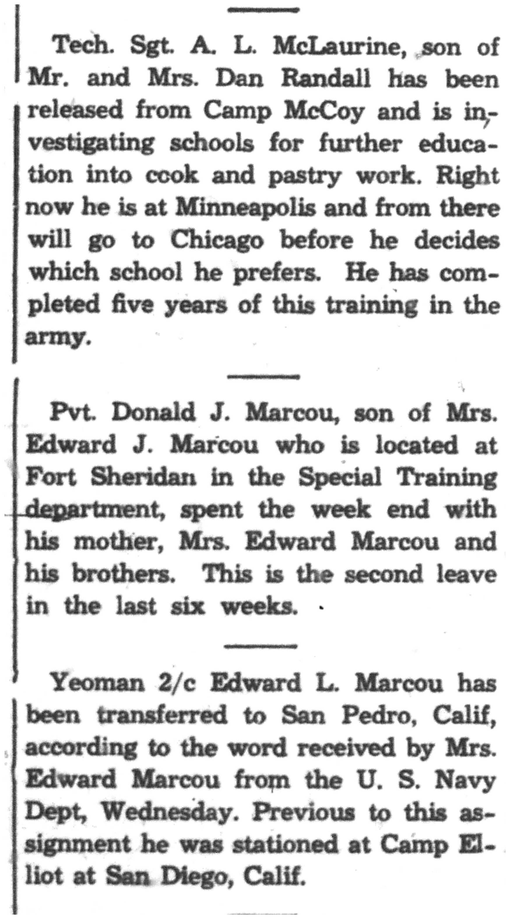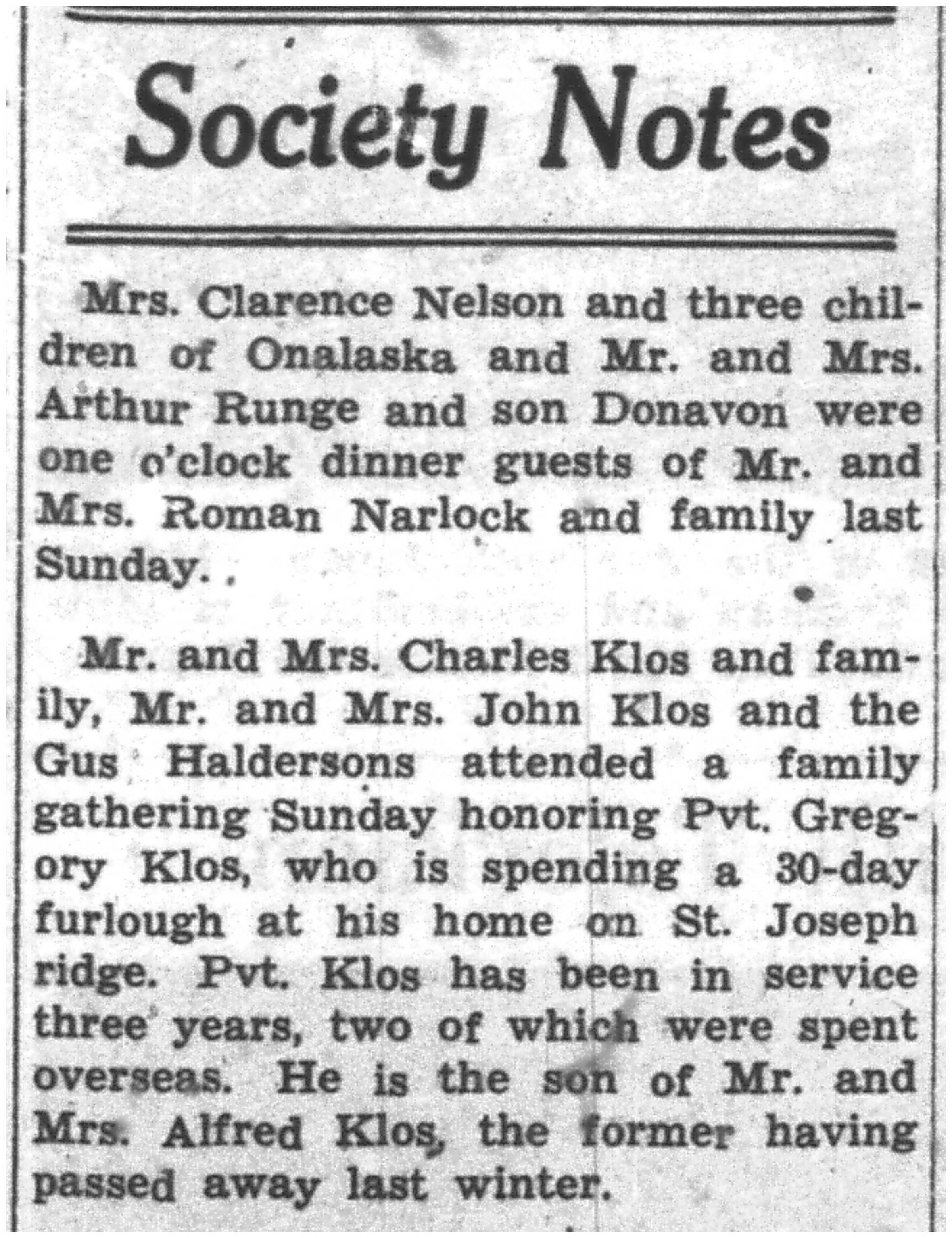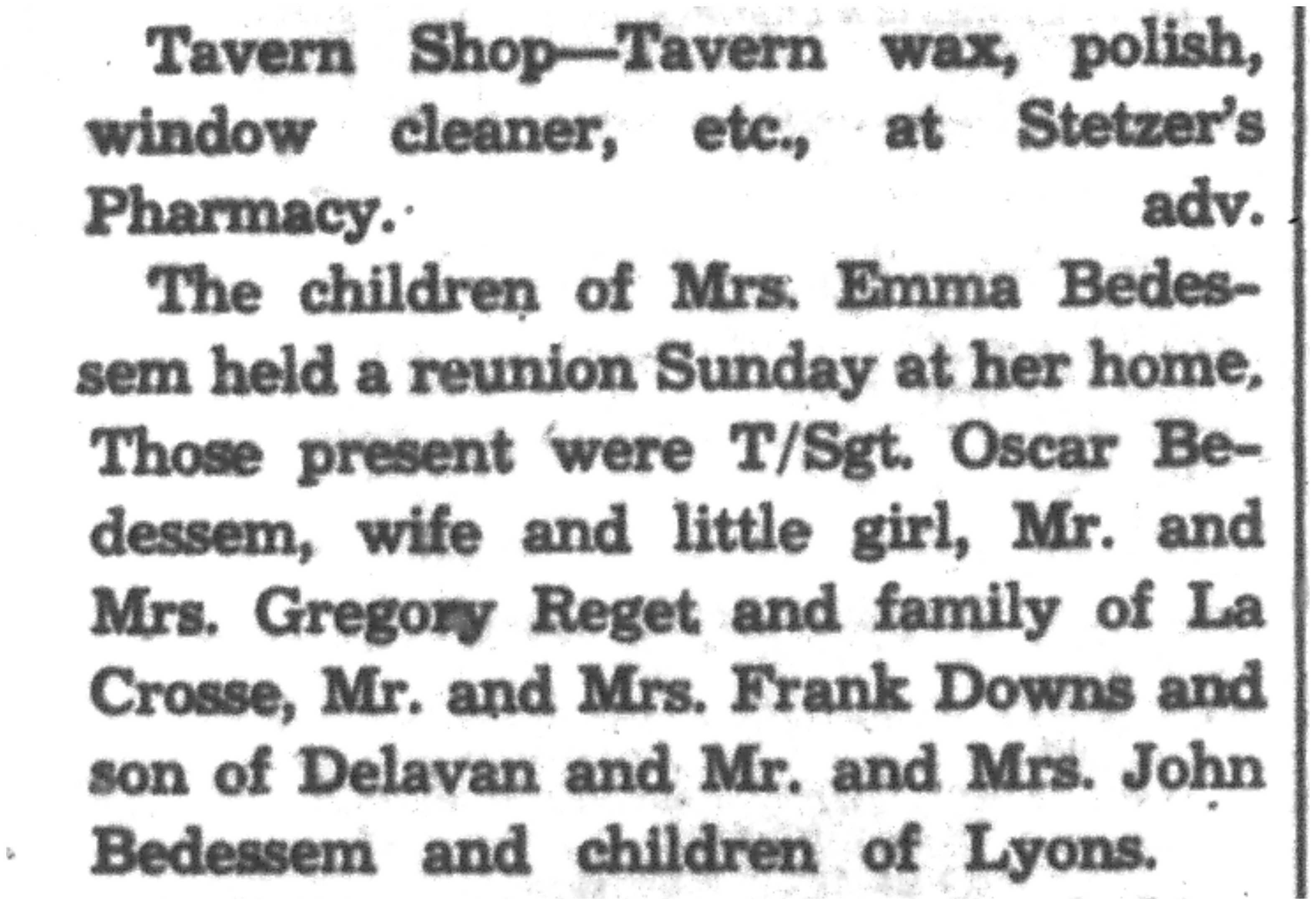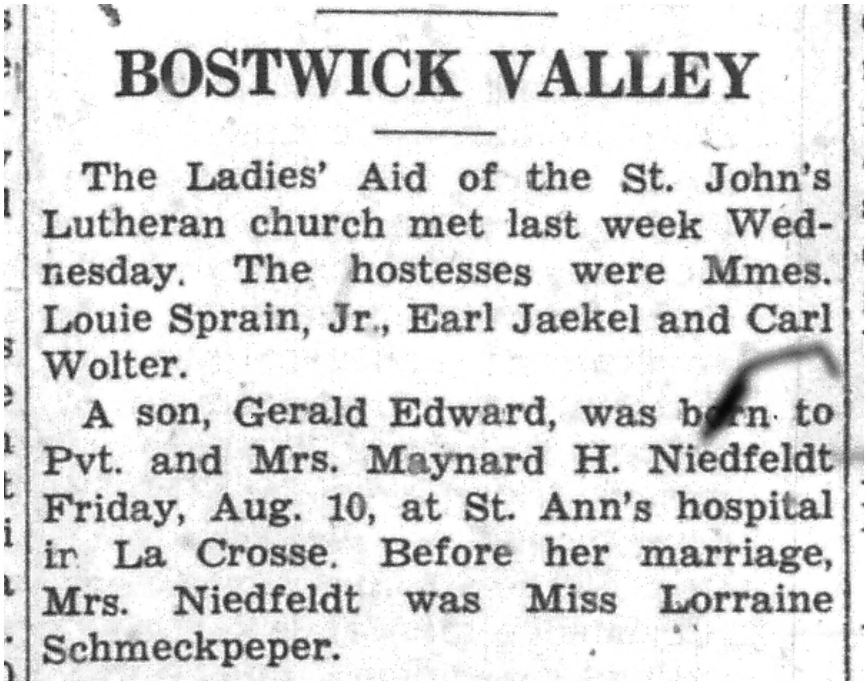 | 1945-8-2 | La Crosse County Record p5 | |