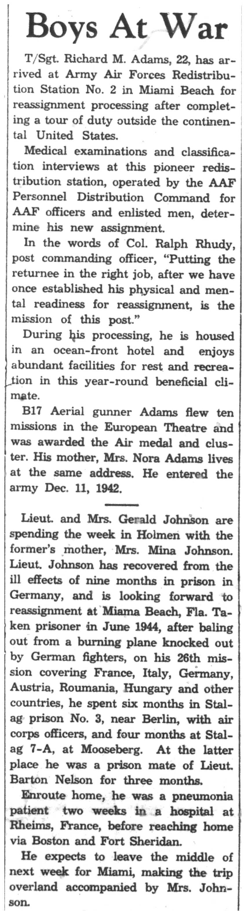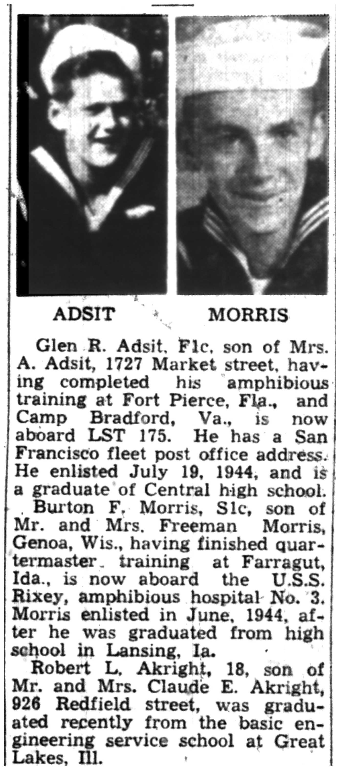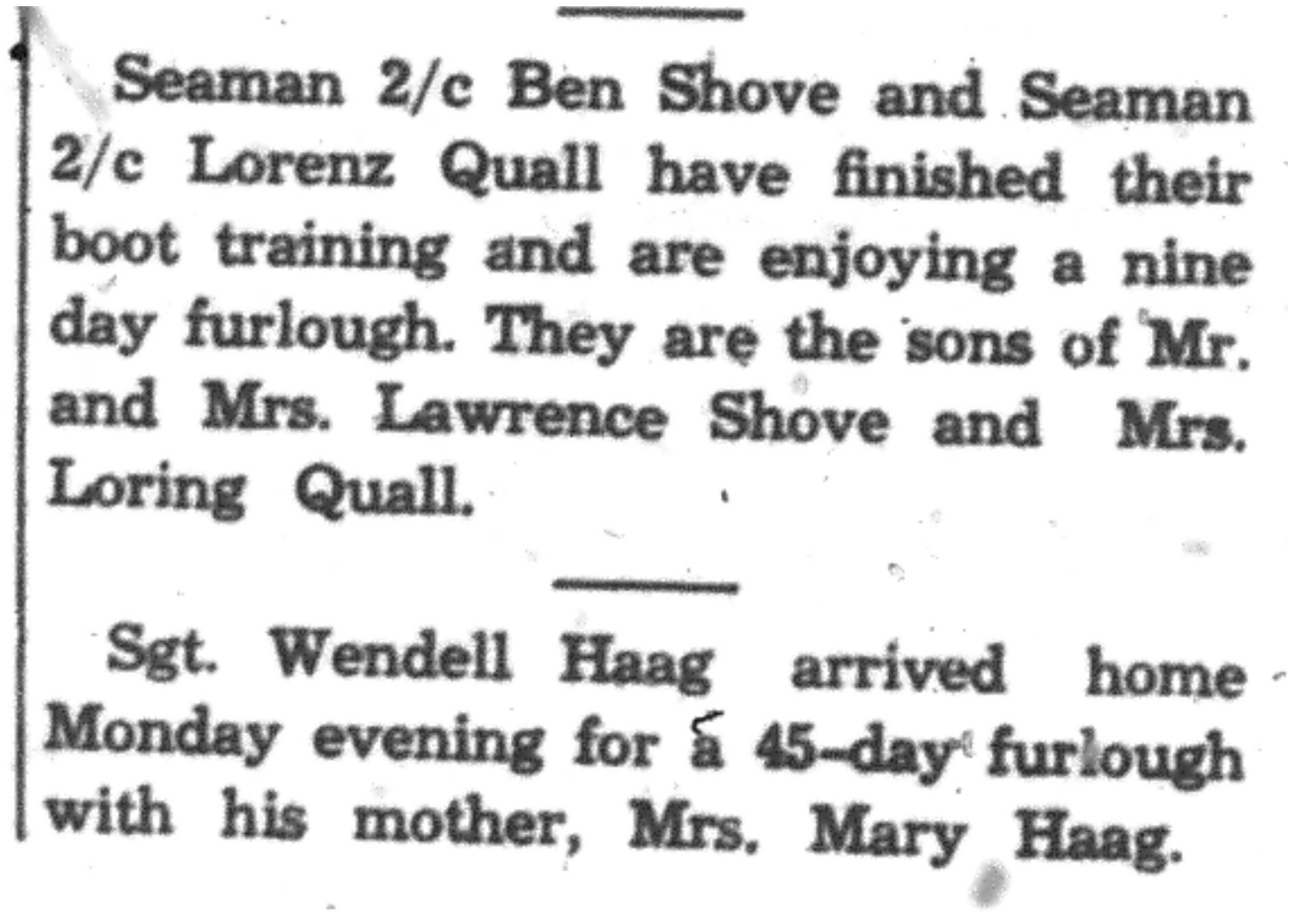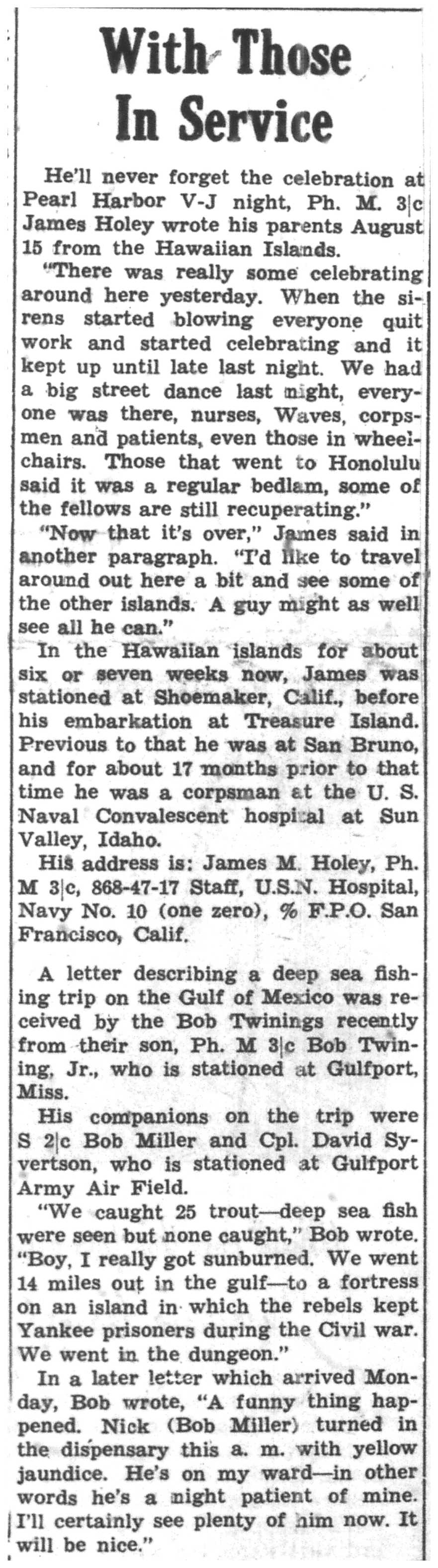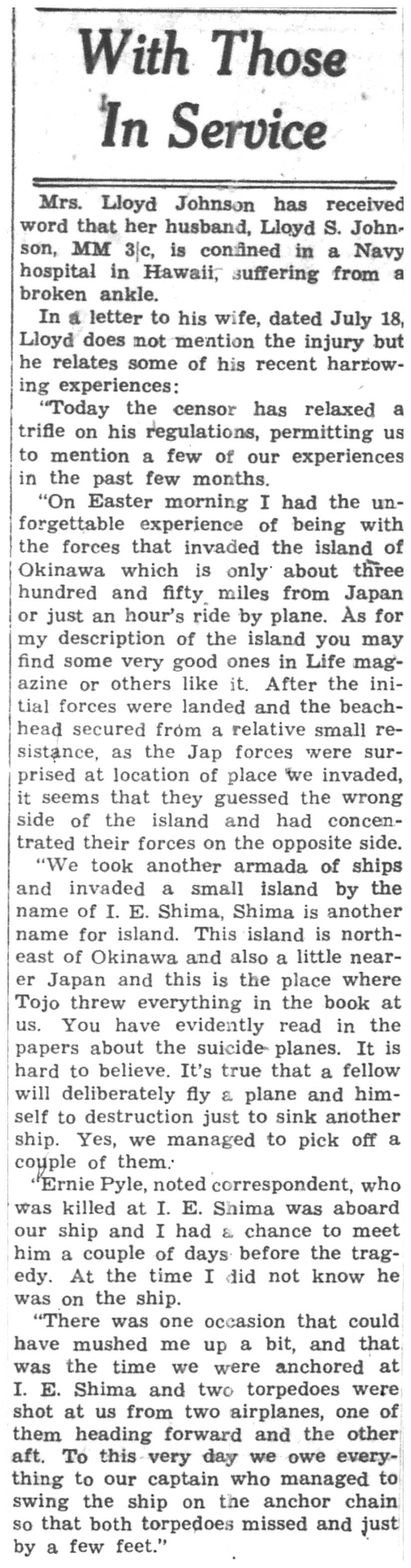 | 1945-8-23 | Non-Pareil Journal p5 | |