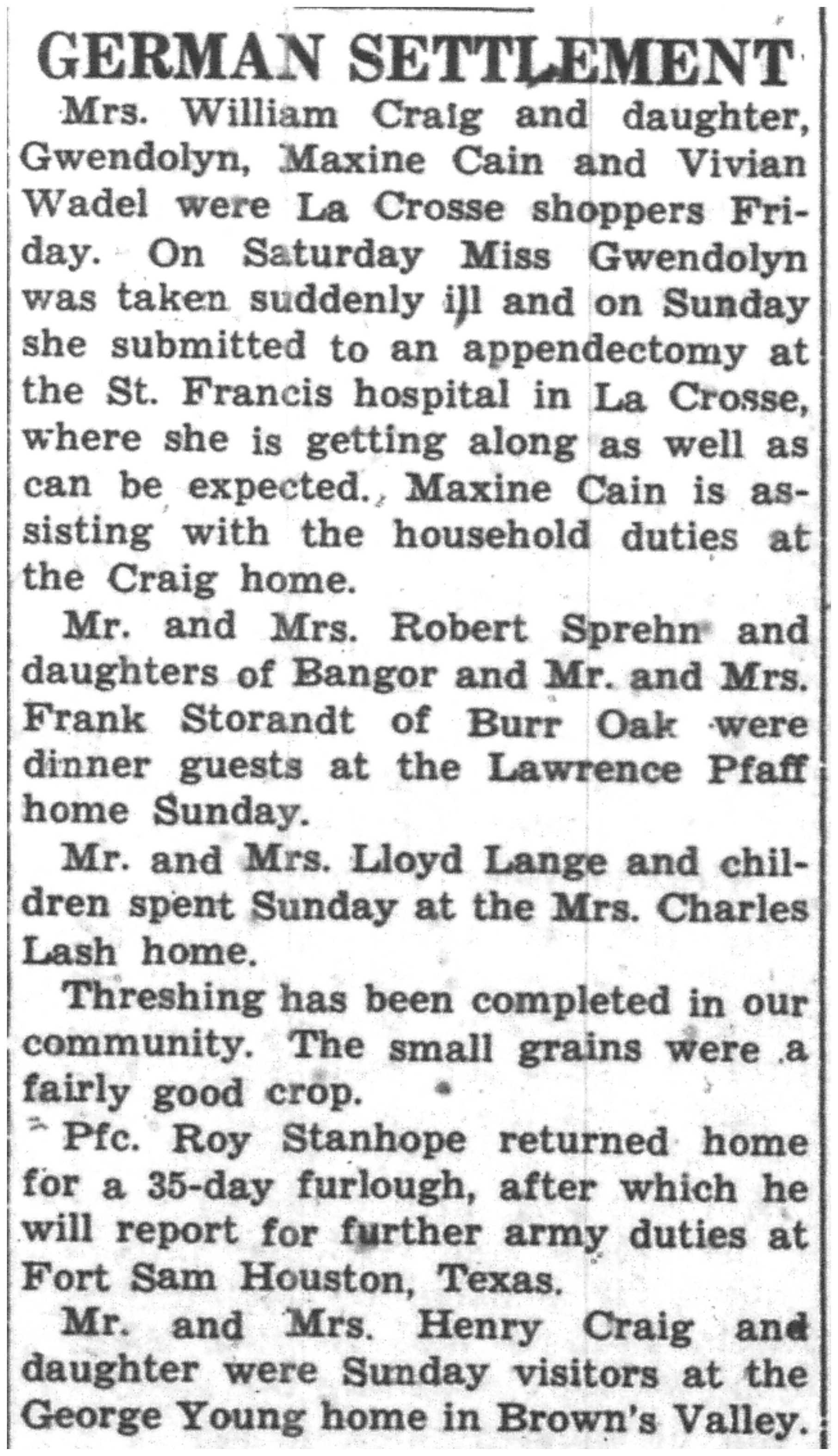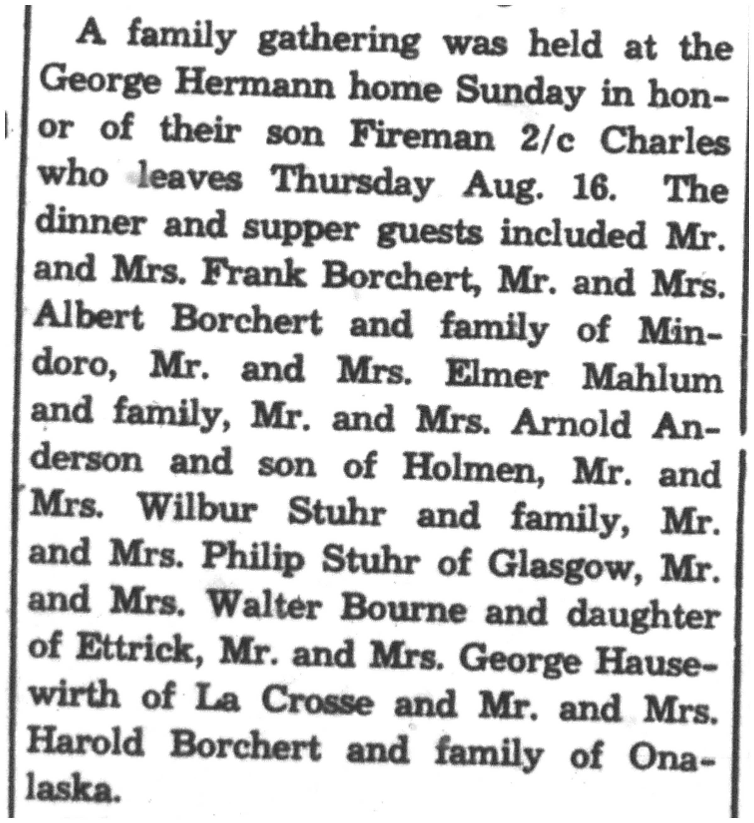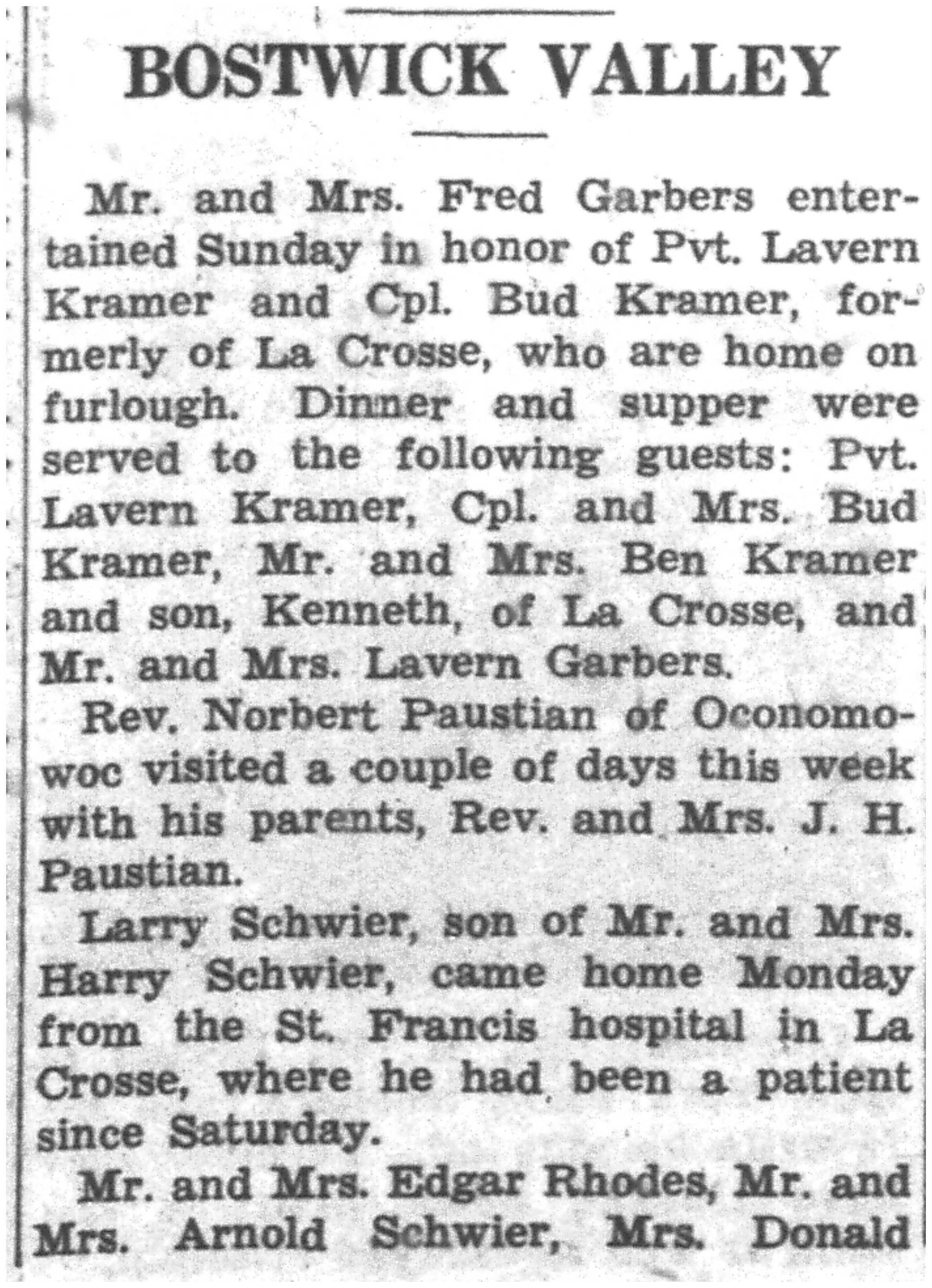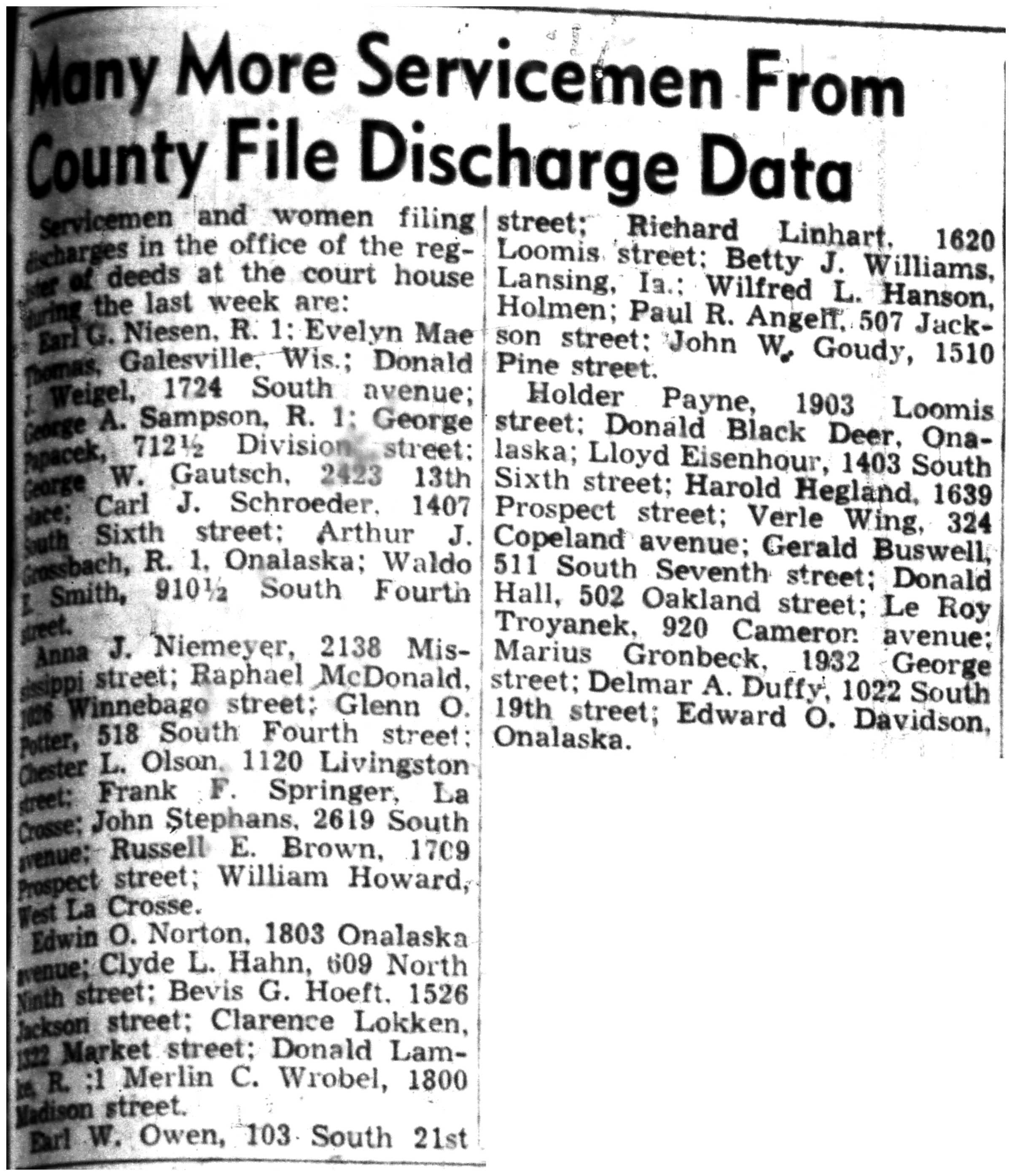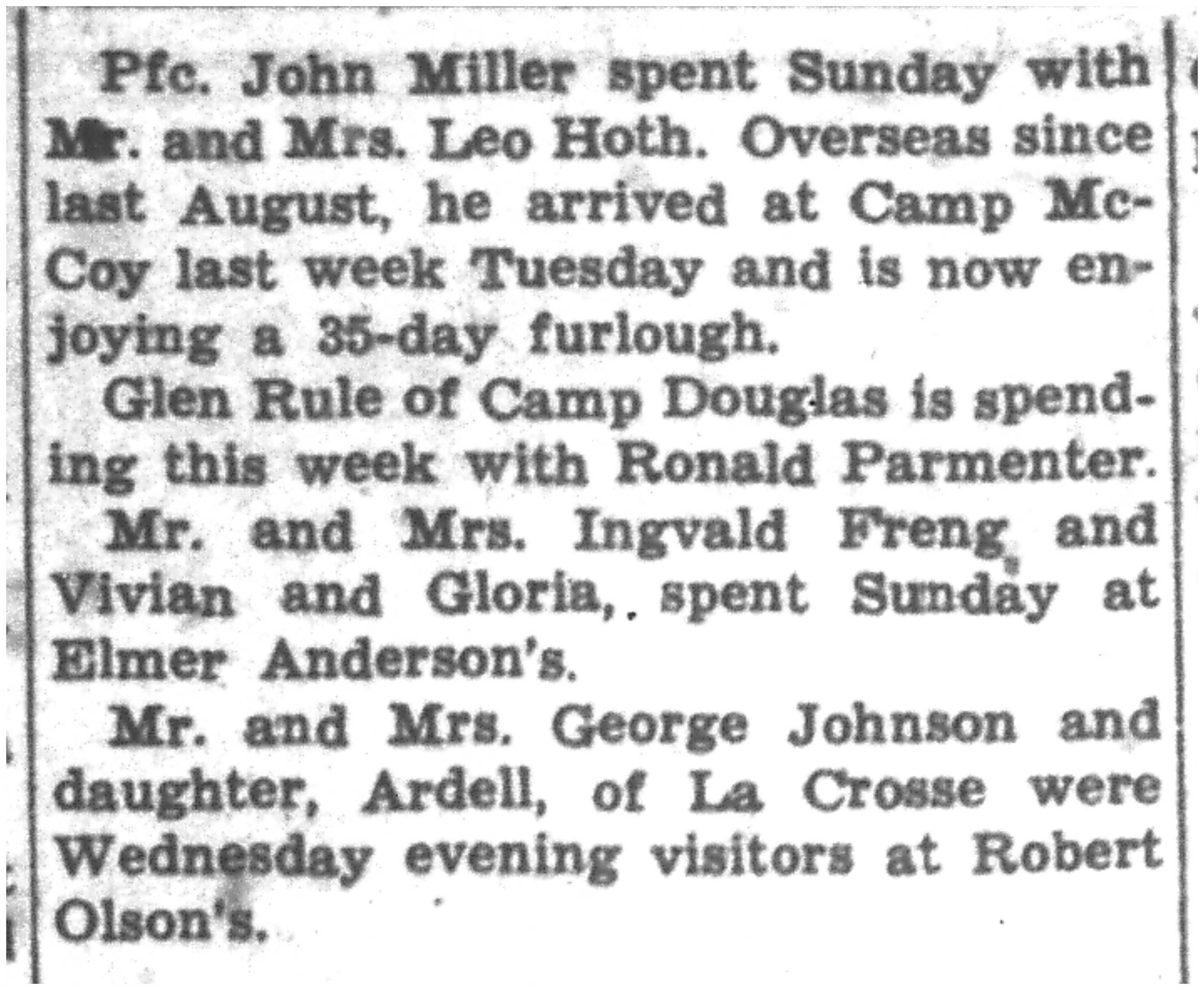 | 1945-8-2 | La Crosse County Record p8 | |