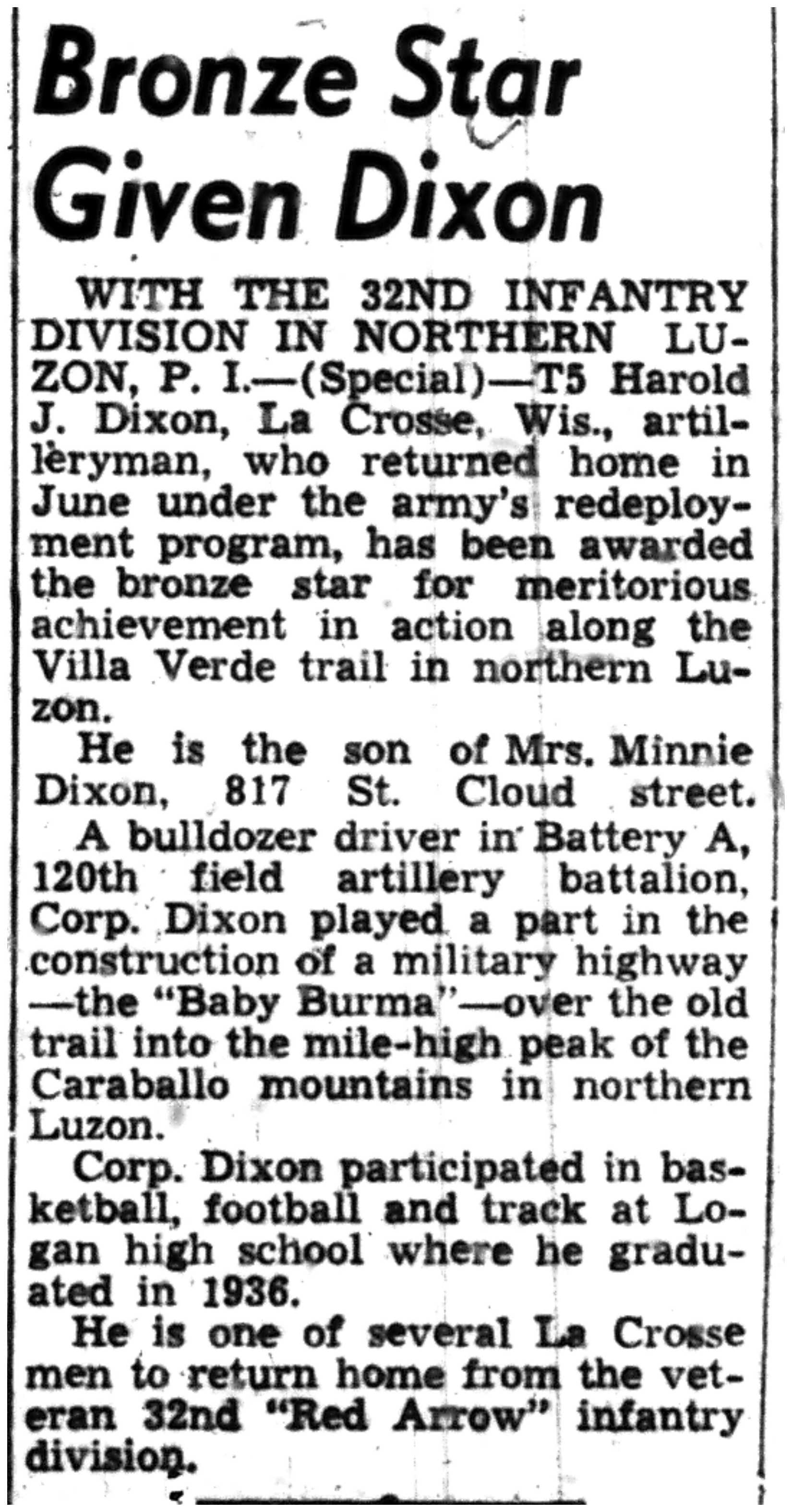 | 1945-8-5 | La Crosse Tribune p10 | |